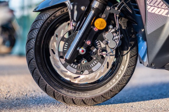 硬件方面,配備260mm前碟盤、220mm后碟盤,前后都是對(duì)向雙活塞卡鉗,還有BOSCH 10 ABS防抱死系統(tǒng),正立式前叉,雙筒后避震,具備三陽(yáng)獨(dú)有的ALEH零后仰懸吊技術(shù)。
