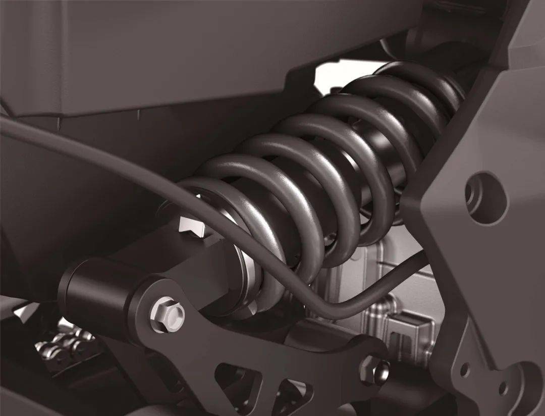 φ43mm倒立式前叉是川崎Versys 1000 SE LT+的點(diǎn)睛之筆。這對昭和具備電控功能(KECS),基于2018年忍者ZX-10R SE的半主動懸掛系統(tǒng),提供運(yùn)動、公路、雨天和自行設(shè)置4種模式,每種模式的參數(shù)設(shè)置各不相同,供騎手根據(jù)實際情況作出最佳選擇;行駛過程中,能夠根據(jù)實際駕駛情況,實時作出調(diào)節(jié)響應(yīng),提供最合適的阻尼。后部的BFRC單筒減震器具備電動調(diào)節(jié)預(yù)載功能,提供3種預(yù)設(shè)模式,即騎手、騎手+行李、騎手+乘客+行李,每種模式還有精細(xì)的+5/-5微調(diào)功能。