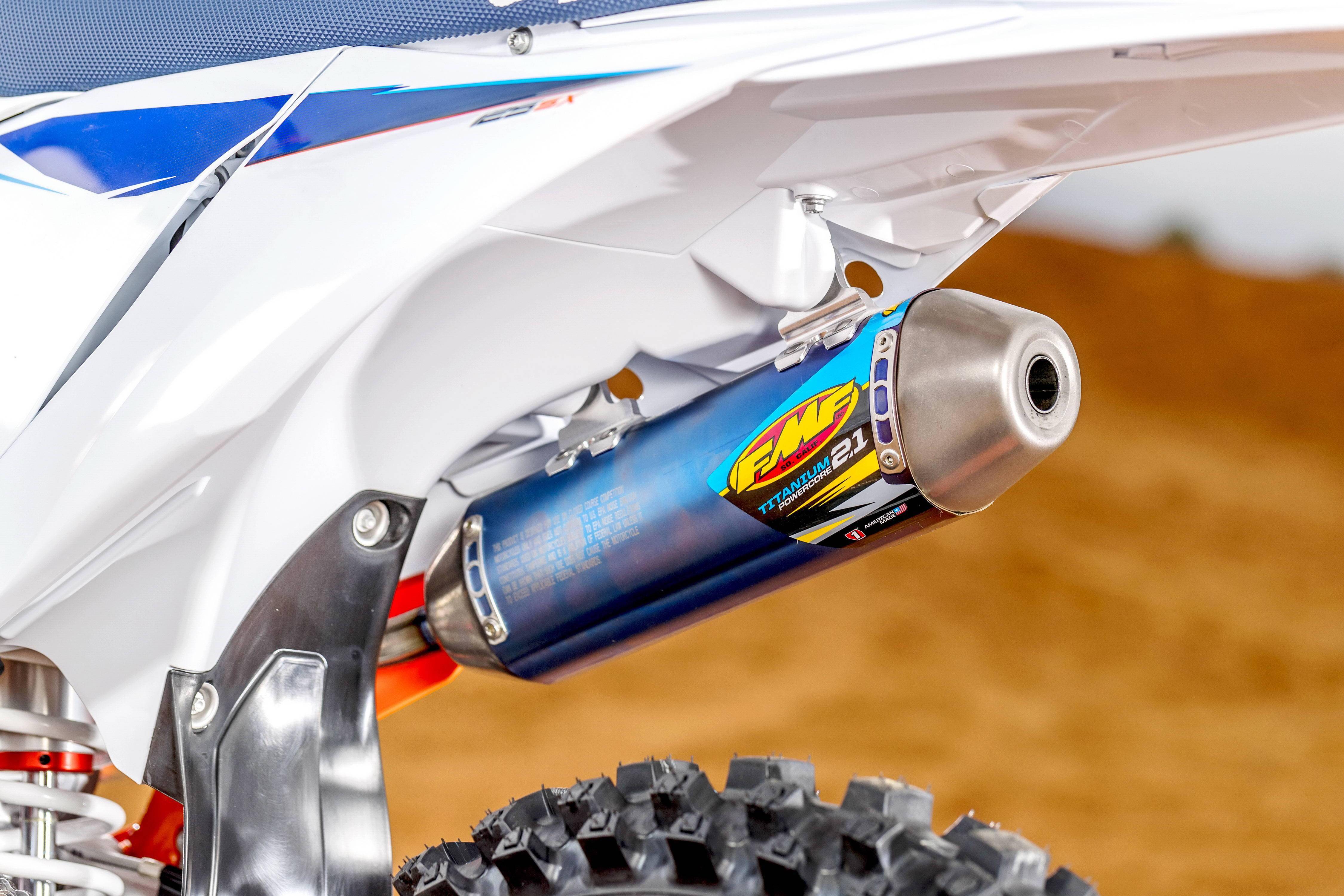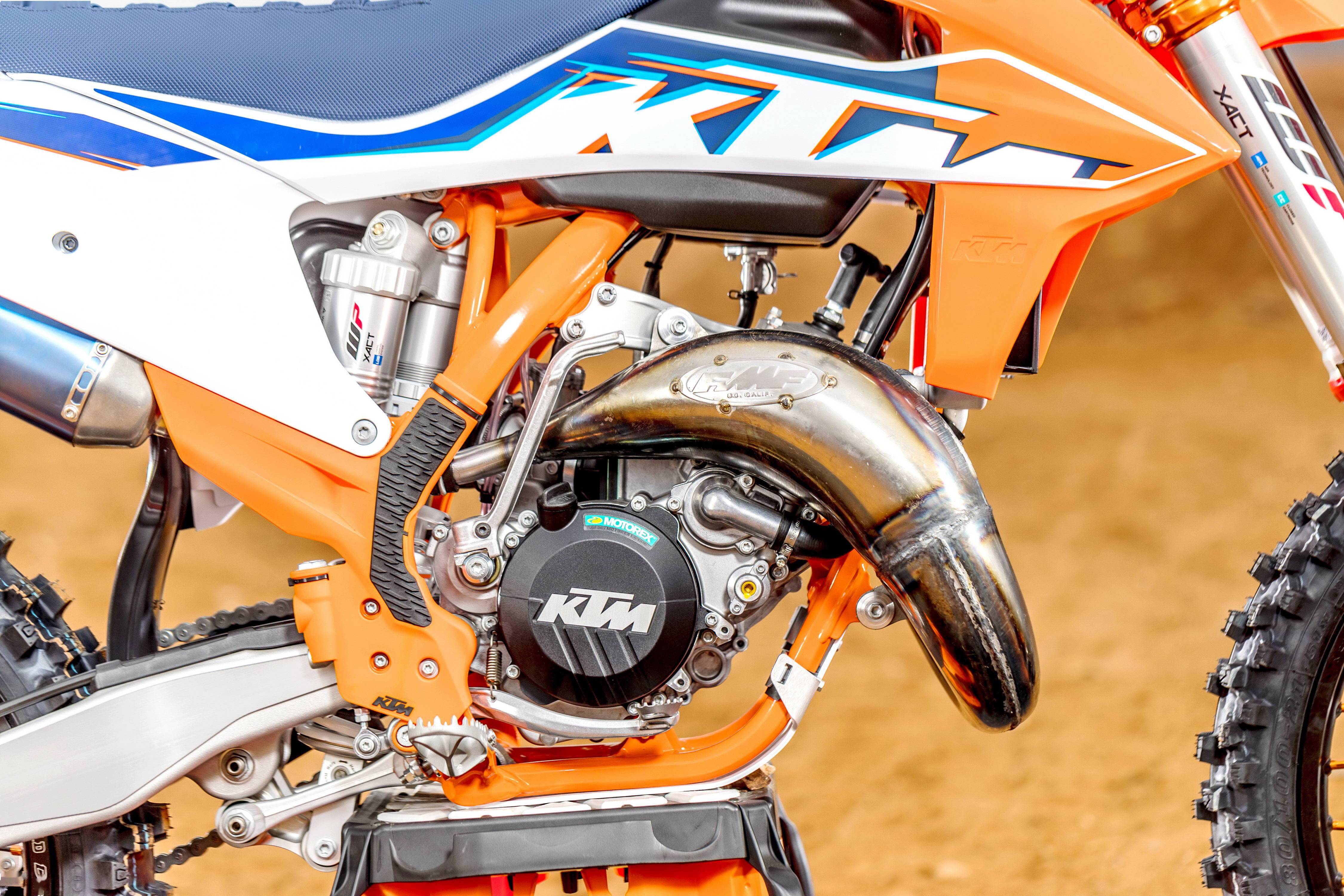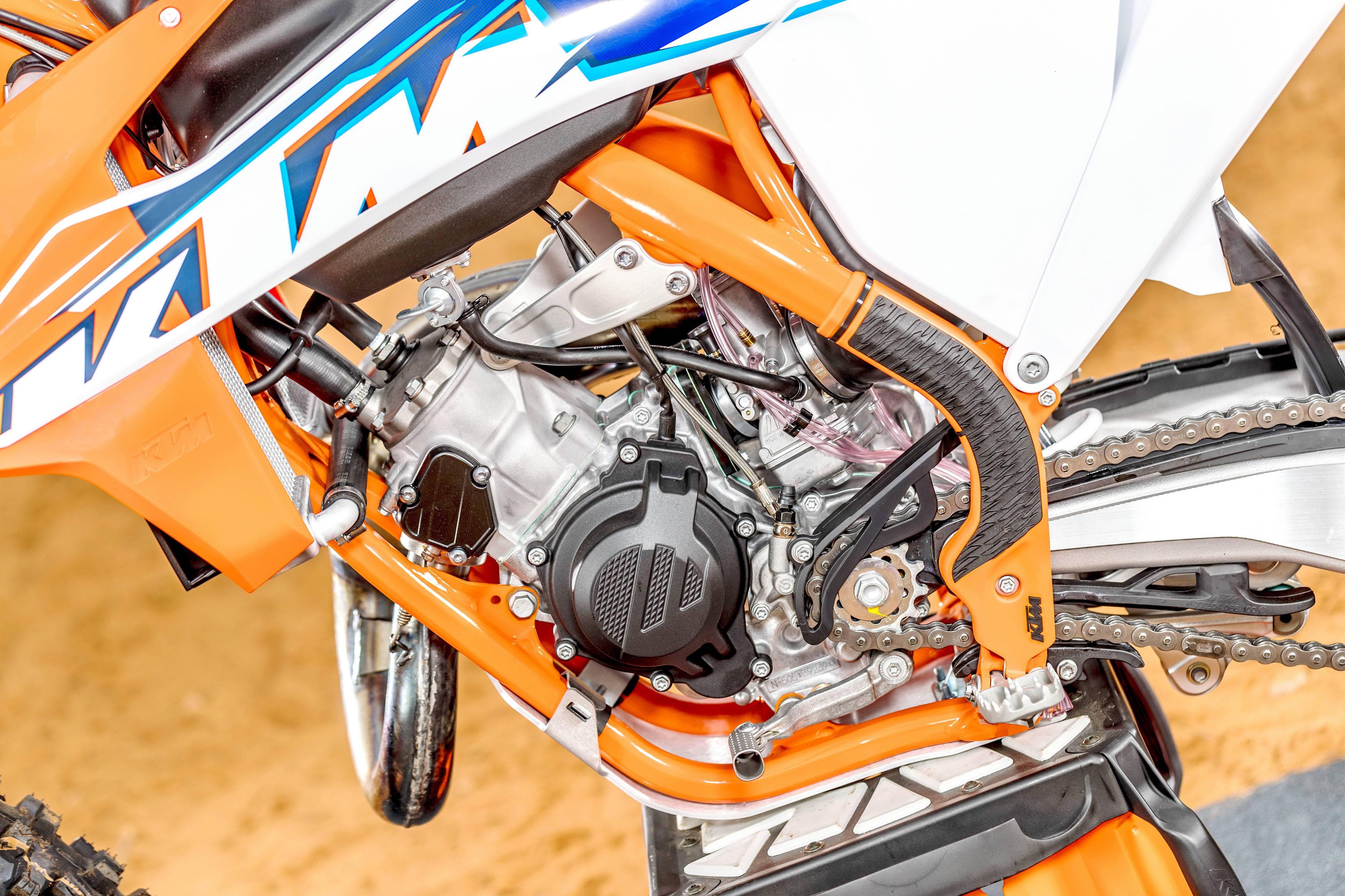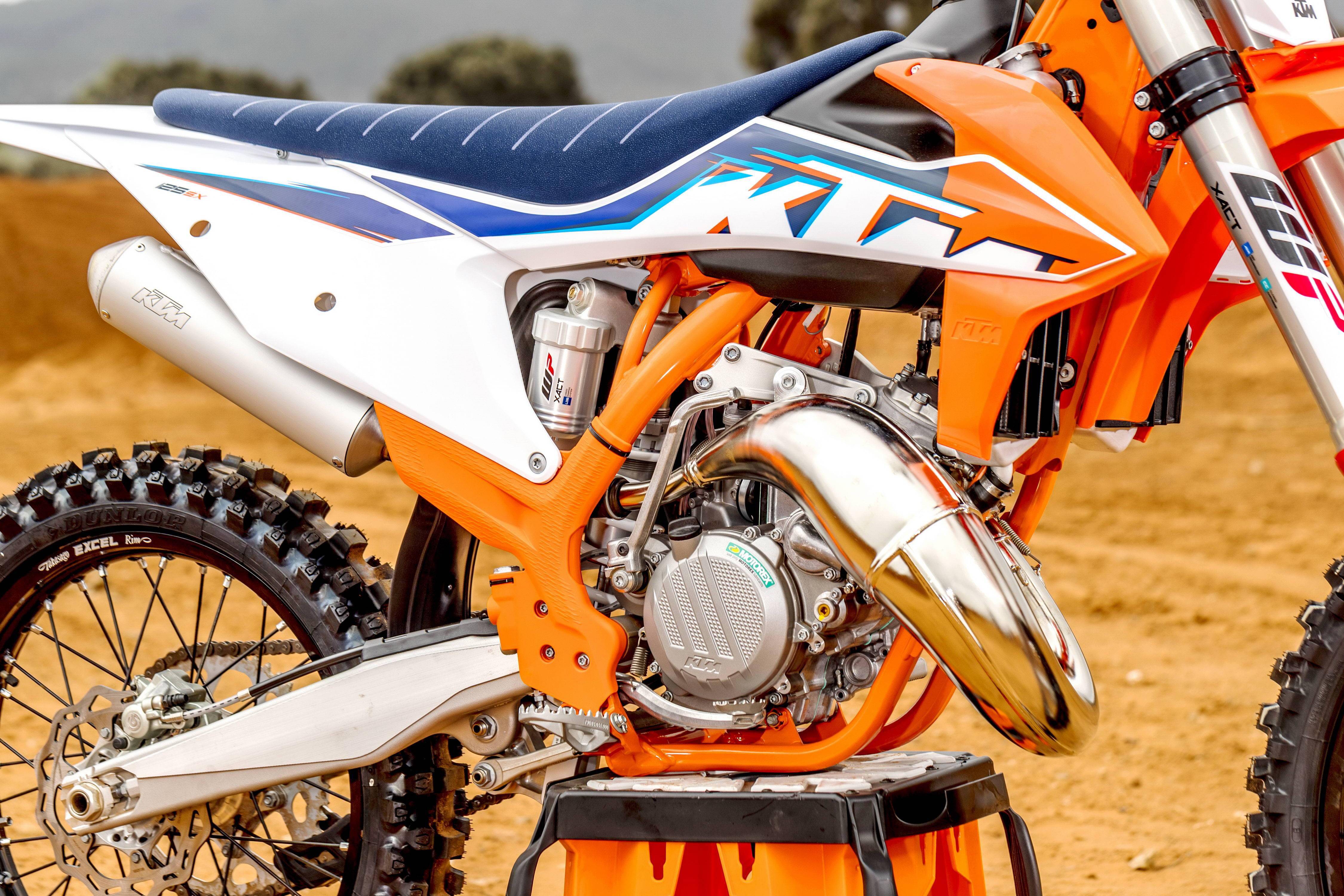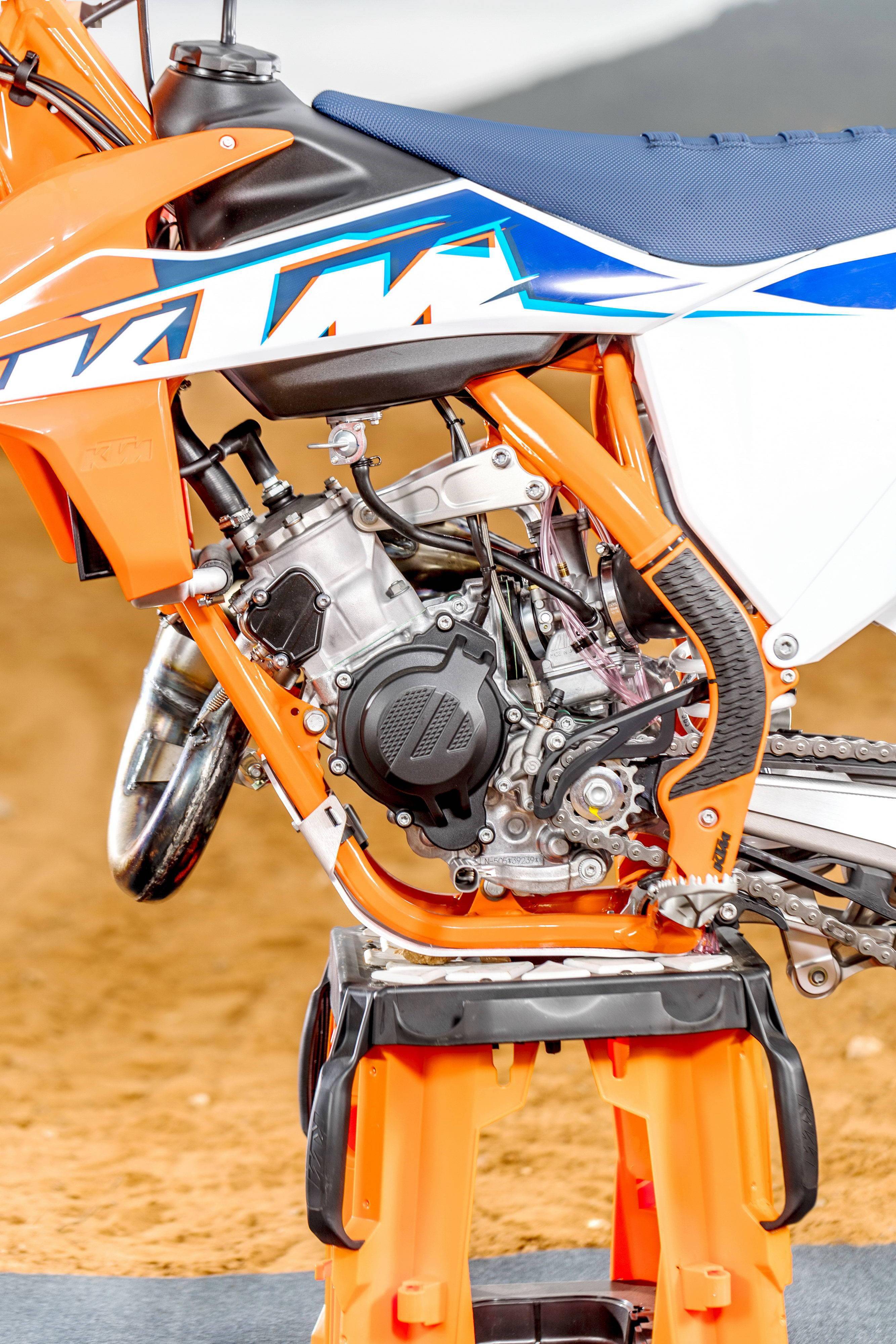 五個更新的 2022 款車型中,以 125 SX 和 450 SX-F 有較大的升級。對應 MX2 級別的 125 SX 搭載一副兩沖程單氣缸的發(fā)動機,整個發(fā)動機總成重量只有 17.2 公斤,使用一具節(jié)氣閥口徑為 38 mm 的 Mikuni TMX 化油器負責油氣混合,最大動力輸出達到了 40 匹的級別。而全車重量(除燃油之外的整備狀態(tài))只有 87.5 公斤。