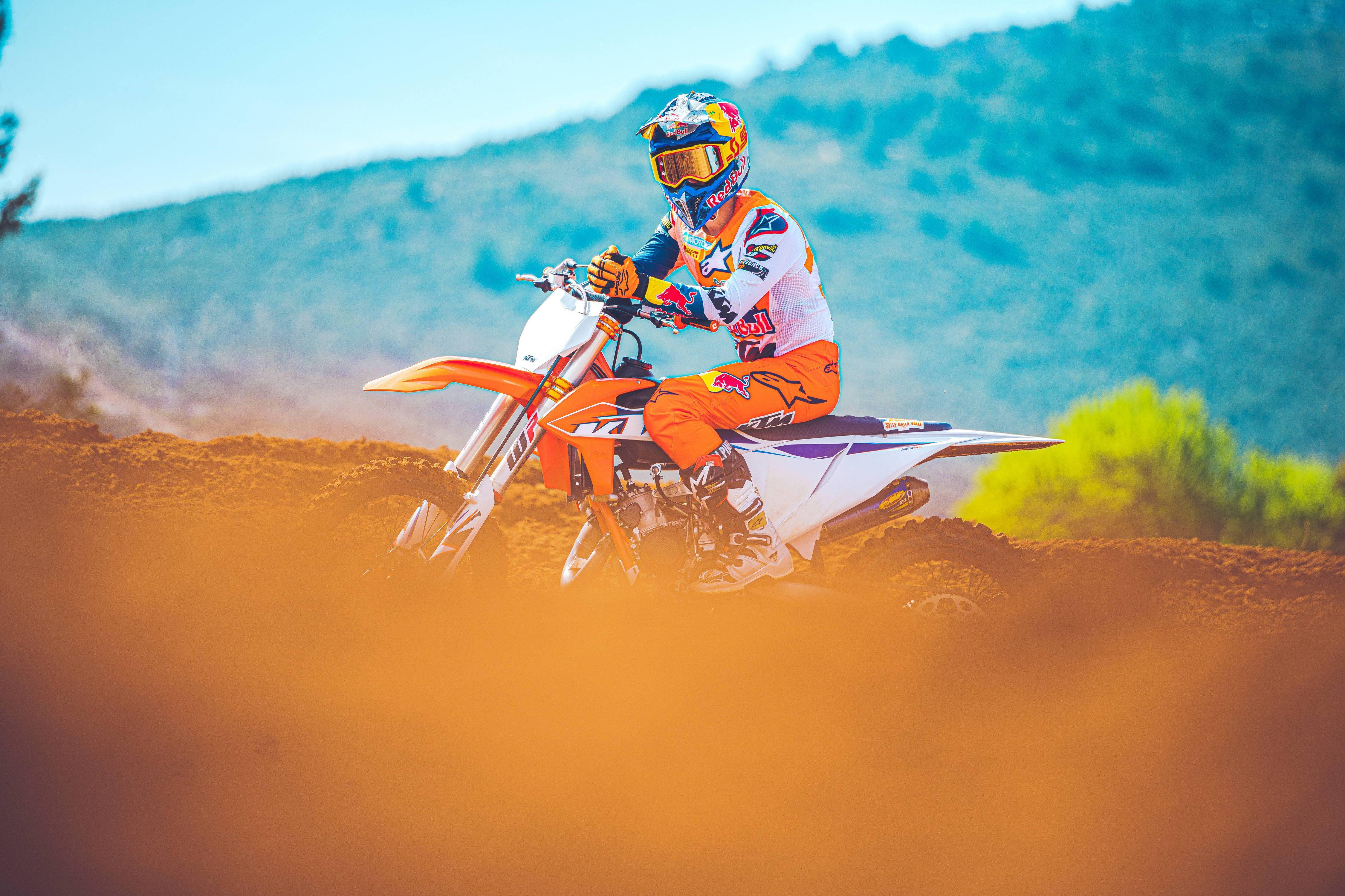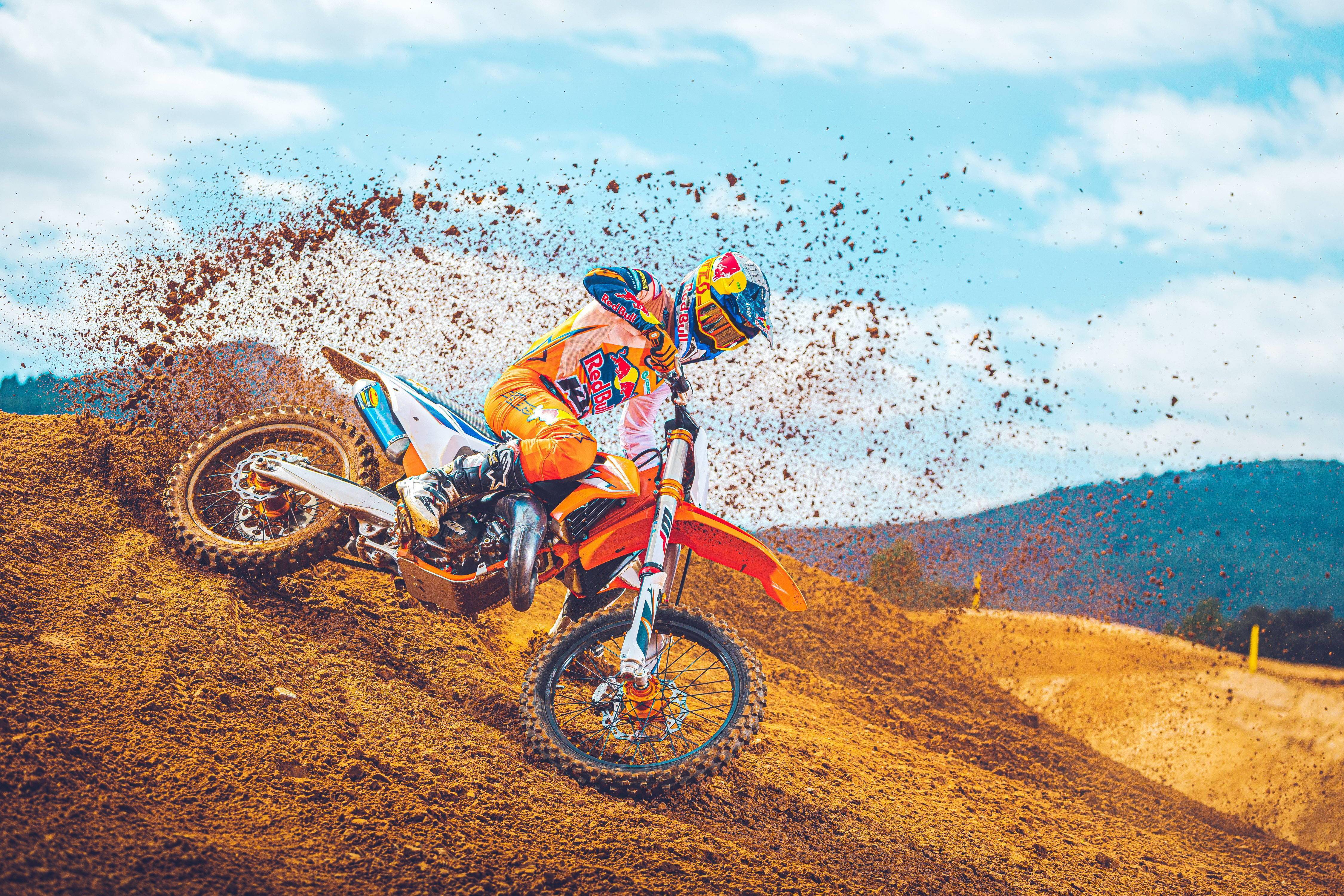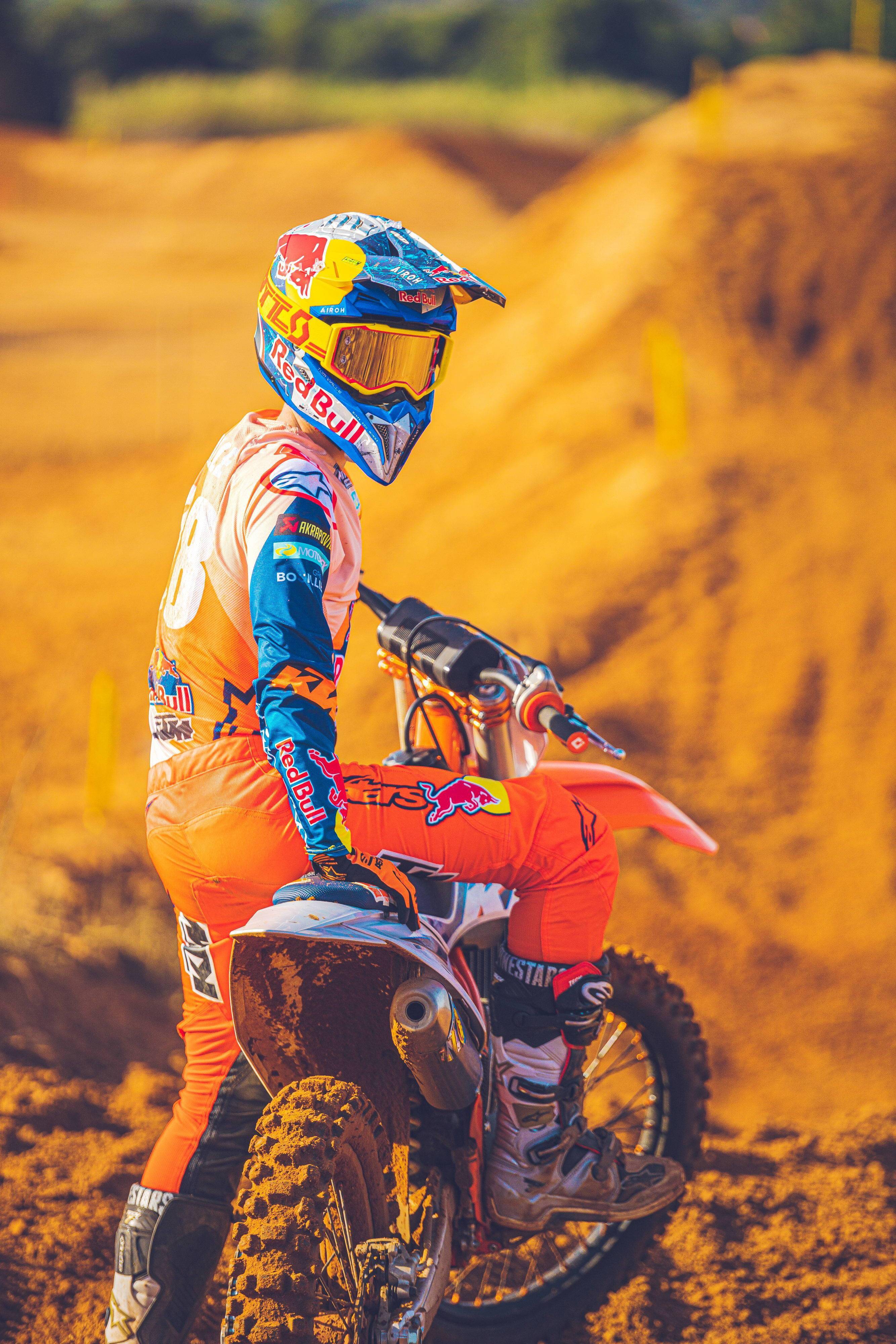 下面的圖片,KTM MXGP 世界越野錦標賽工廠車隊的車手試駕 2022 款的 125 SX。