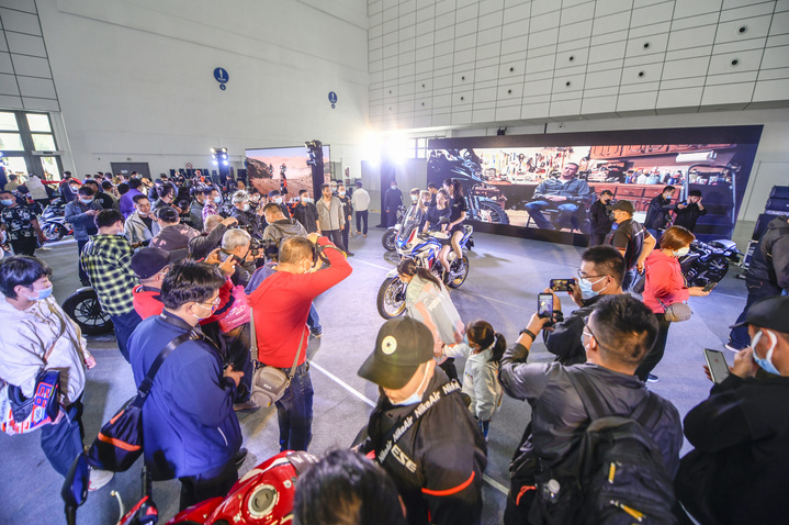 在會(huì)展中心的展廳內(nèi),赫赫有名的中外摩托齊聚一堂,哈雷、寶馬、杜卡迪等多個(gè)品牌,現(xiàn)場(chǎng)展示上百款車型。除了摩托車整車的展覽外,現(xiàn)場(chǎng)還有騎行裝備、摩托車改裝與零配件、摩托車維修與養(yǎng)護(hù)用品、摩托車周邊用品、摩托旅游服務(wù)、摩托車駕駛培訓(xùn)等多種產(chǎn)品及服務(wù)類型,展會(huì)首日吸引了上萬(wàn)名市民前來(lái)參展。