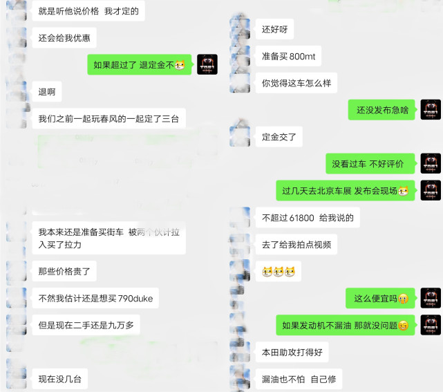 核心提示:今早,一位認(rèn)識(shí)很久的摩友問(wèn)我春風(fēng)800MT怎么樣,然后接下來(lái)的聊天內(nèi)容大致曝光了春風(fēng)800MT的定價(jià)范圍,詳細(xì)消息如上圖。他們一起