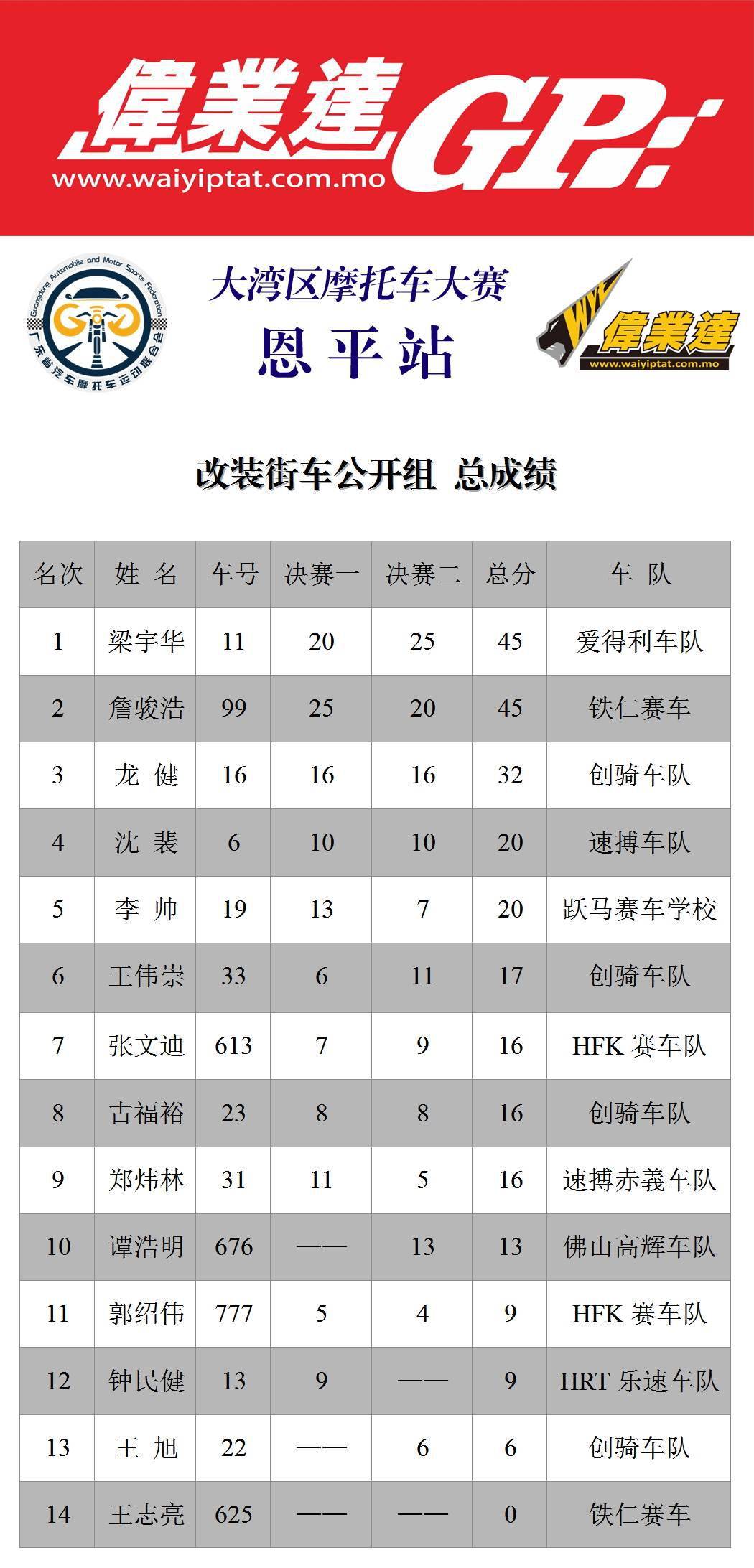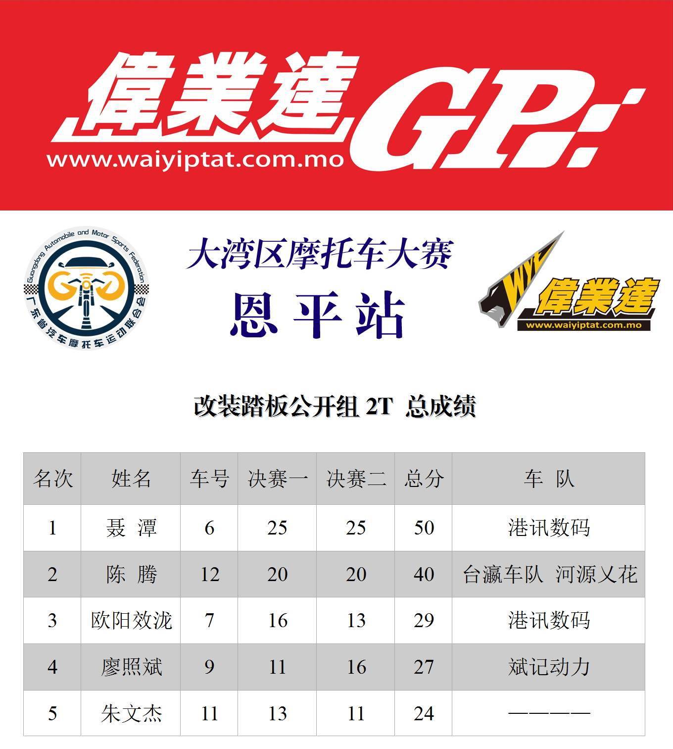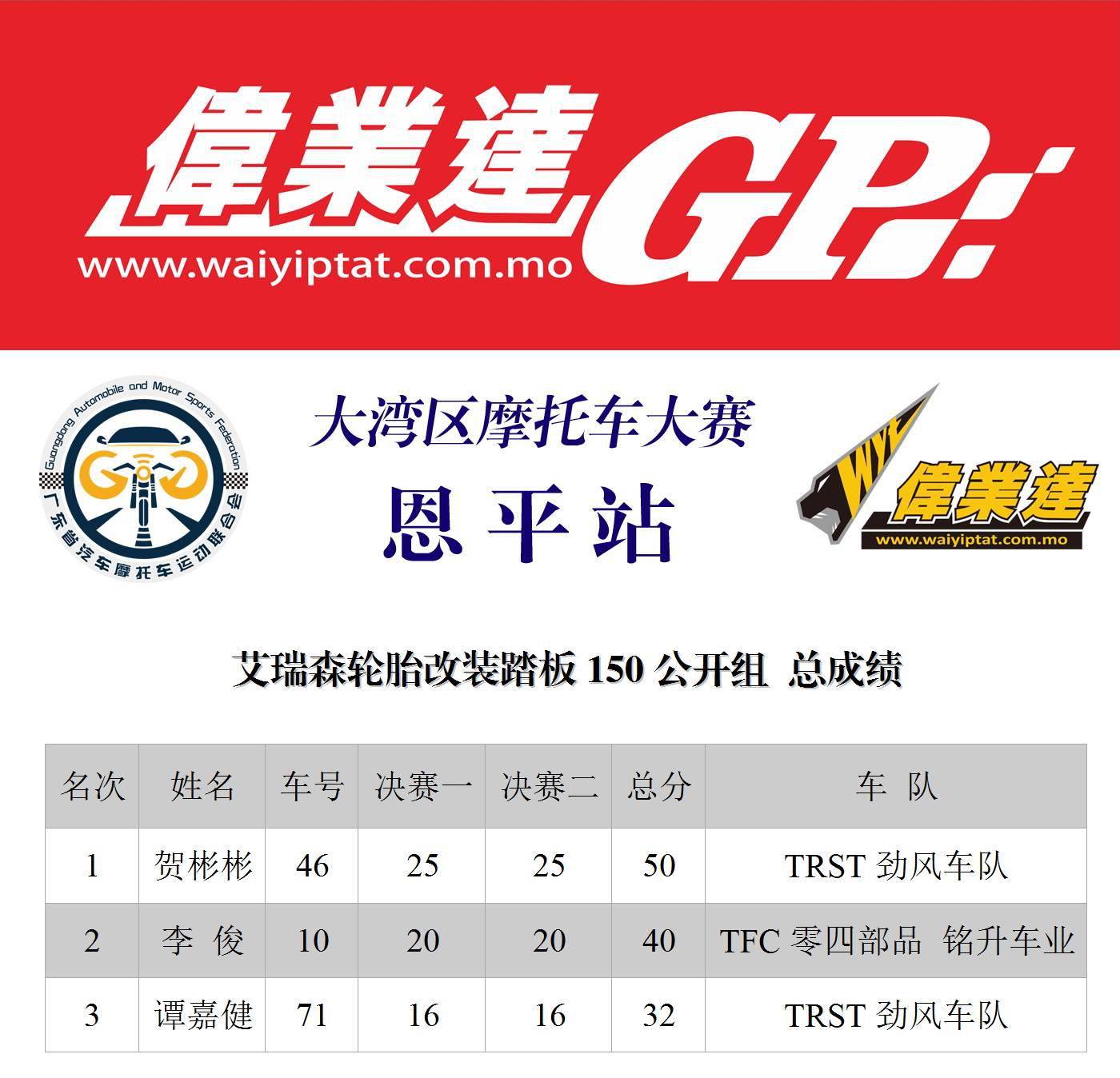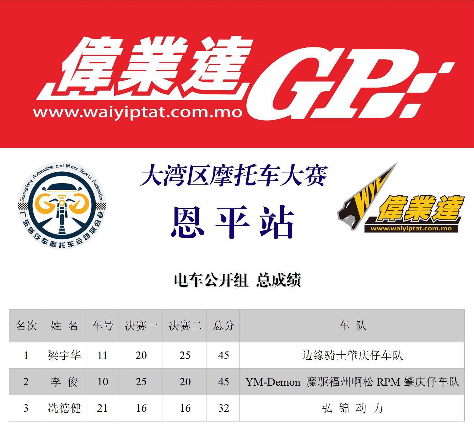 下面的圖片,2021 偉業(yè)達(dá) GP 大灣區(qū)摩托車大賽、各組別的總成績(jī)。