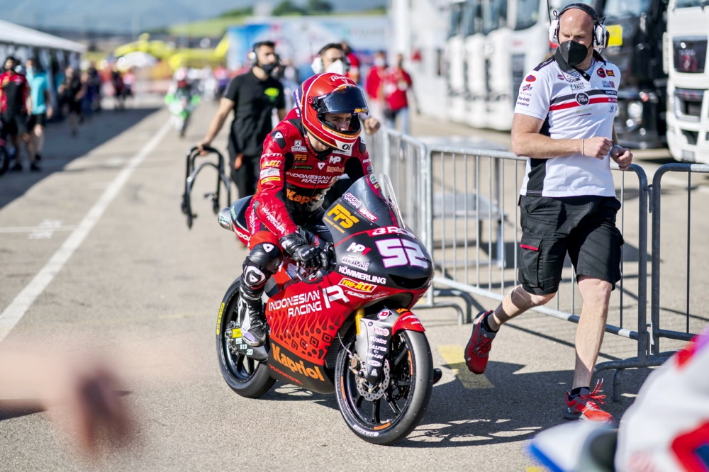 Moto3 級(jí)別的 Q2 排位賽,焦點(diǎn)無(wú)疑就是 50 號(hào)車杜帕斯基爾(Jason Dupasquier)在 T9 出彎處的那場(chǎng)嚴(yán)重意外。意外導(dǎo)致 Q2 被紅旗所中斷,往常的可以跑七、八圈的 Q2 排位賽,這一場(chǎng)只跑了四、五圈。