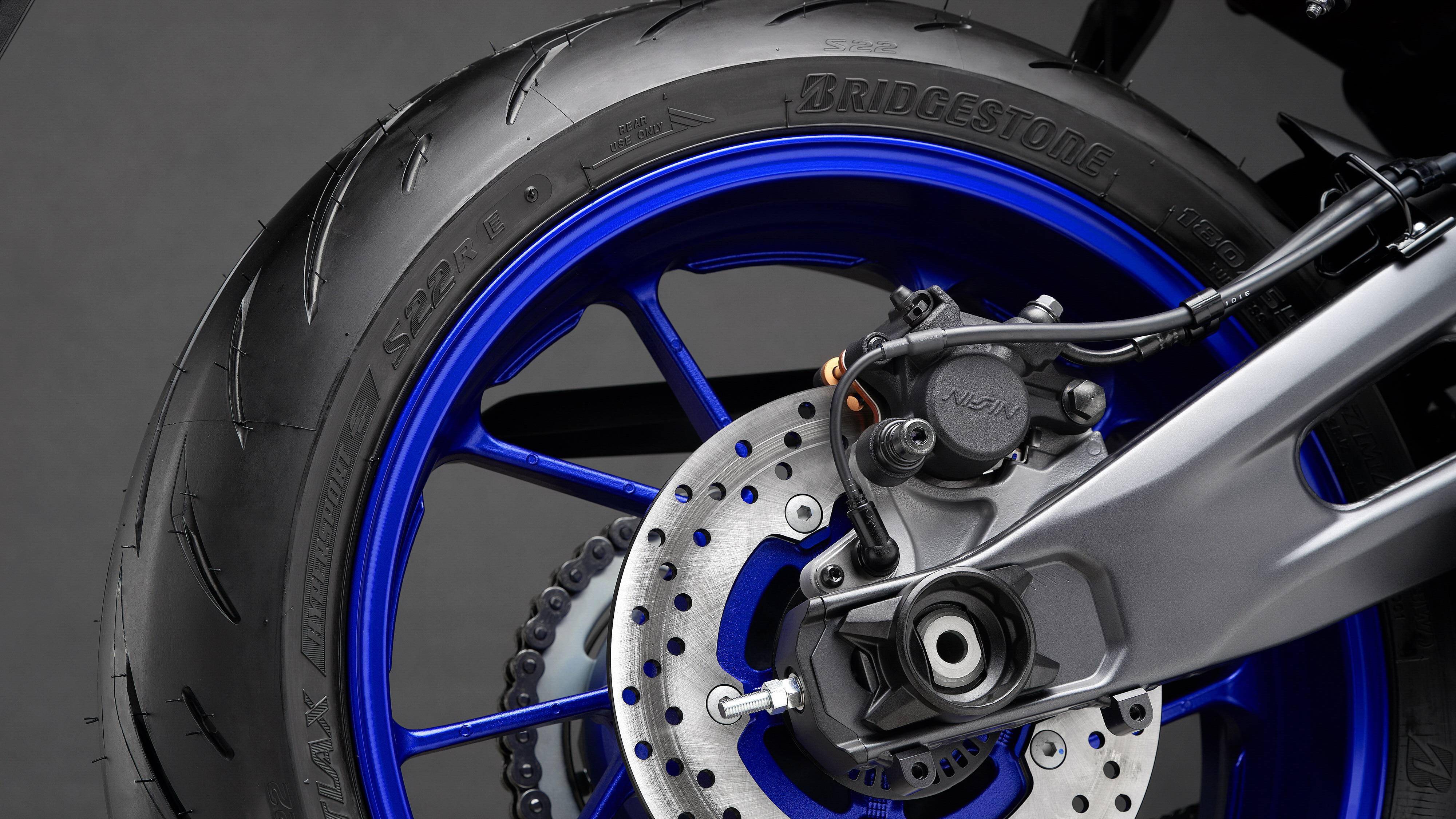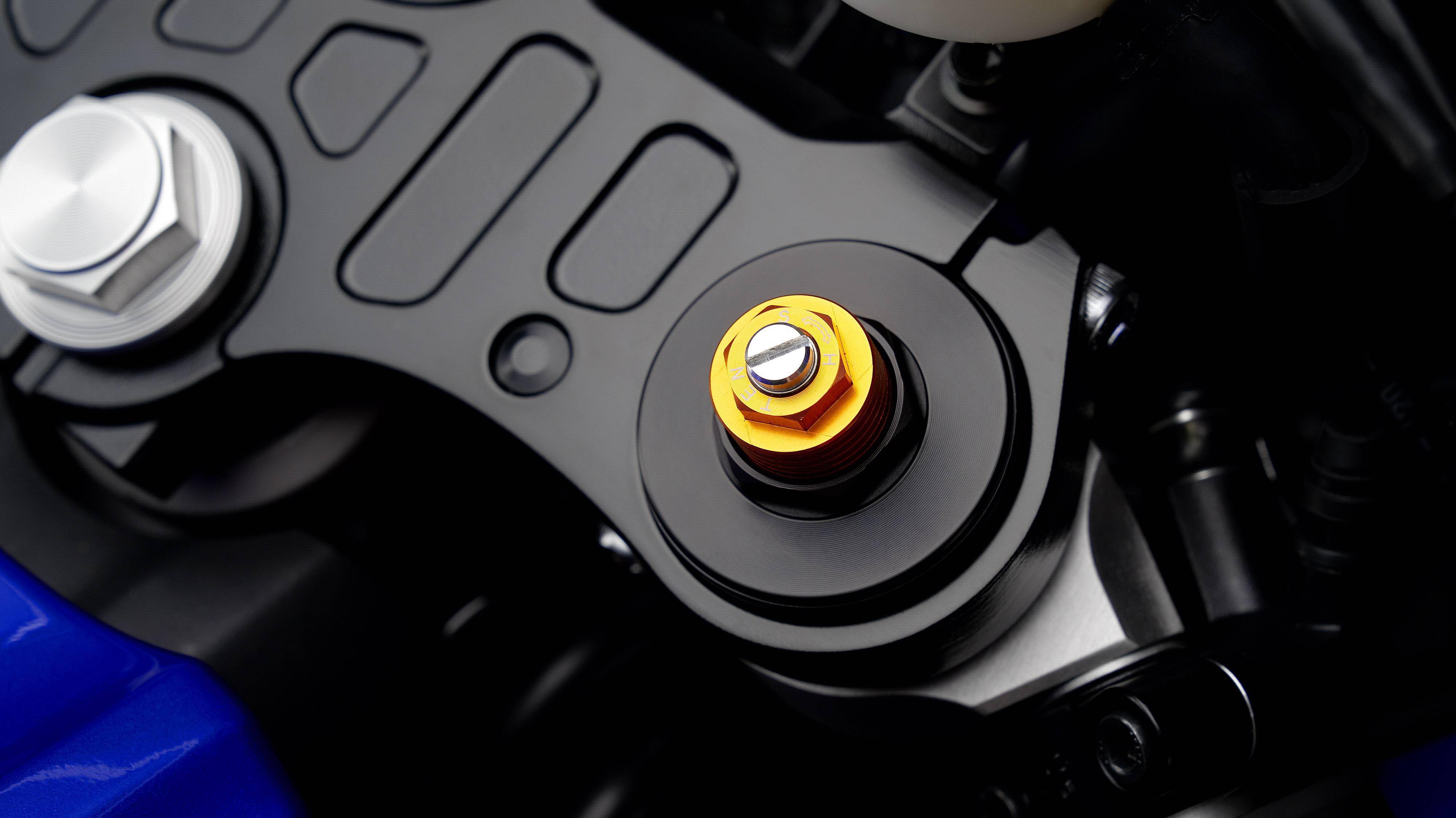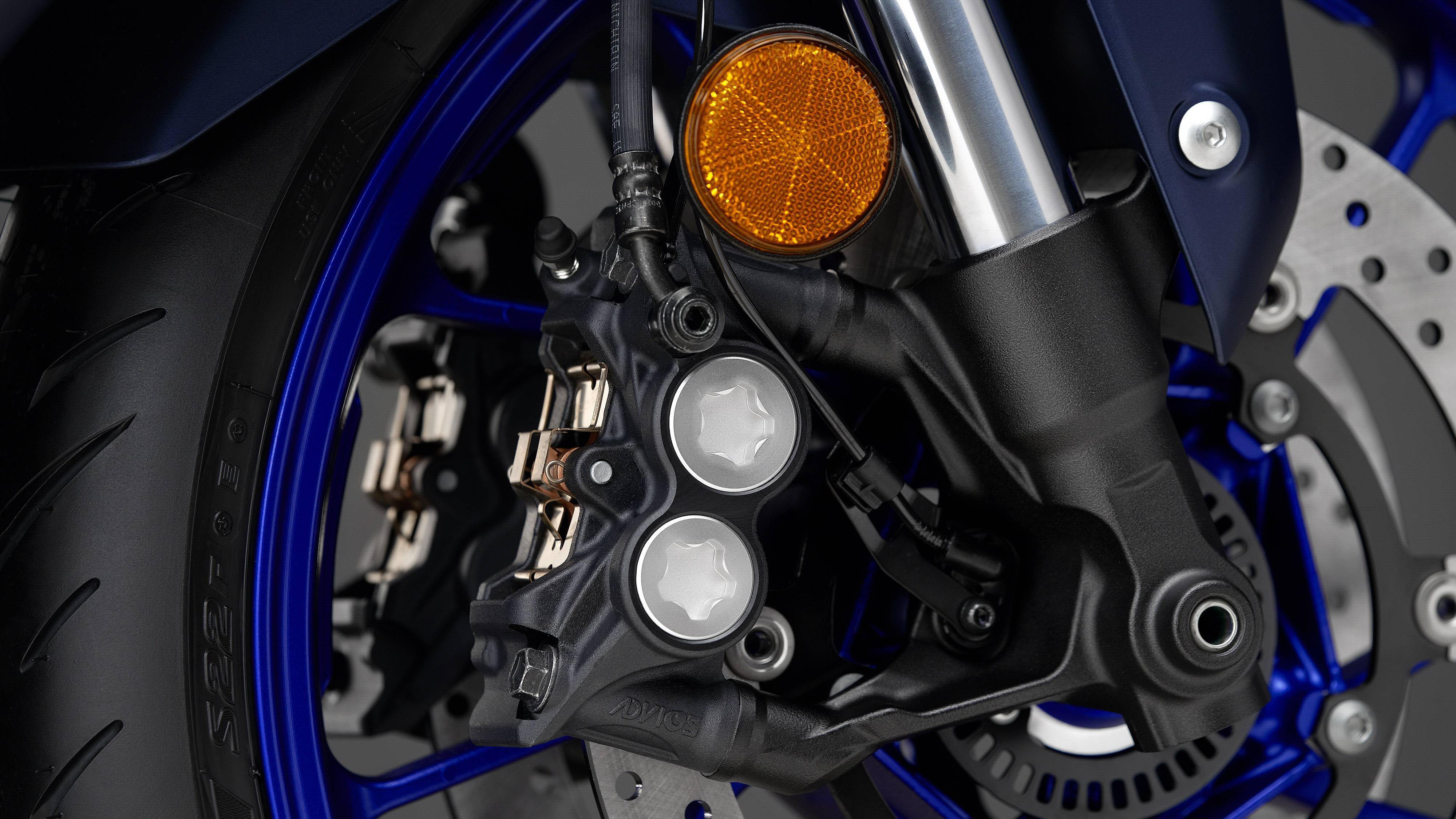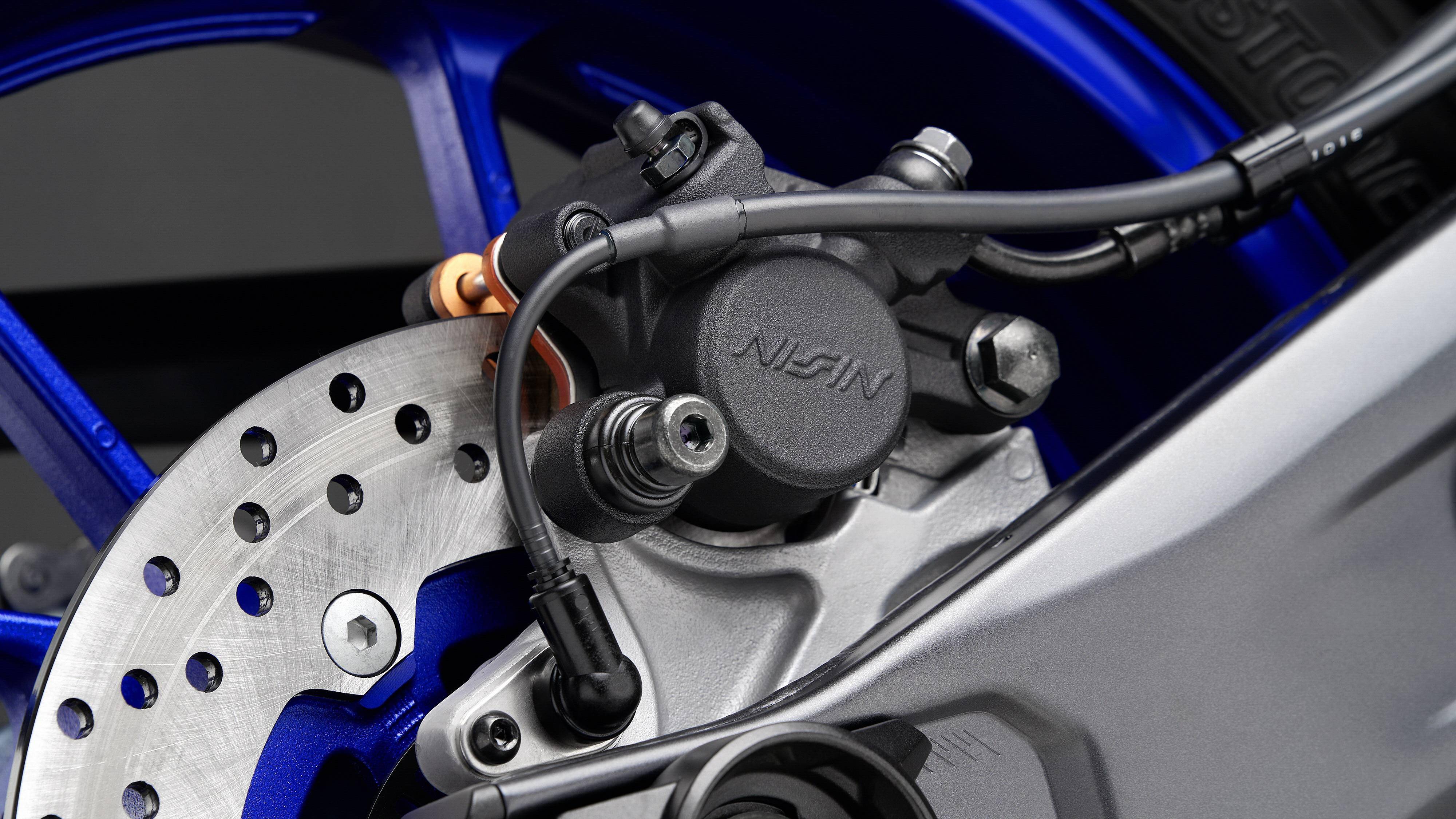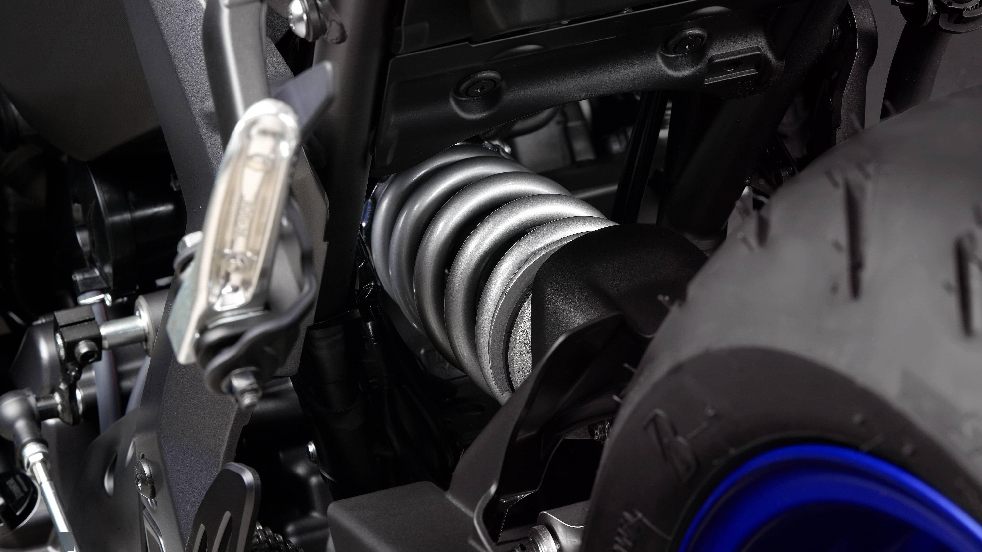 懸掛系統(tǒng)方面,前面的配套是叉芯口徑為 41 mm 的 KYB 倒立式前叉,預(yù)載、壓縮和回彈可調(diào);后面是連桿式聯(lián)接、近乎水平面安裝的單筒式后減震,預(yù)載、回彈可調(diào)。Yamaha 稱,新的 YZF-R7 能夠讓騎士在應(yīng)對賽道或者街道的不同環(huán)境之下,對懸掛系統(tǒng)作出快速的設(shè)置。