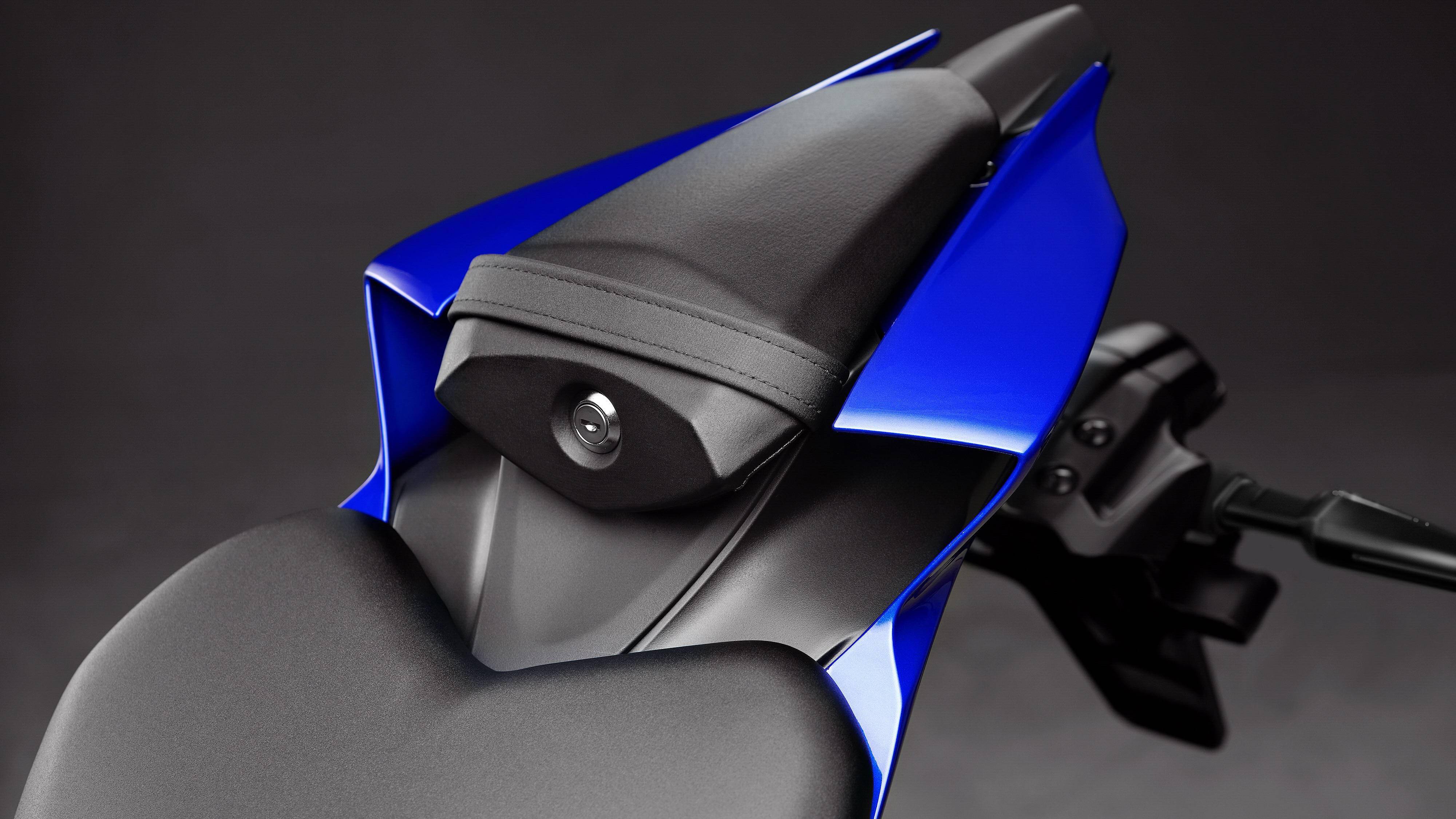 另一個重要的特點、是座位的設(shè)計,騎士的大腿內(nèi)側(cè)和后部有著更大的空間,能讓騎士有著最大限度的活動自由。為了能夠?qū)崿F(xiàn)一個 “ 躲藏 ” 在前風(fēng)擋之內(nèi)的騎乘位置,使車手在盡可能獲得最大空氣動力學(xué)效率的同時,又能夠?qū)崿F(xiàn)較佳的控制,分離式車把的后傾和下沉角度經(jīng)過了仔細(xì)、反復(fù)的對比和嘗試,油箱蓋的前端也采用了凹陷的設(shè)計,一系列的針對性設(shè)計,使 R7 不論是賽道上、還是常規(guī)的公共道路上,都有著一個適用的騎乘姿勢。此外,整流罩兩側(cè)內(nèi)、對應(yīng)騎士膝蓋的地方裝有斜角設(shè)計的組件,使騎士無論是重剎車還是轉(zhuǎn)向的時候,都能緊貼著車輛。