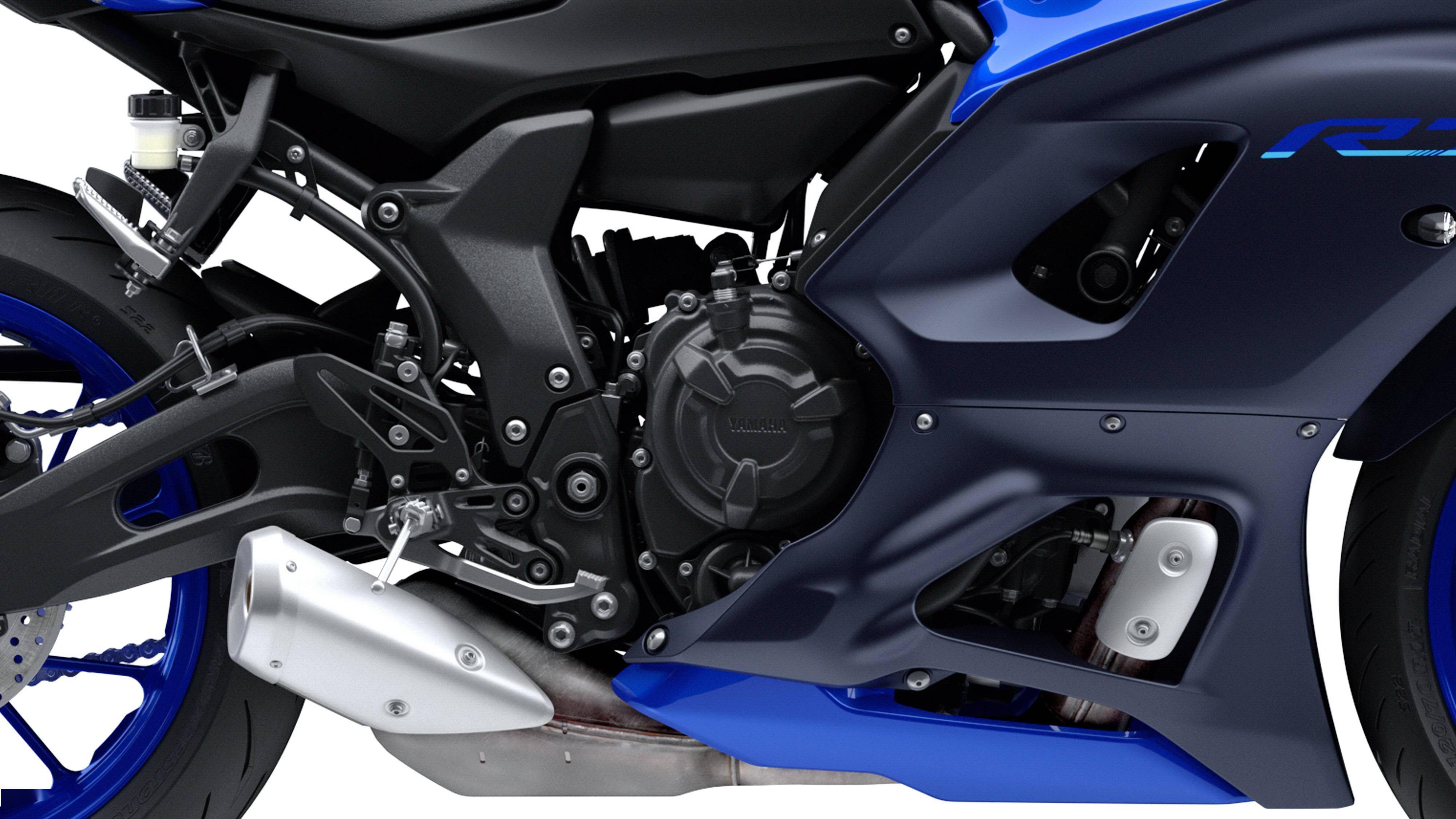 新一代的 YZF-R7 搭載一副來自 MT-07 同平臺的水冷四沖程直列兩氣缸、DOHC 每氣缸四氣閥的 CP2 發(fā)動機,排氣量 689 cc,最大動力輸出 54 kw(約 73.4 匹)/8,750 rpm,比運動街車 2021&apos MT-07 的 55 kw(約 74.8 匹)略低。符合歐五排放標(biāo)準(zhǔn)。