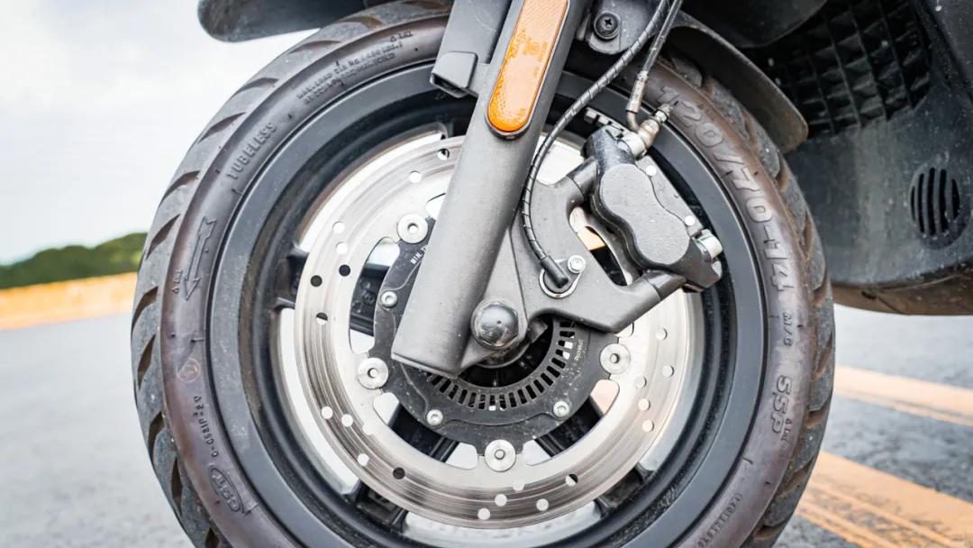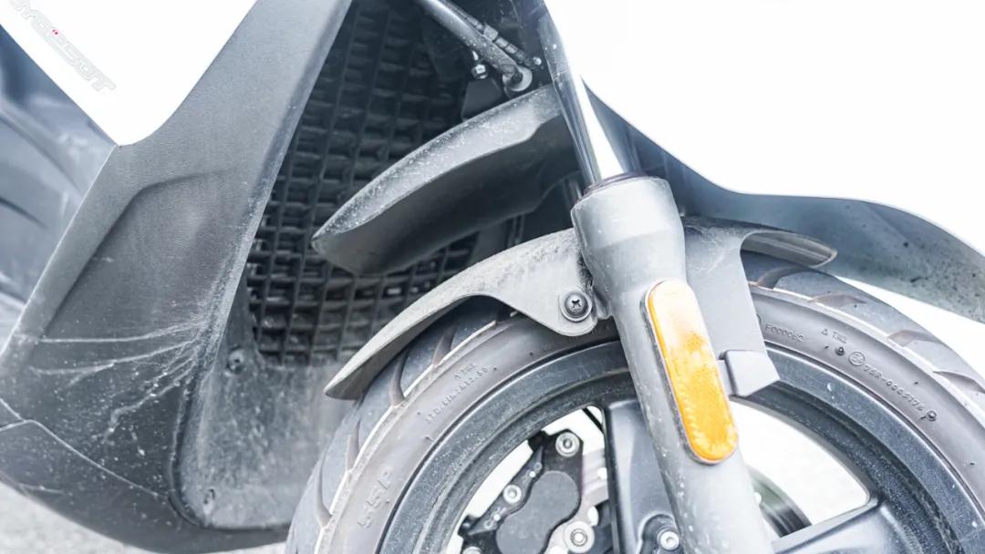 X7的剎車(chē)配置在這個(gè)級(jí)別也是非常高的,前260mm浮動(dòng)碟搭配對(duì)向四活塞輻射式卡鉗,后單向雙活塞卡鉗,標(biāo)配前后雙通道ABS。輪胎則是采用正新的前120后140高抓胎,輪轂前14寸后13寸,而且它還采用了一個(gè)雙層的前擋泥瓦,擋泥效果更好。