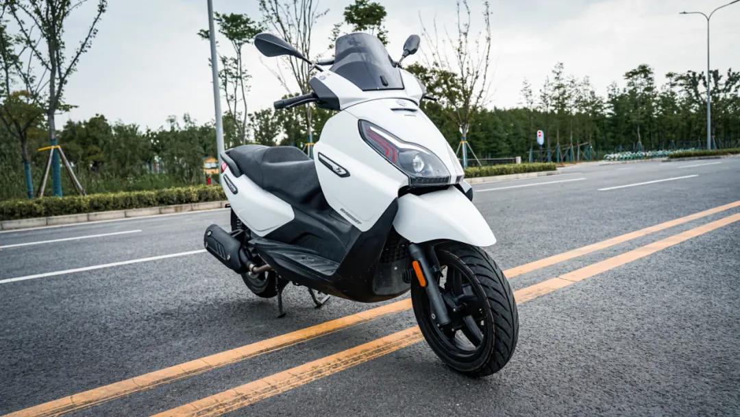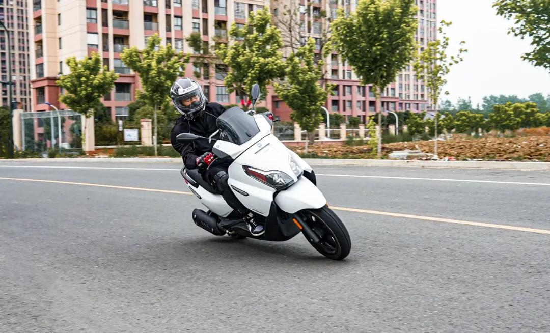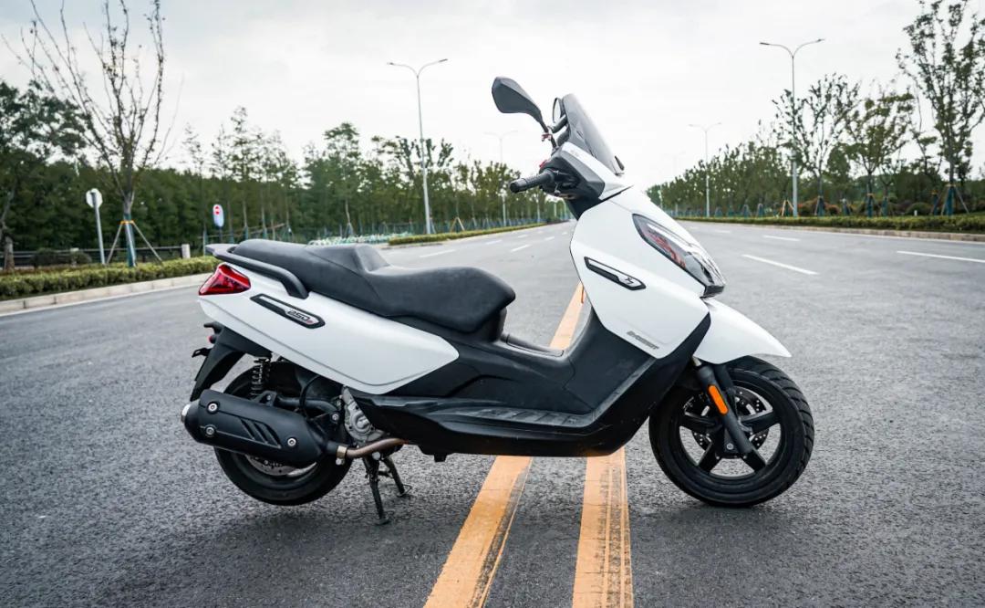 僅有182公斤的整備質(zhì)量和1480mm的軸距,在同級(jí)別踏板中是最輕最短的,騎起來(lái)左右變道非常輕巧,在城市里穿梭超車(chē),就像騎著一輛巧格一樣靈活自如,比之前測(cè)過(guò)的光陽(yáng)S350操控更加靈活,這里毫不夸張,大家可以去親自試駕體驗(yàn)一番。