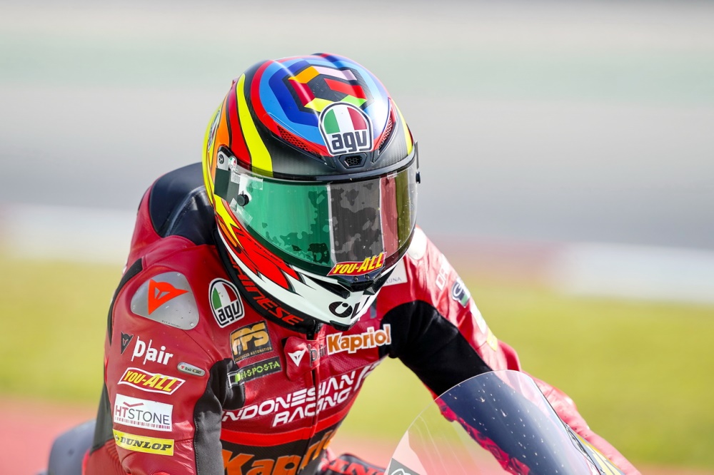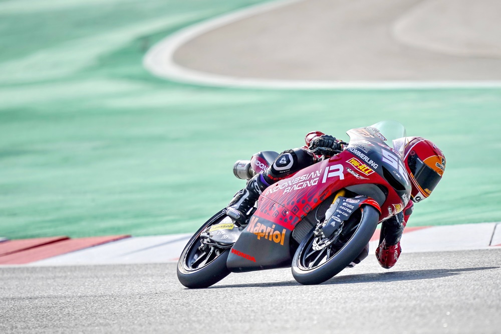 阿科巴在 FP1 的時候尚處于尋找設(shè)置的狀態(tài),表現(xiàn)并不亮眼,只跑出一個接近 1 分 50 秒的時間。到了 FP2,他在最后一圈(第 13 圈)跑出了 1 分 48.449 秒的最佳圈速,這是整天下來、Moto3 級別綜合第六快的時間。