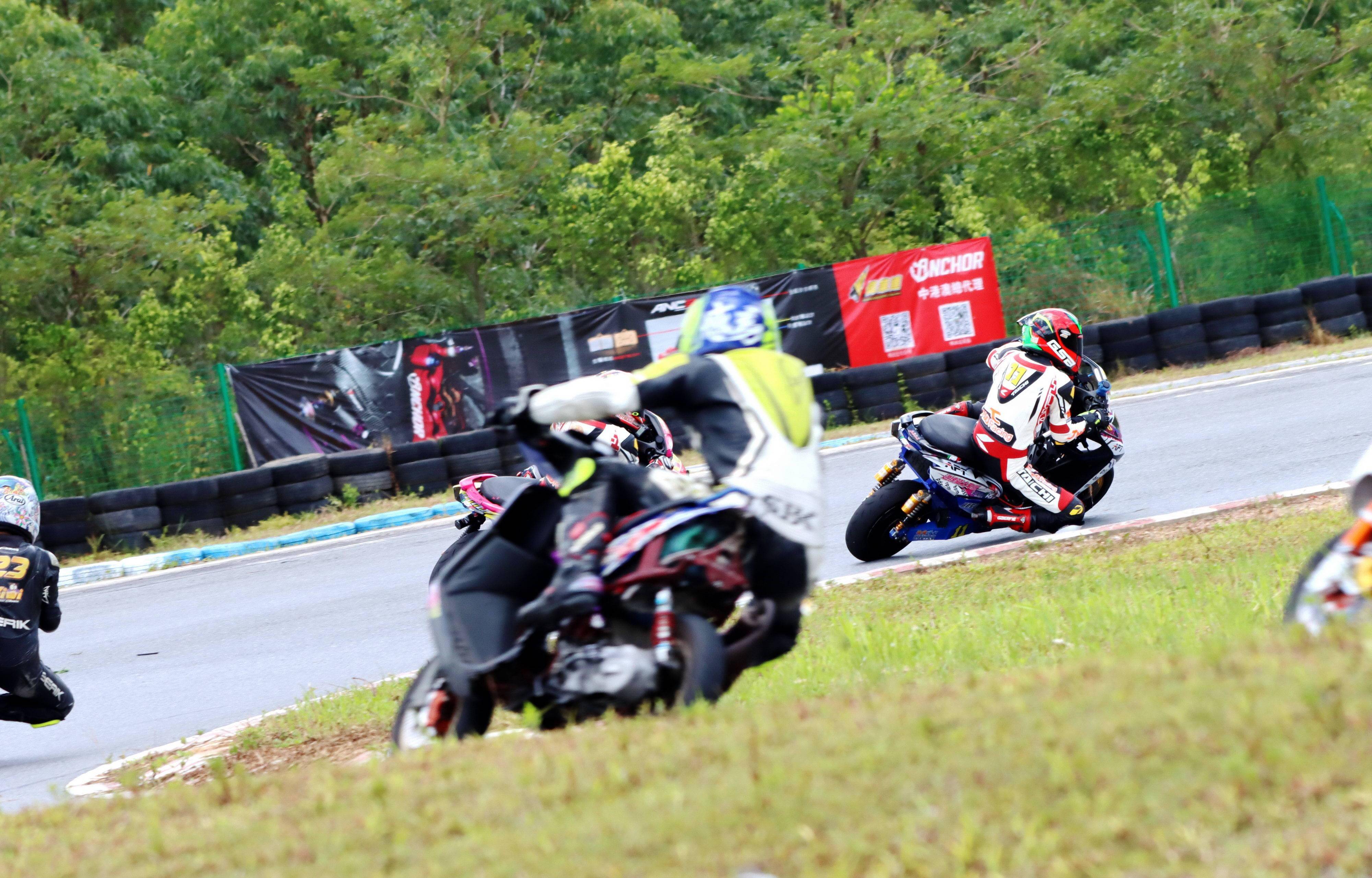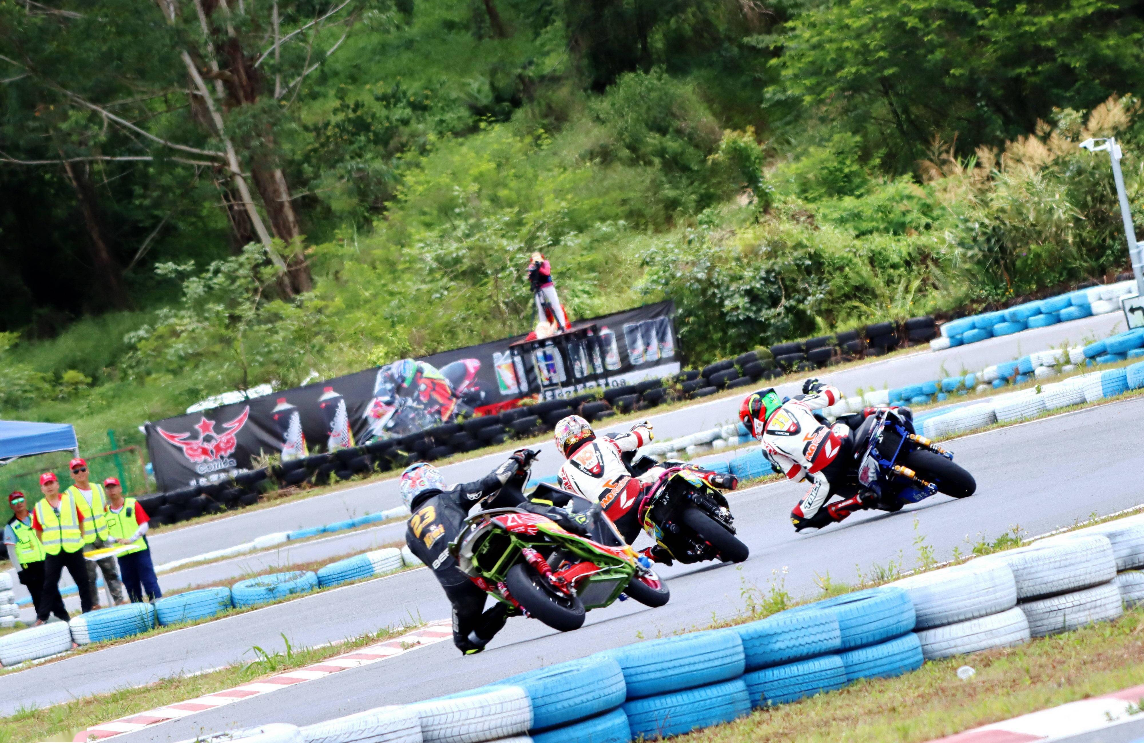 兩節(jié)的比賽,前面的第一競爭集團(tuán)、是梁宇華和李俊的電車公開組冠軍之爭,隨后則是(兩沖程)踏板公開組幾臺賽車在各顯身手,上演著寸土不讓的追逐。