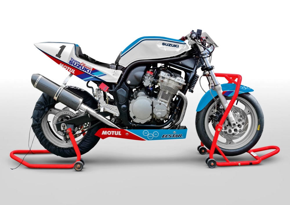 該車搭載一副來自 GSX1100SD(1983' GSX1100S Katana)的風(fēng)/油冷發(fā)動機,排氣量擴大至 1,170 cc(標(biāo)準(zhǔn)狀態(tài)下的排氣量是 1,075 cc、最大馬力輸出 111 匹)。車隊使用這臺 Katana 賽車、贏得了后來在德國奧歇斯勒本(Oschersleben)舉行的歐洲經(jīng)典耐力四小時錦標(biāo)賽(European Classic Endurance Championship)的冠軍。