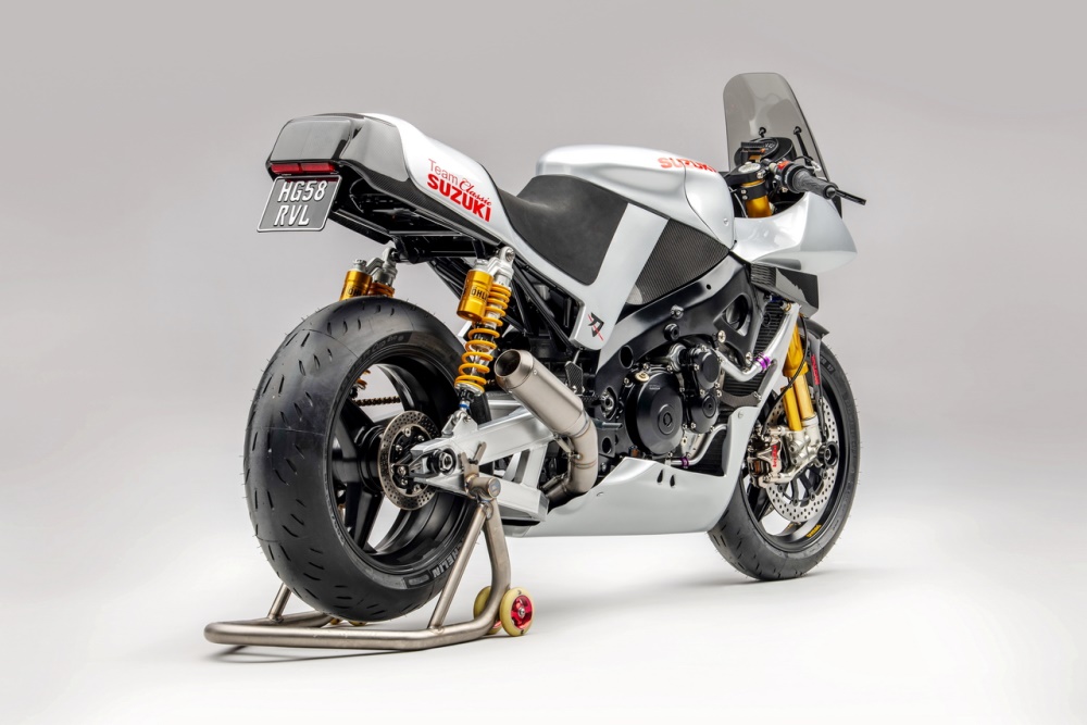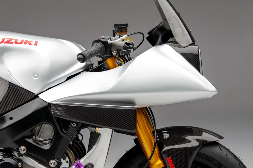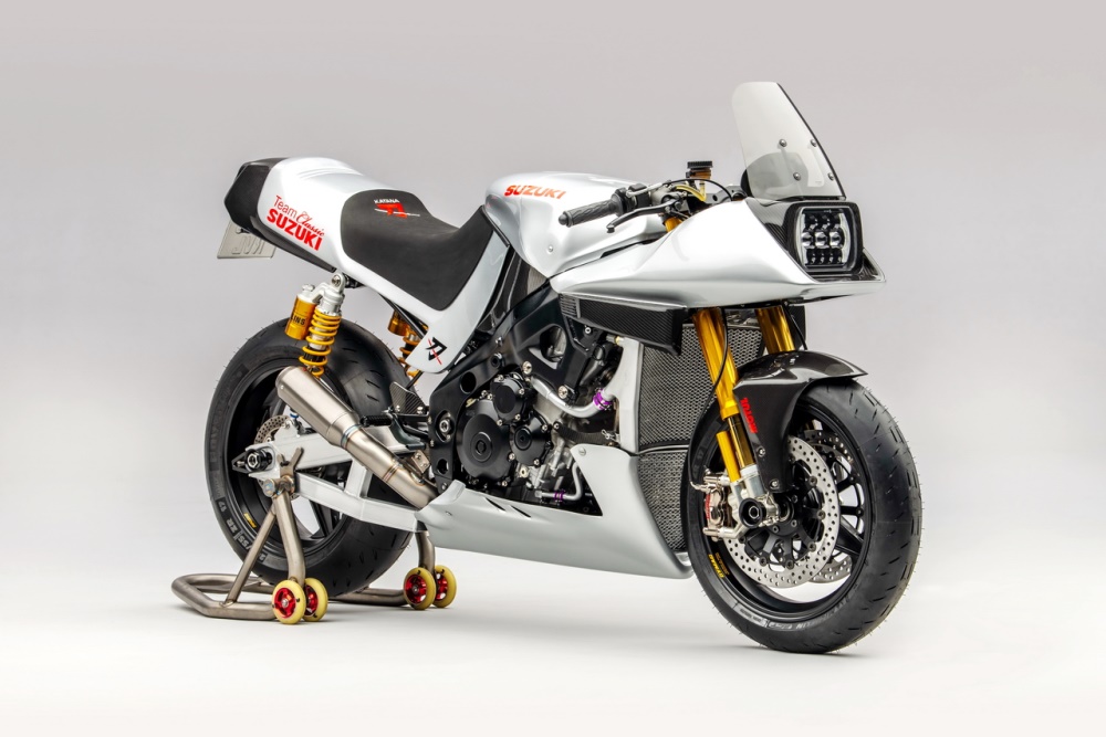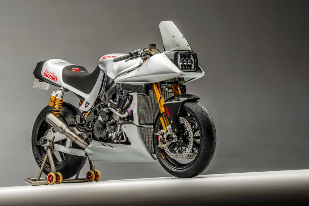下面的圖片,2017 年的時候,“ Suzuki 經(jīng)典車隊 ” 制作了這臺針對英國和歐洲 “ 傳奇耐力賽 ”(Endurance Legends,使用老式車拼湊出來的賽車之賽事)所使用的 Katana 風(fēng)格賽車。