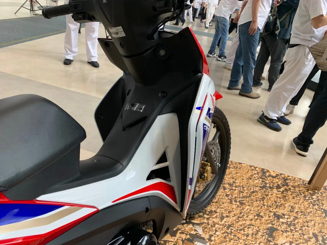 特別是現(xiàn)場發(fā)布的兩輛特別版,麒麟版的RX125,動感的貼花中點綴這暗紅色的涂裝,像流動血液一般,加上暗紅色的后尾架,輪圈暗紅色的線條涂裝,讓那種血脈賁張的感覺淋漓盡致!