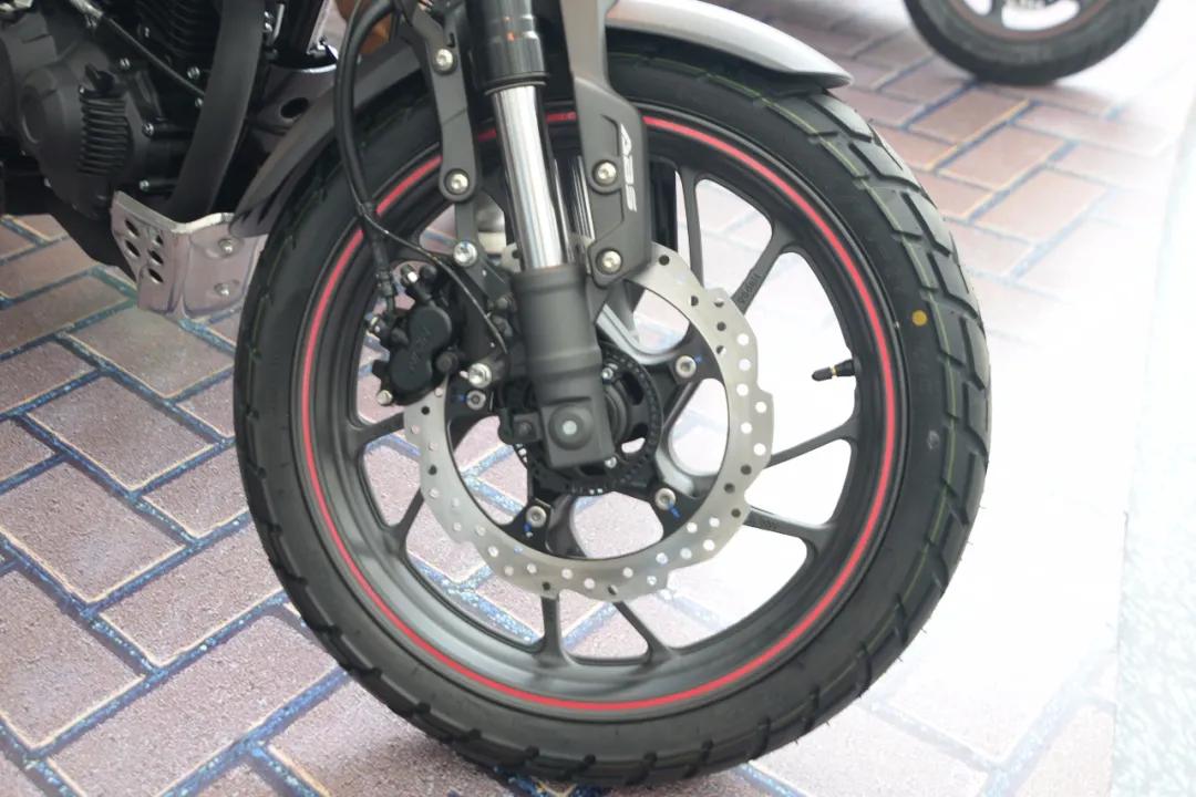 前正置減震,行程達到了125mm,后減震五段可調,已應對不同的使用場景。