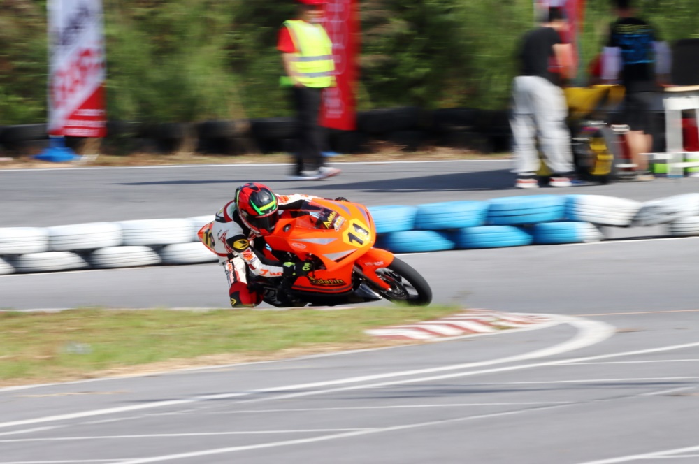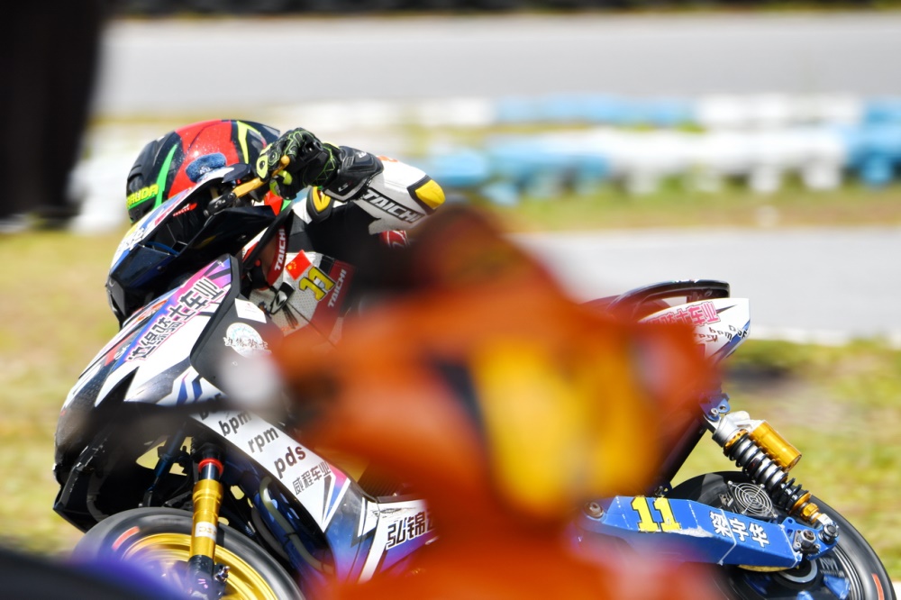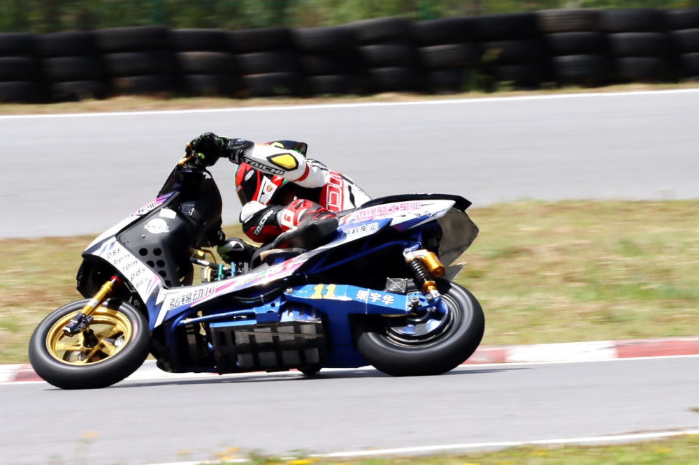 多位車手、兼項參加多個組別的比賽,其中就包括了以自己的 “ 傳統(tǒng) ” 車號 —— 11 號車,參加 MiniGP A 組、改裝街車公開組(四沖程)和電車公開組,總共三個組別賽事的梁宇華。