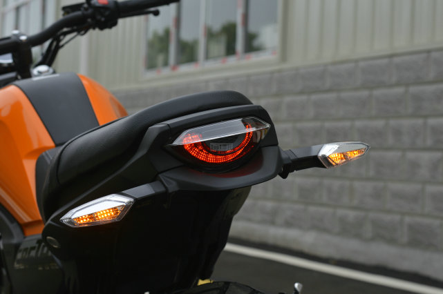 前后轉(zhuǎn)向燈皆為L(zhǎng)ED形式,尾燈的設(shè)計(jì)我非常喜歡,作為變形金剛的忠實(shí)粉絲,這個(gè)尾燈仿佛讓我看到了“變形金剛”的眼眸,充斥著未來(lái)派的機(jī)械美感。