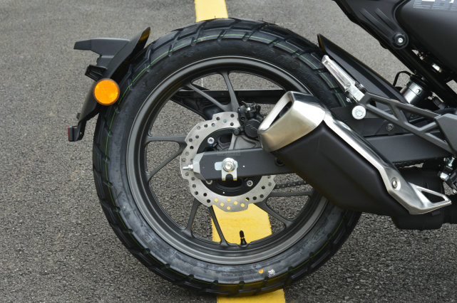 后剎車同樣是浪花碟,配備單活塞的Nissin剎車卡鉗,后輪是沒有ABS的,所以新手在使用的時(shí)候需要注意主前輔后。