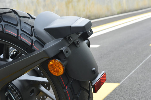 為了營(yíng)造出復(fù)古的氛圍,190TR采用了短尾的設(shè)計(jì),同時(shí)為了追求擋泥效果,牌照框和擋泥板一并被移到了后搖臂上。