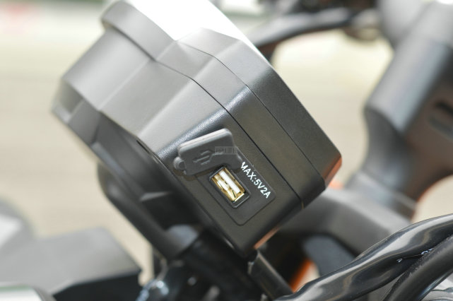 儀表盤側(cè)面就是USB充電接口,有專門的橡膠防水蓋,輸出電流為5V2A,這個(gè)位置沒有遮擋且非常顯眼,使用起來(lái)很方便。