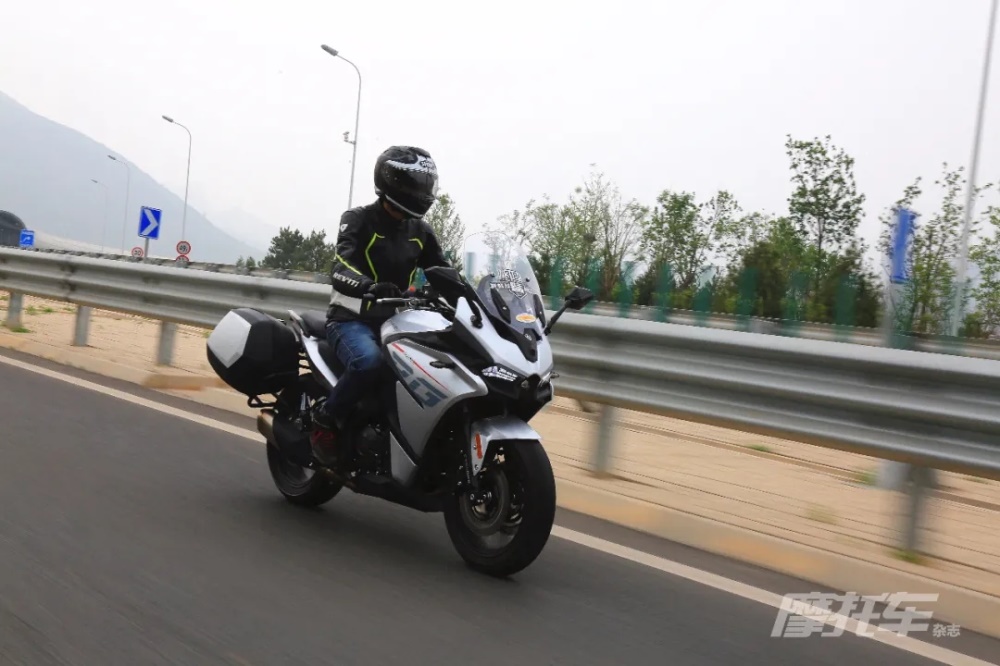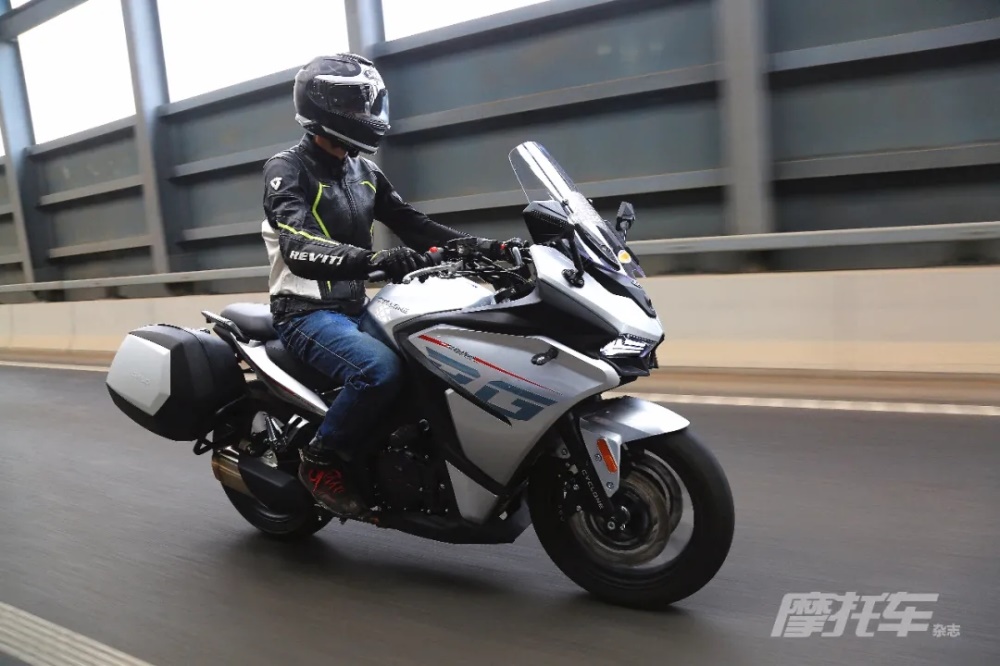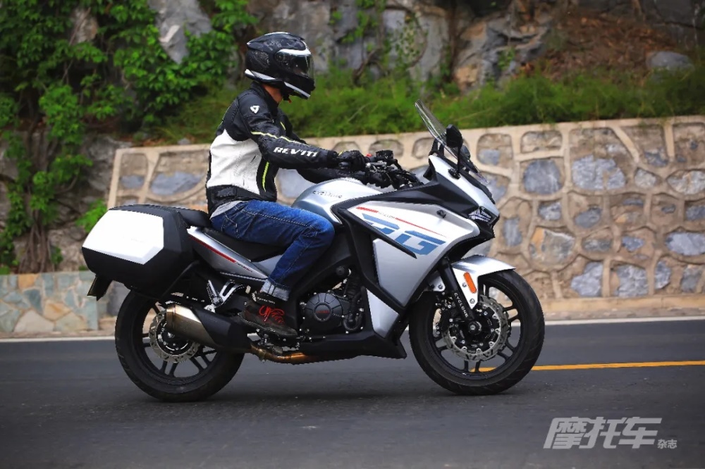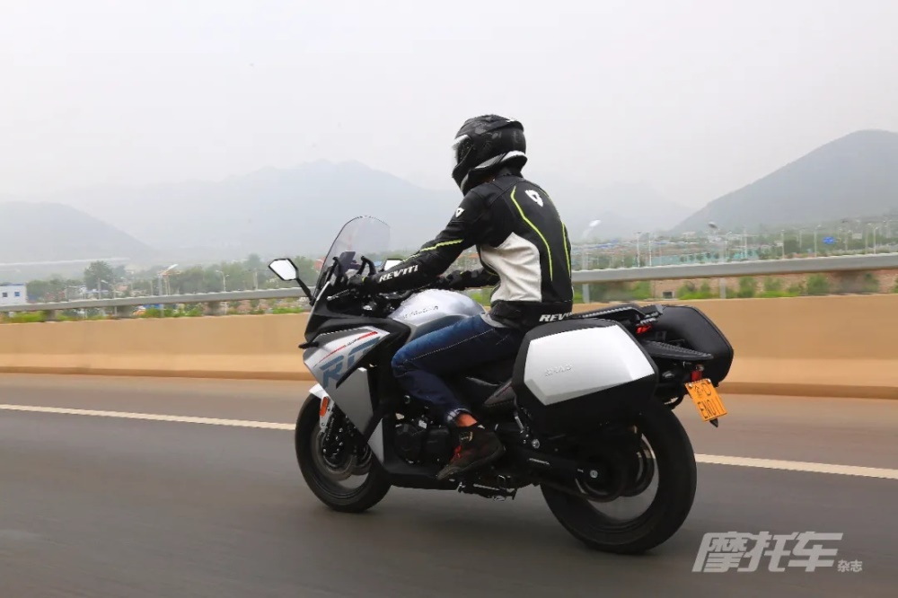 RG3作為一款運動旅行車,考慮到了旅行的舒適性,對車把進行了加高,但車把距離坐墊較遠,身高較矮的騎手還是需要一定的俯身。坐墊寬厚且不乏支撐性,腳踏的位置比較適中,腿部空間充裕,騎行過程中整車的振動控制不錯。操控上雖然整車質量看著不小,但轉向輕盈,騎起來并不覺得沉,甚至比賽科龍同排量的街車更加輕巧,符合旅行車的定位。