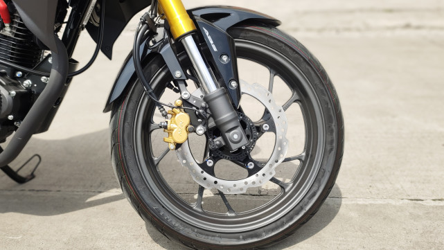 金色的倒立式前叉看上去頗有檔次感,這根倒叉也用了好多年了,質(zhì)量穩(wěn)定可靠,品質(zhì)方面不會出現(xiàn)什么問題。