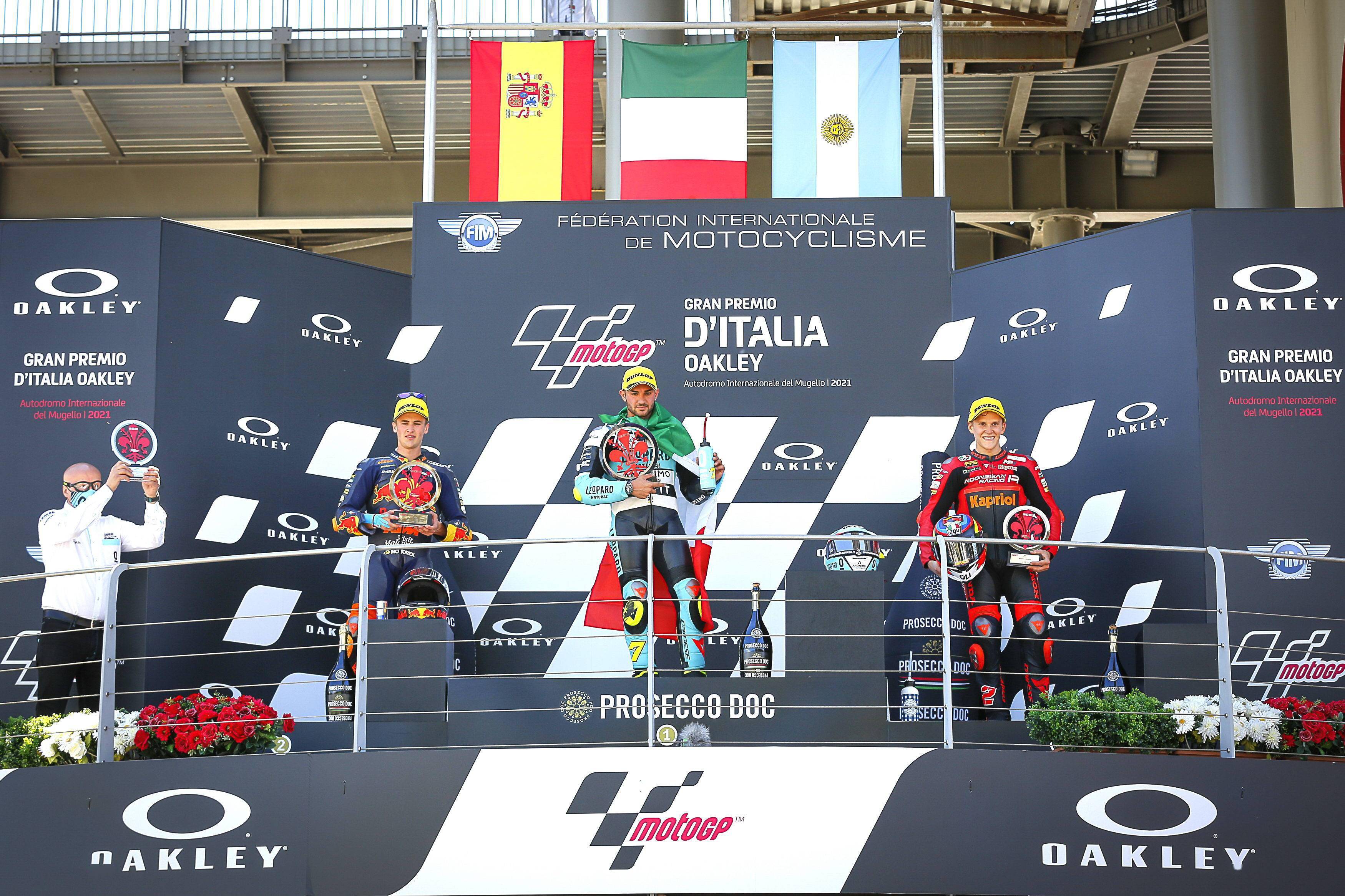 在過去的七個(gè)分站比賽里,RC4 平臺(tái)奪得了六個(gè)分站的冠軍,而他們的對(duì)手、HRC NSF250R 僅奪得過一次冠軍 —— 意大利車手福吉亞(Dennis Foggia)在家鄉(xiāng)站的比賽(第六站、意大利木杰羅)中奪冠,打破了西班牙車手對(duì) 2021 賽季 Moto3 冠軍的壟斷。