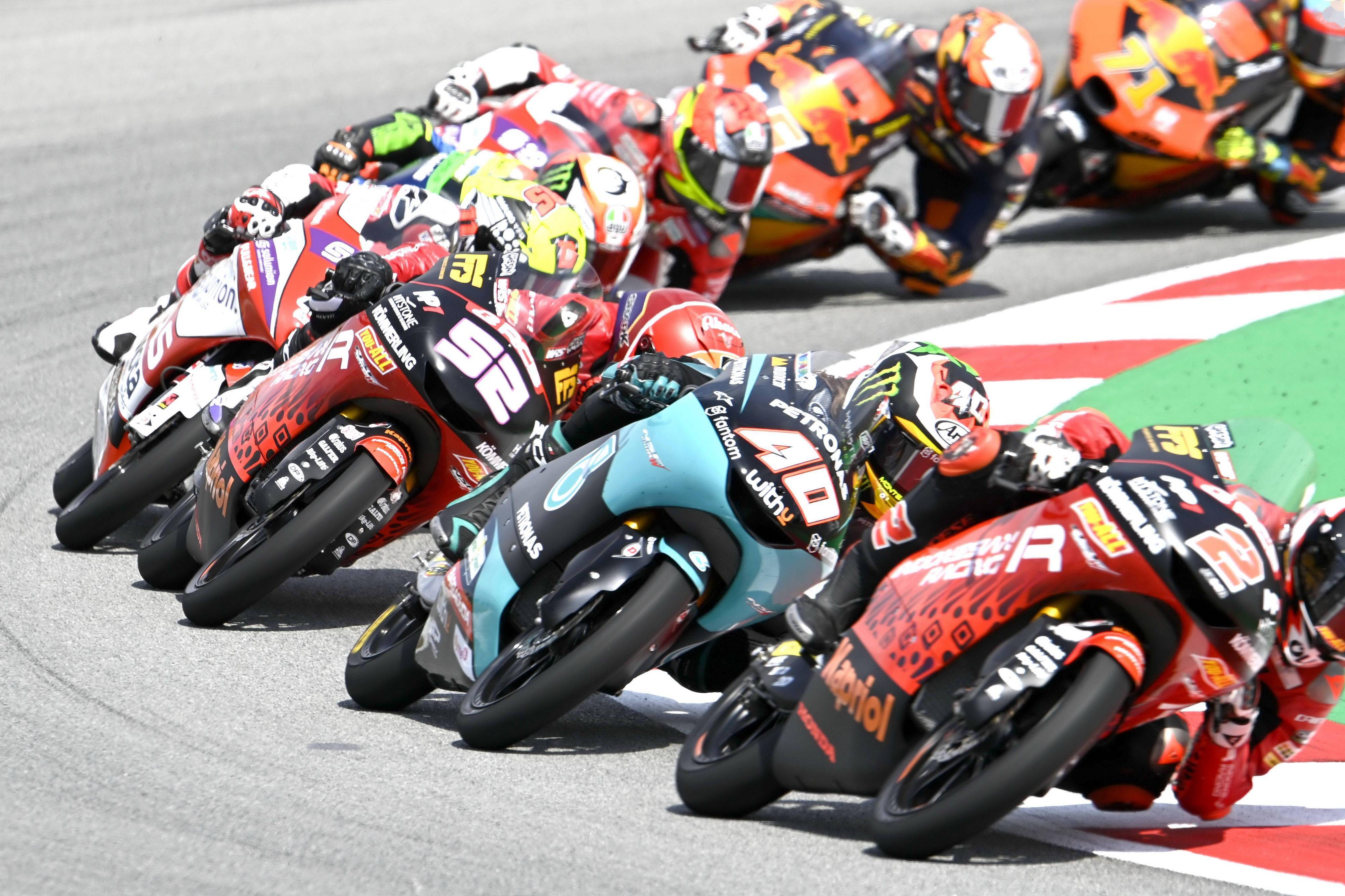 下面的圖片,Moto3 級(jí)別、在 2021 賽季前幾站的爭(zhēng)奪(資料圖片)。