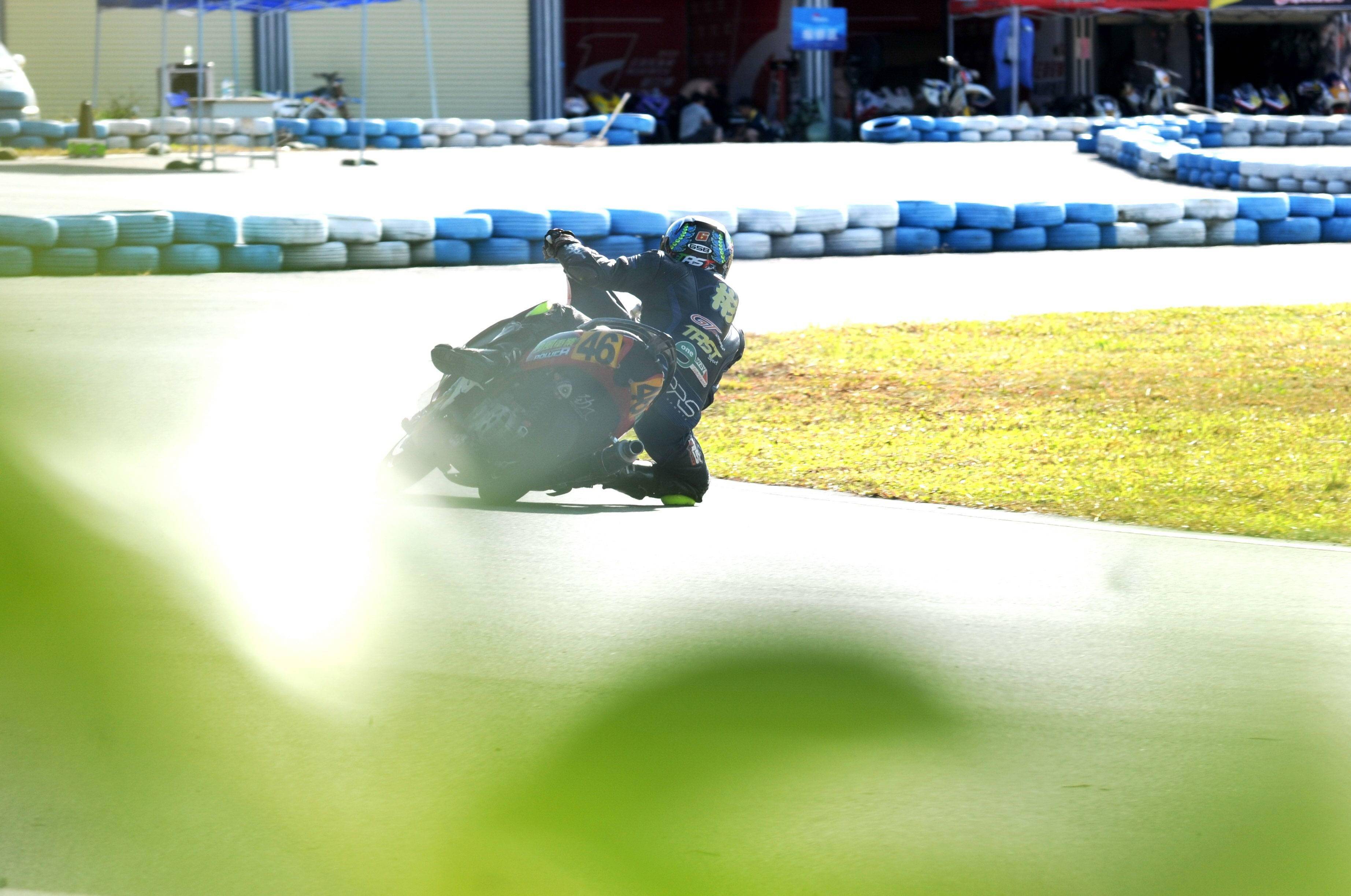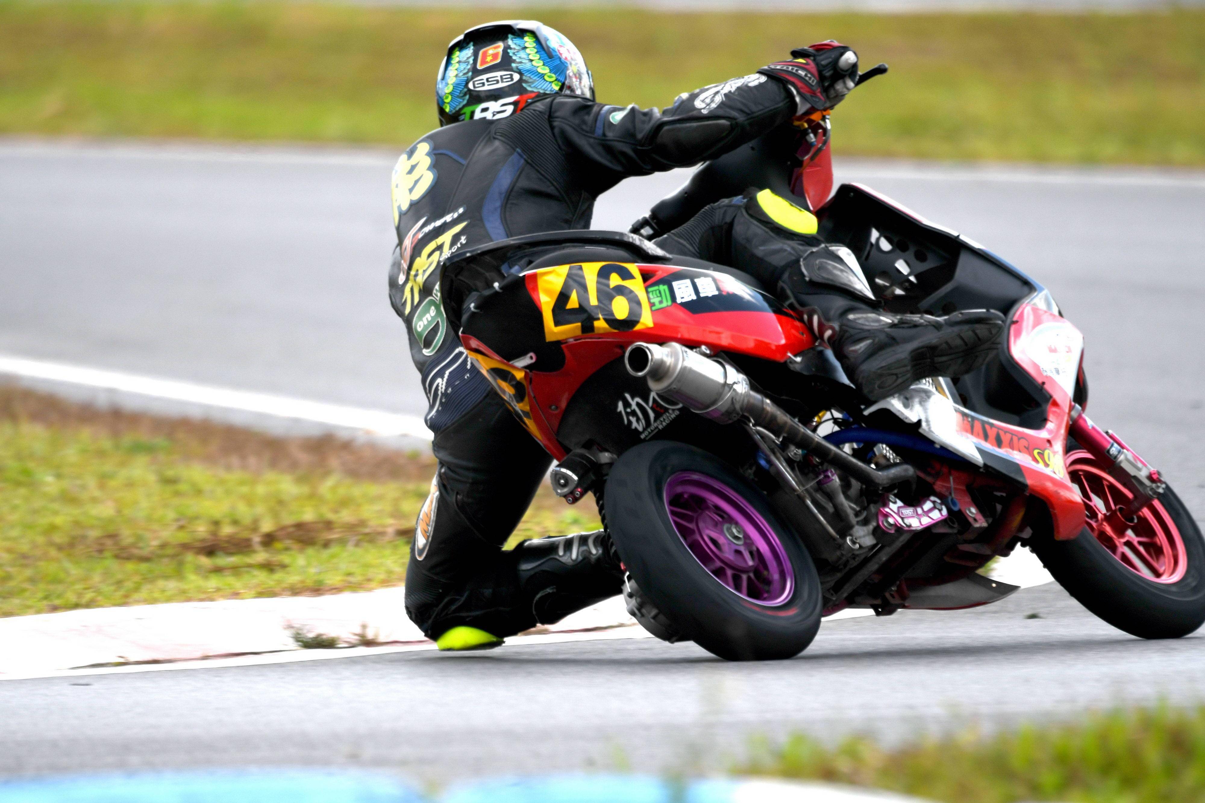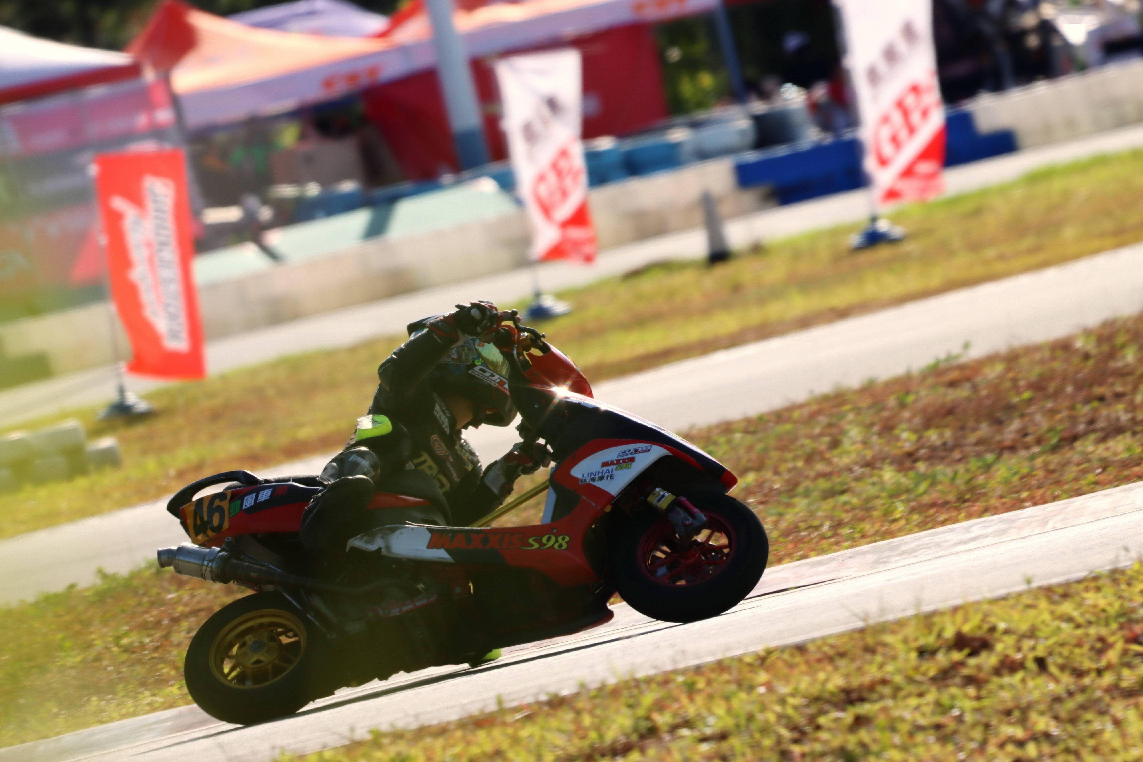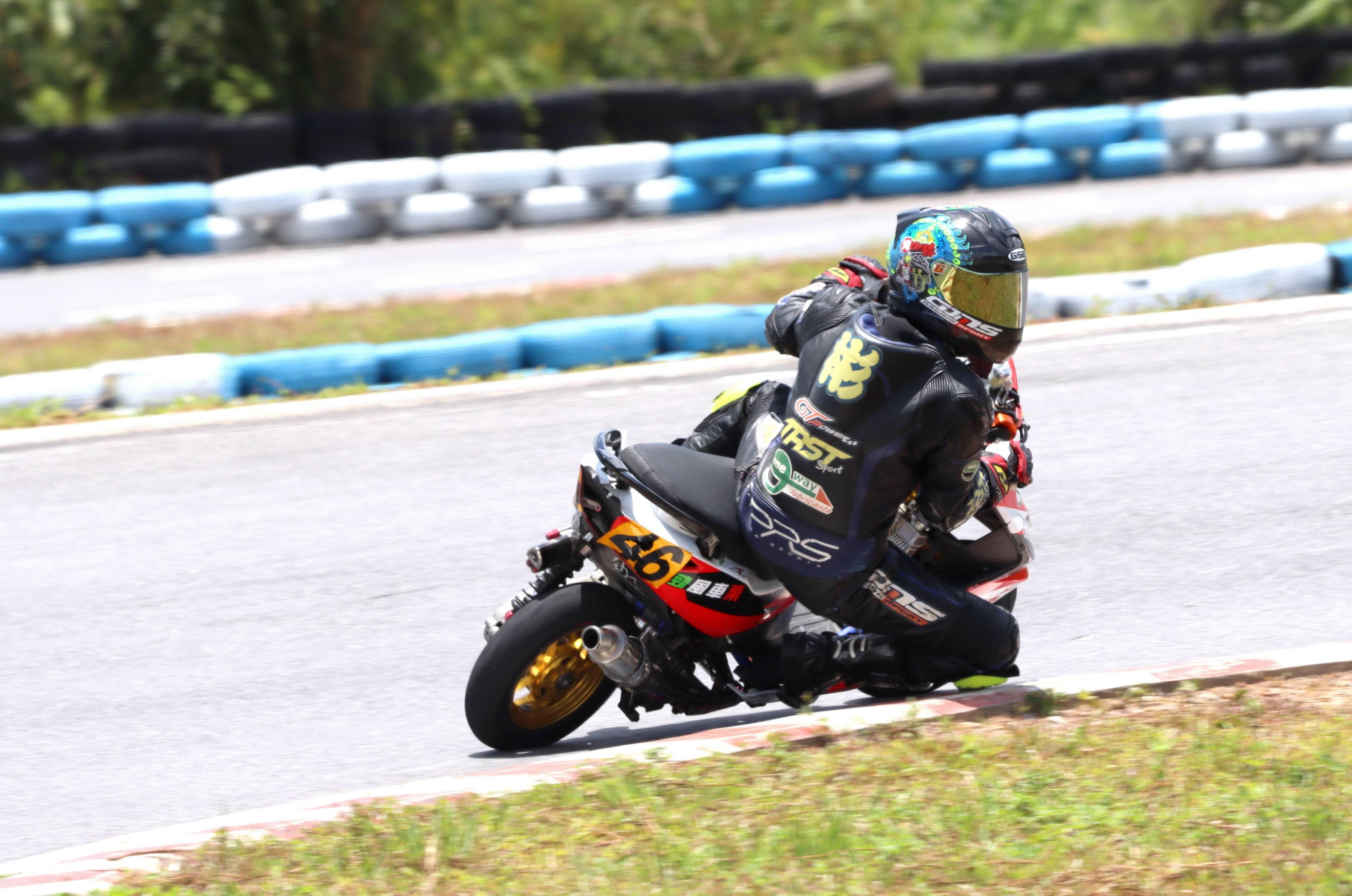 最終,賀彬彬奪得了兩節(jié)比賽的第一,以全勝的姿態(tài)奪得了本站比賽、Arisun 艾瑞森輪胎改裝踏板 150 cc 公開組的冠軍。