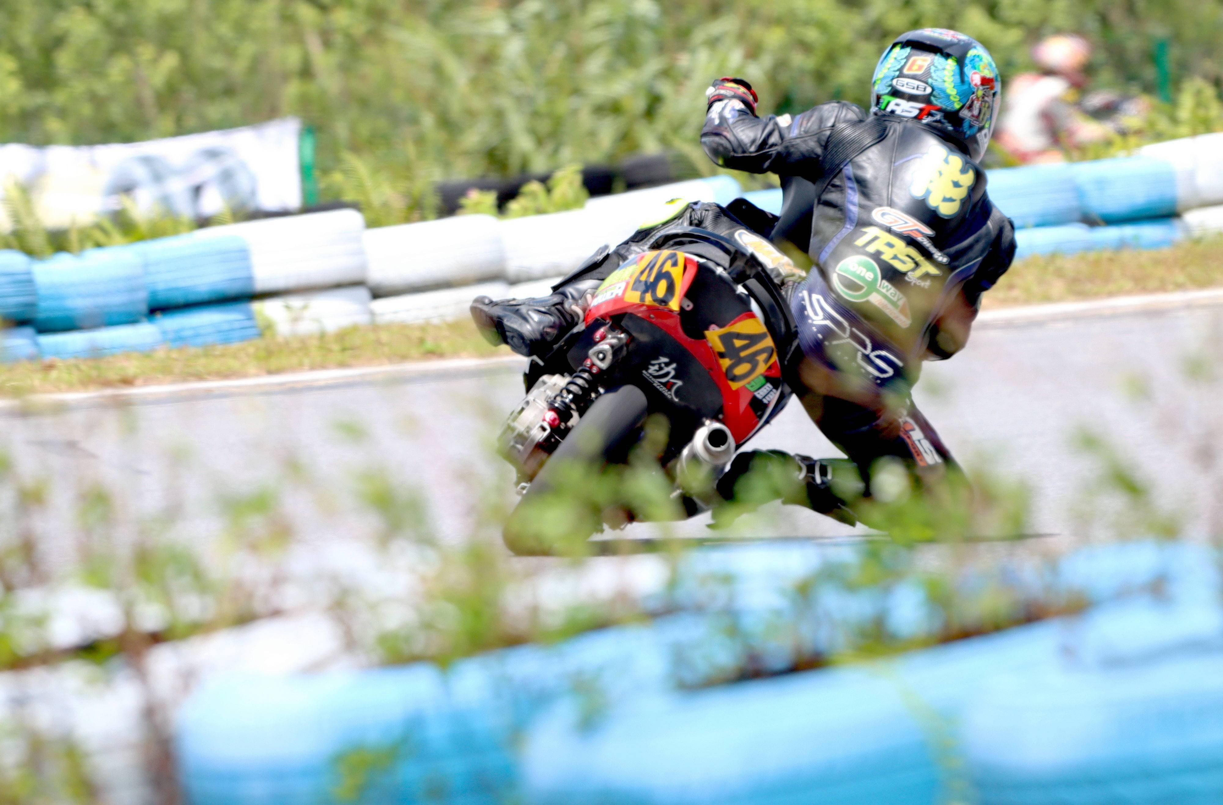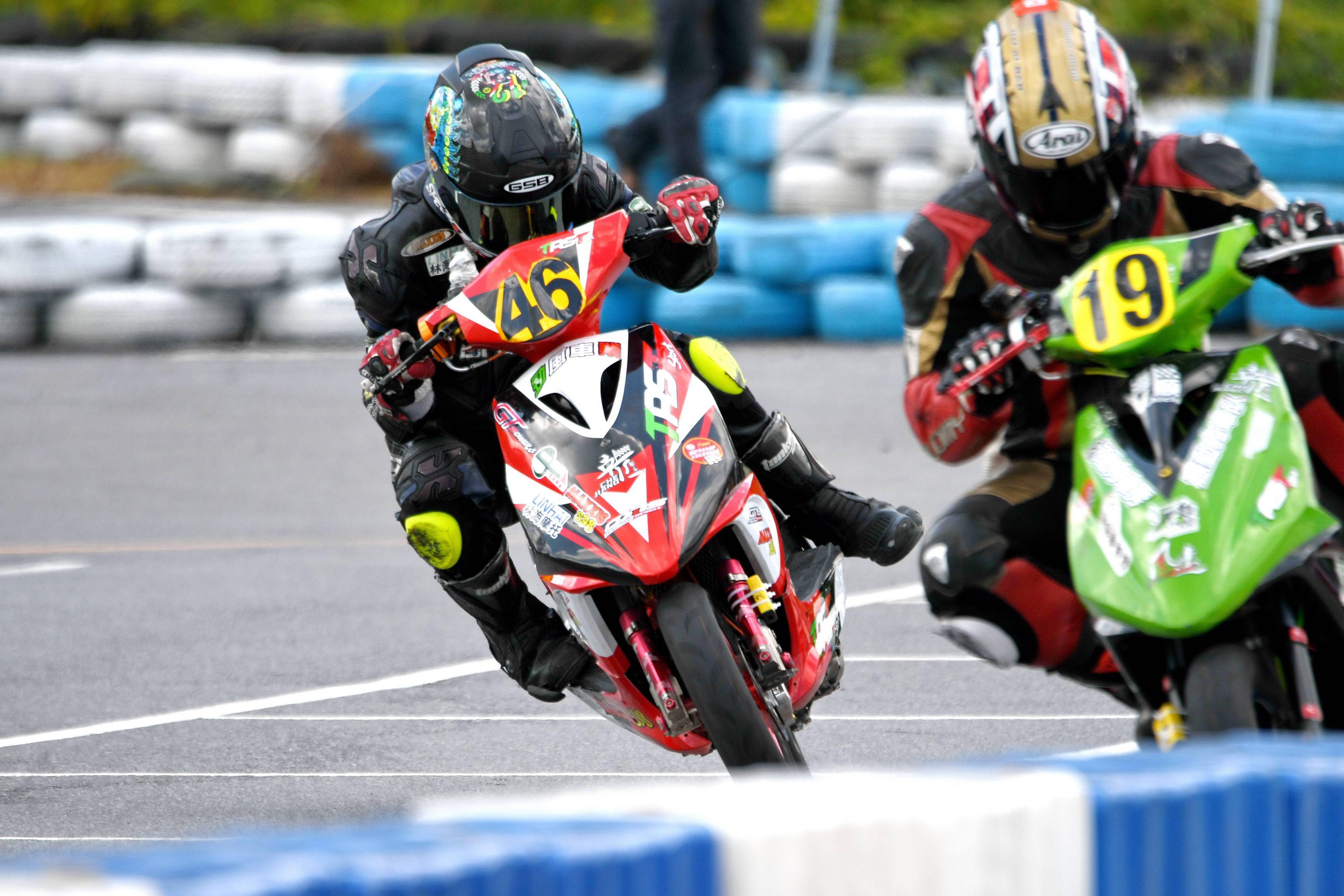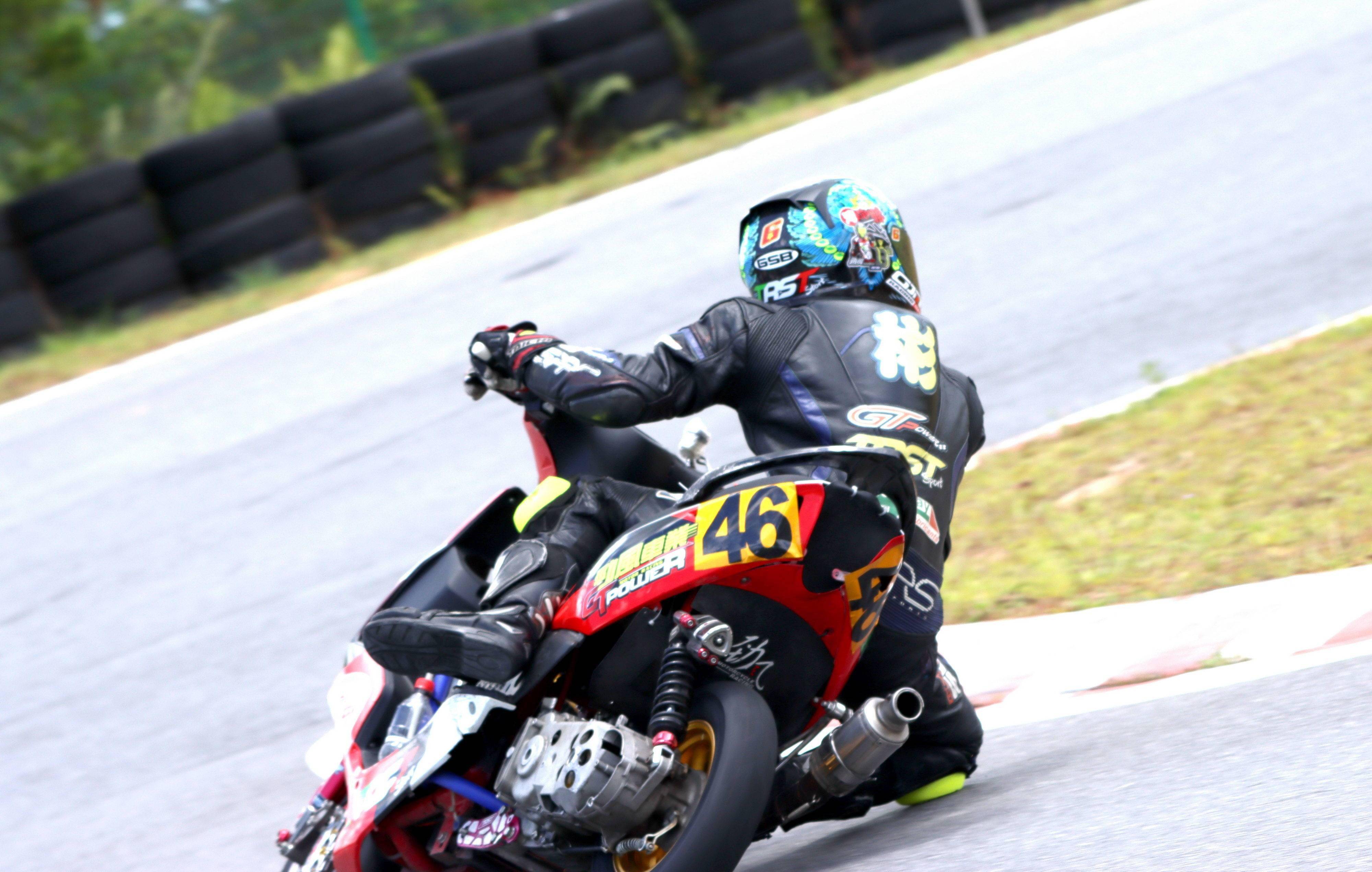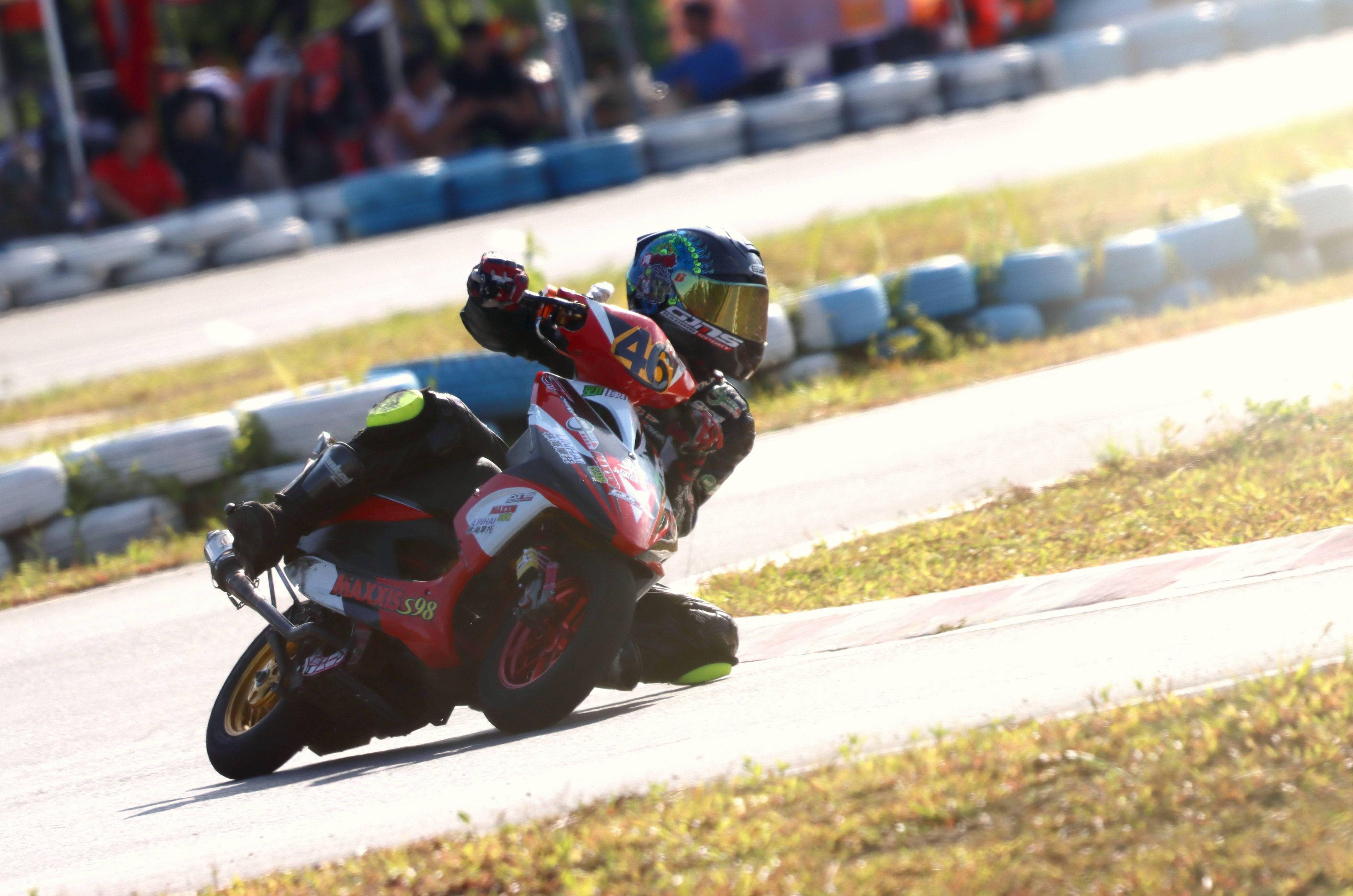 最終,賀彬彬奪得了兩節(jié)比賽的第一,以全勝的姿態(tài)奪得了本站比賽、Arisun 艾瑞森輪胎改裝踏板 150 cc 公開組的冠軍。