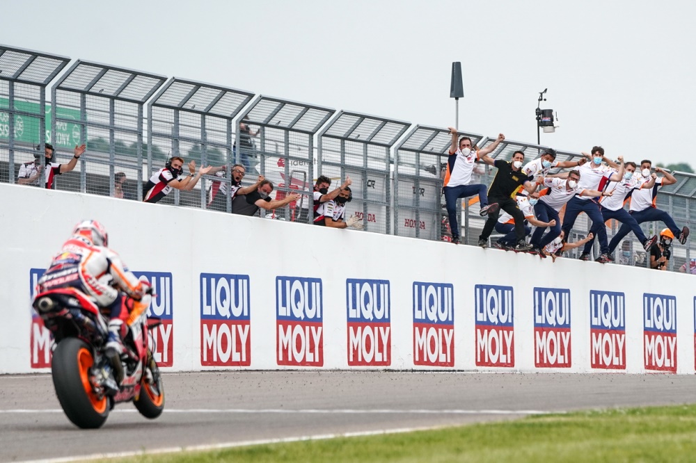 倒數(shù)第 2 圈的時(shí)候,在對(duì)手一輪的狂推都無(wú)法接近之下,跑著自己節(jié)奏的馬昆斯把原本只有大約 1 秒的優(yōu)勢(shì)、擴(kuò)大至接近 1.9 秒。最終他順利奪得了德國(guó)站的勝利,連續(xù)十一年、在薩森靈賽道上稱王。這是他復(fù)出之后的首個(gè)冠軍,與上一次的分站冠軍、已經(jīng)相隔了 581 天(他對(duì)上一次的分站冠軍,是 2019 年十一月 17 日的西班牙瓦倫西亞站)。