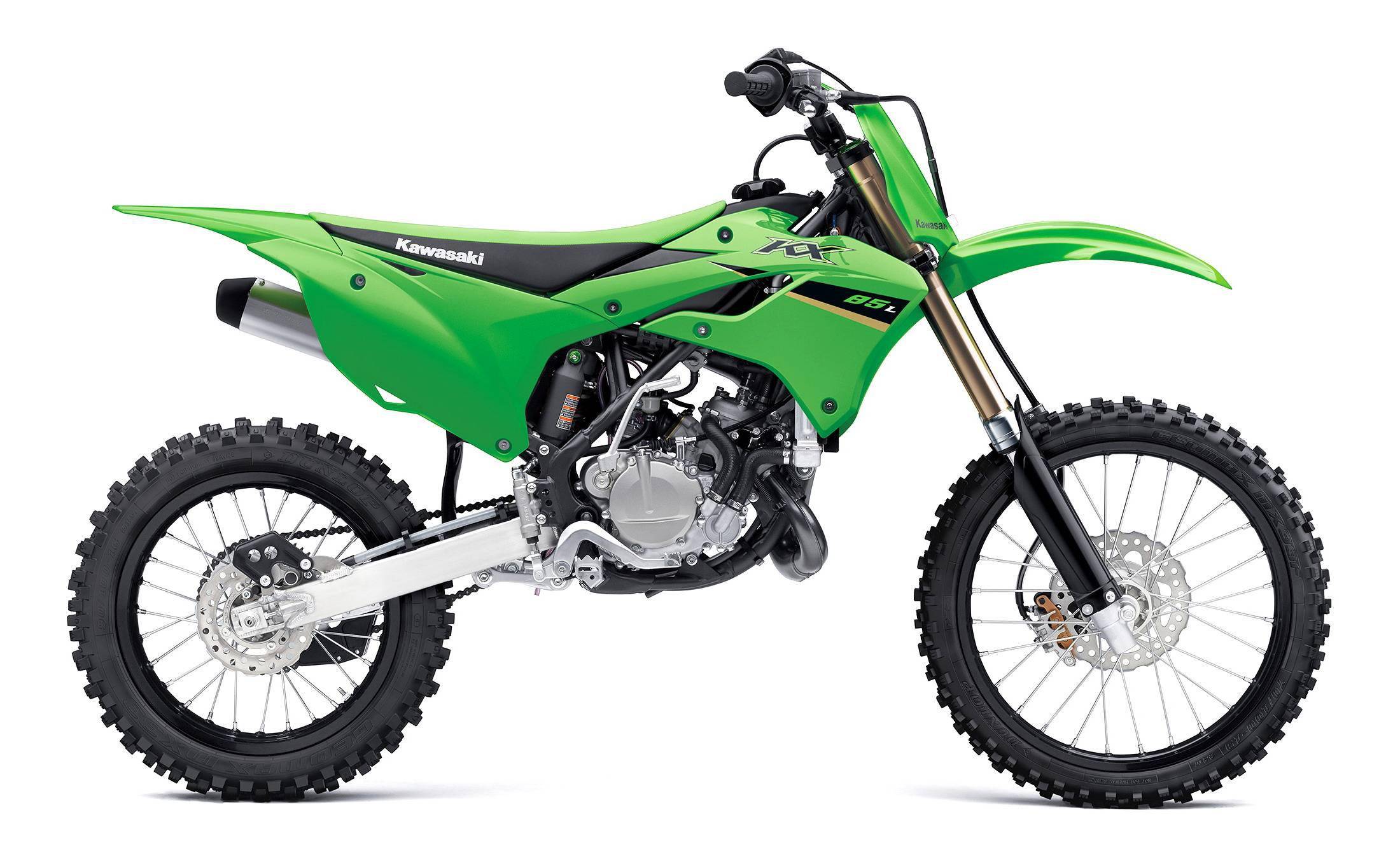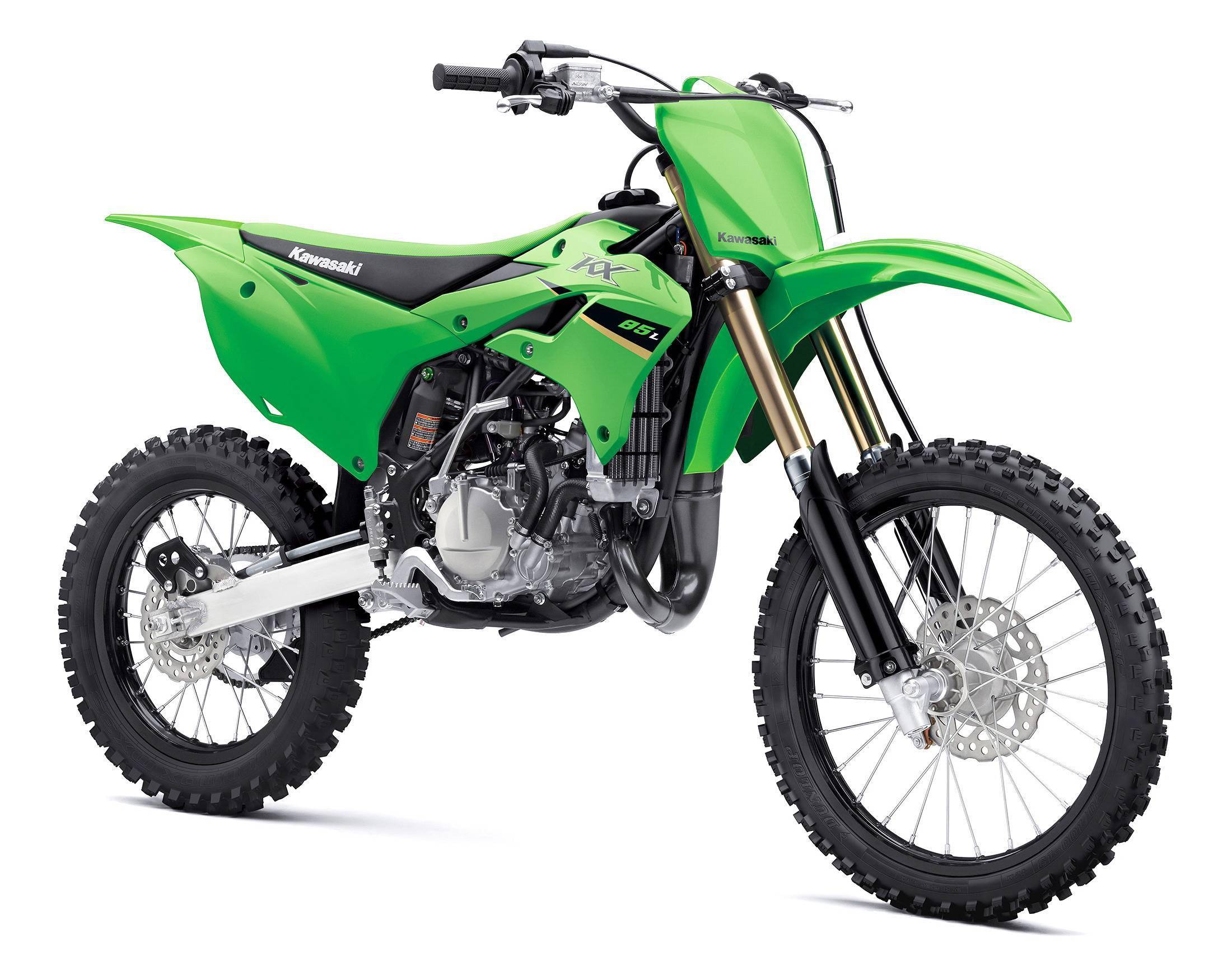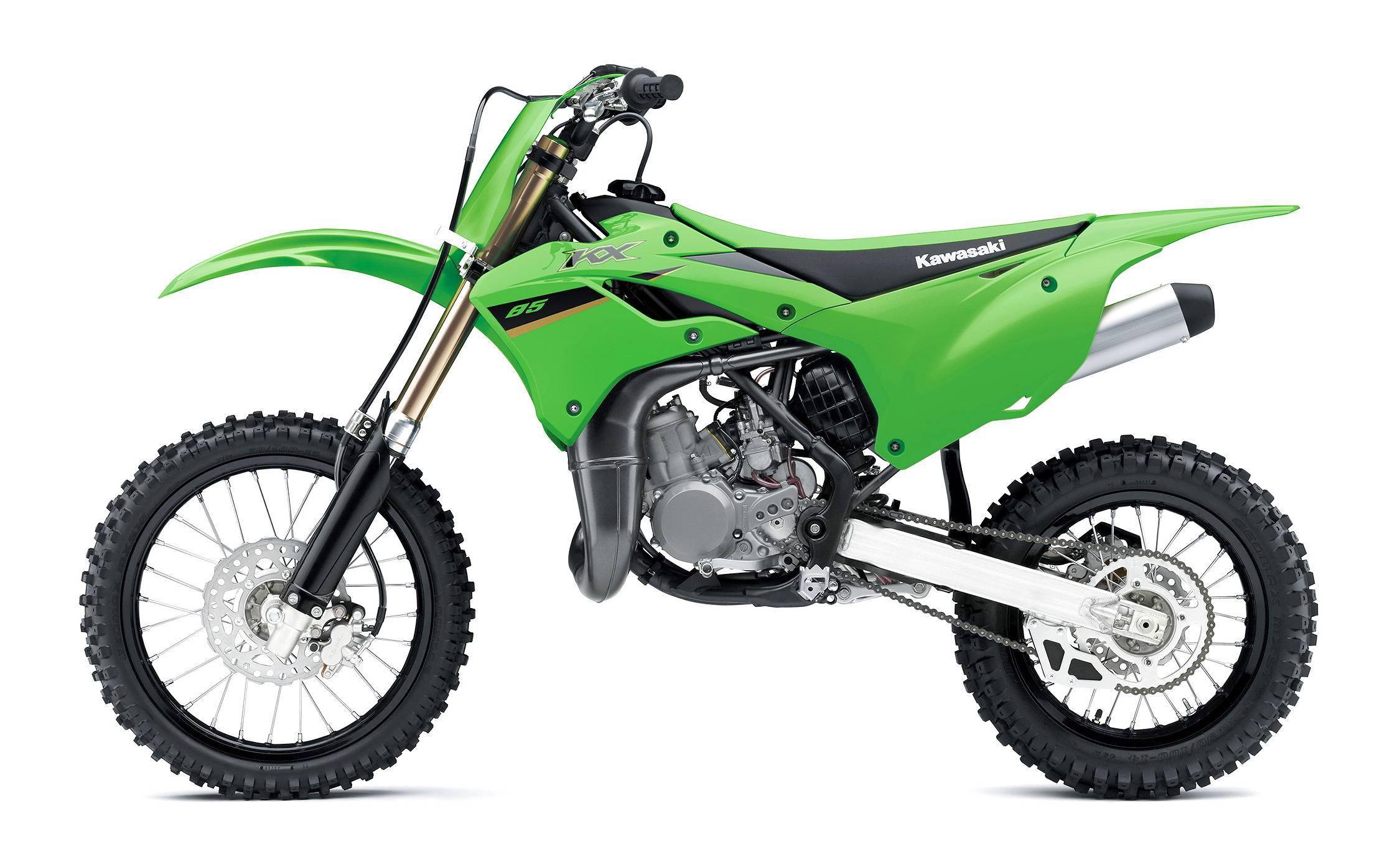 2022 版的 KX85、KX85L 有一個新的車身圖案,散熱水箱的兩側(cè)護(hù)罩也經(jīng)過了重新設(shè)計(jì)。標(biāo)準(zhǔn)型的 KX85 采用前 17、后 14 英寸直徑的輪框,L 版則采用前 19、后 16 英寸直徑的輪框。