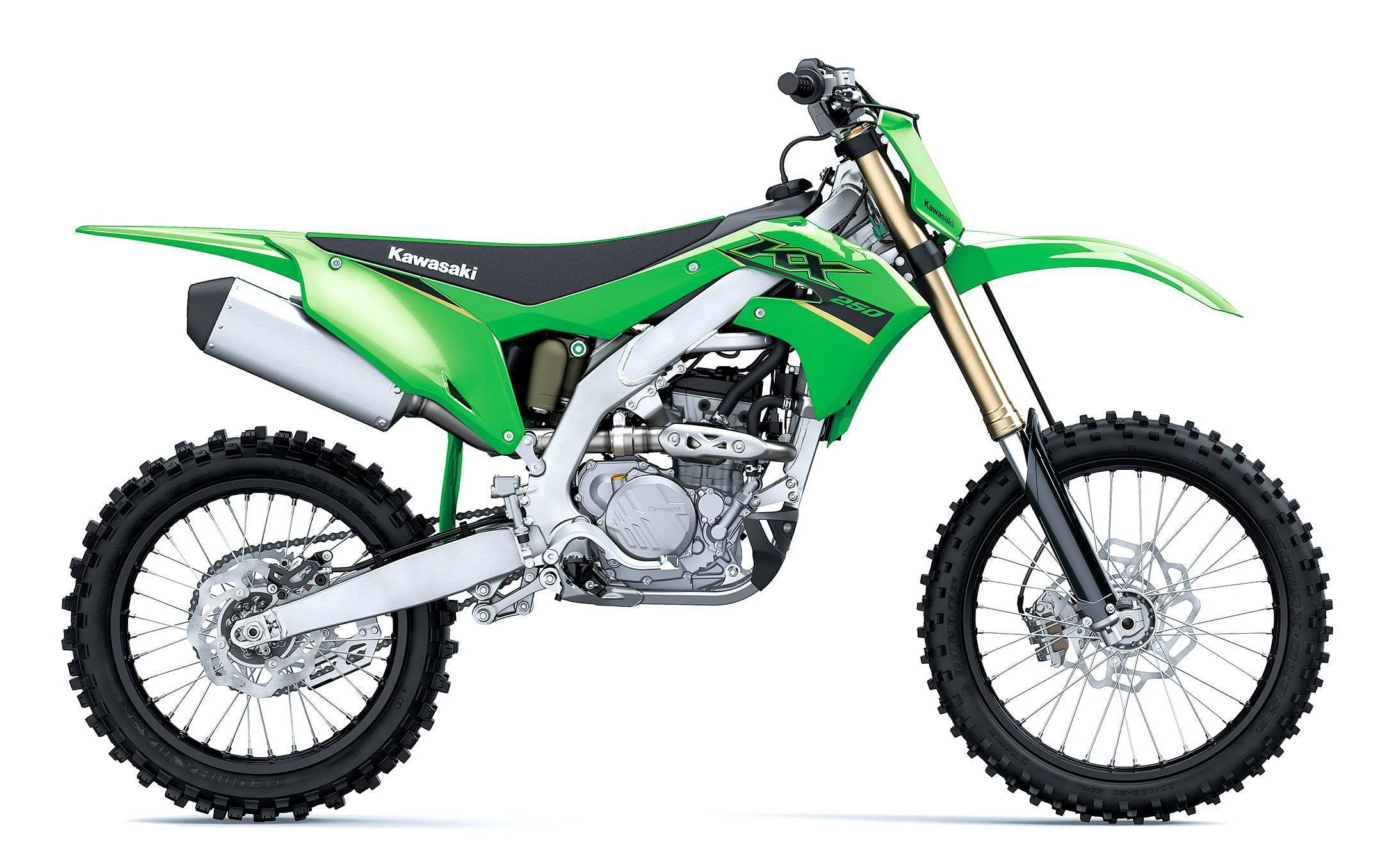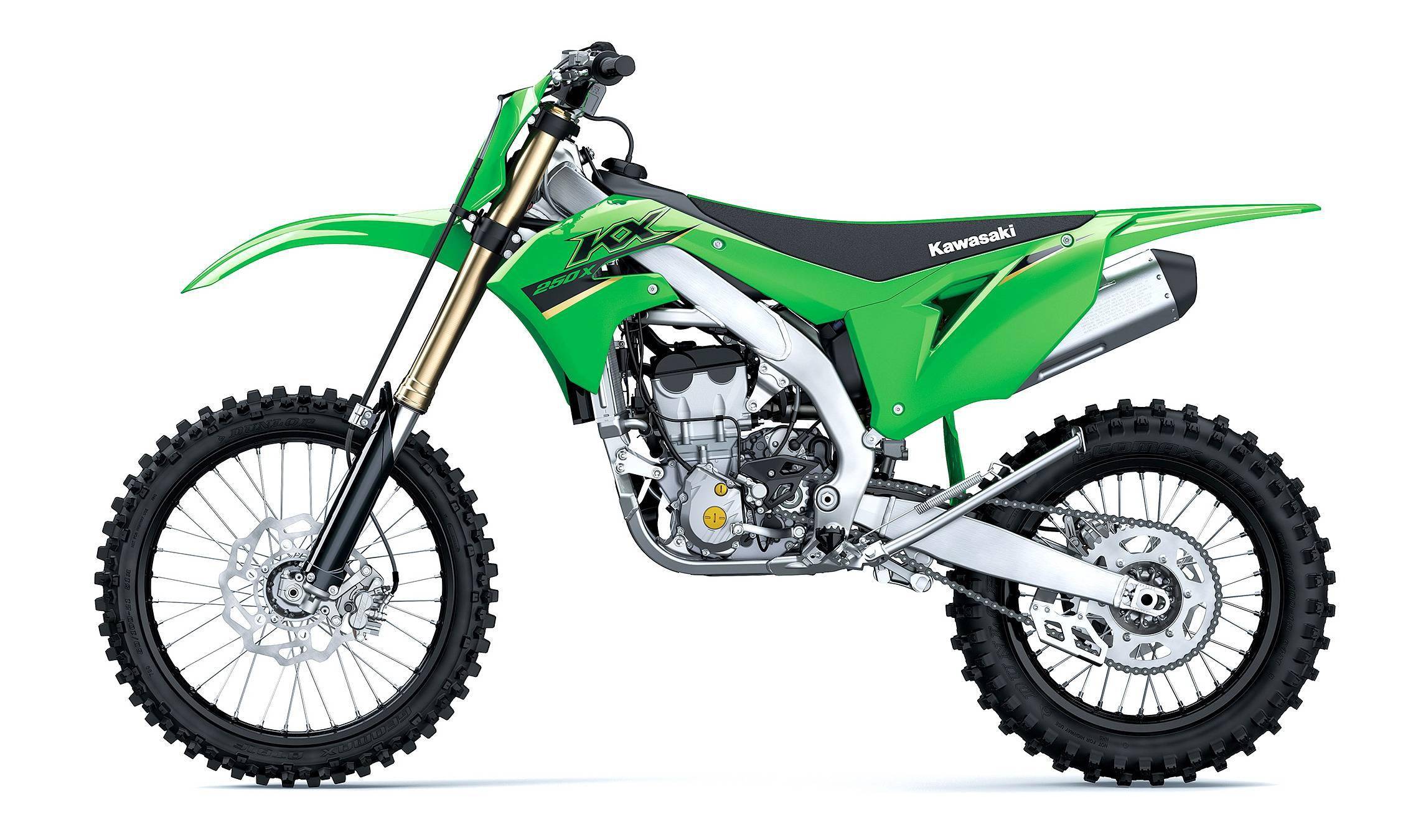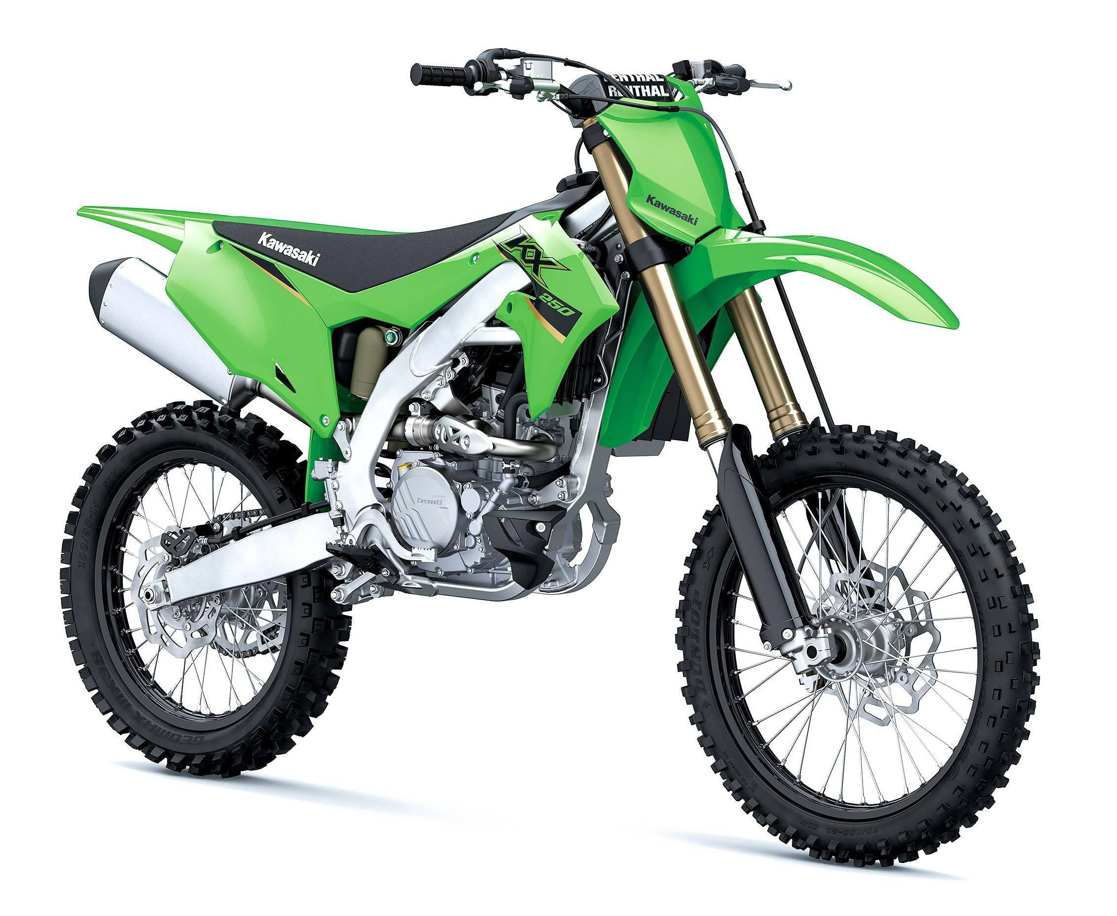 全尺寸的市售越野賽車 KX250、KX450,2022 版本的主要變化是車體圖案,技術(shù)規(guī)格上并沒有重大的修改。兩個車型中,以 MX2 級別的 KX250 較受注目:與 KX450 相同型式的車架和后搖臂,與 KX450 相同設(shè)置的液壓式離合器,源自 WSBK 工廠賽車 Ninja ZX-10RR 相同技術(shù)的凸輪軸手指式隨動搖臂,該設(shè)計(jì)可使凸輪軸具有更一致的高轉(zhuǎn)速性能。