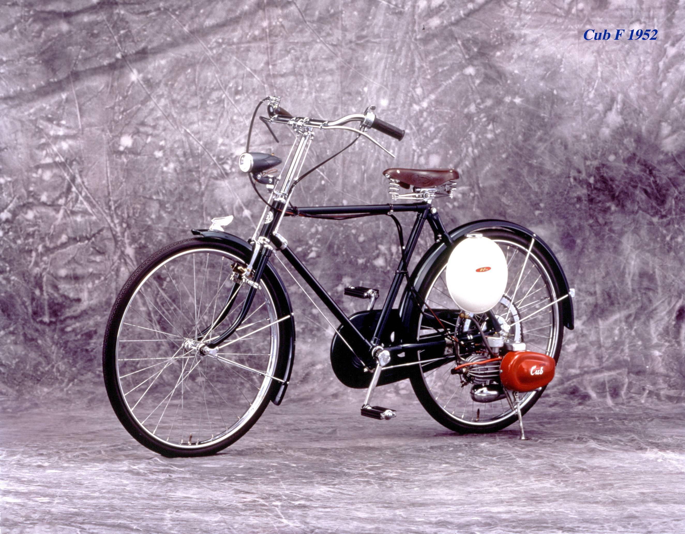 下面的圖片,Super Cub “ 超級幼獸 ” 的前身,是搭載了一副發(fā)動機的助力車 Cub 系列。
