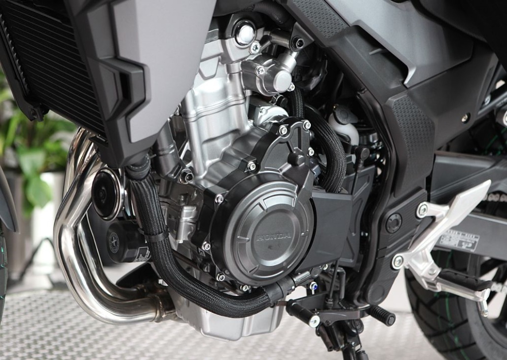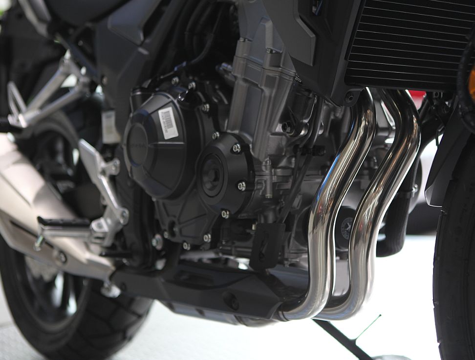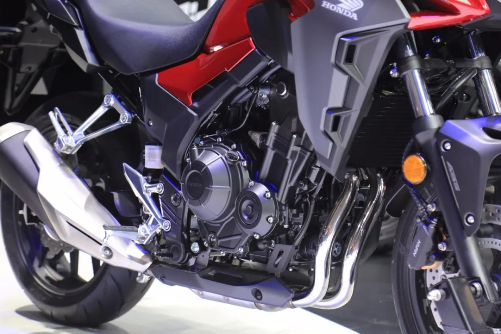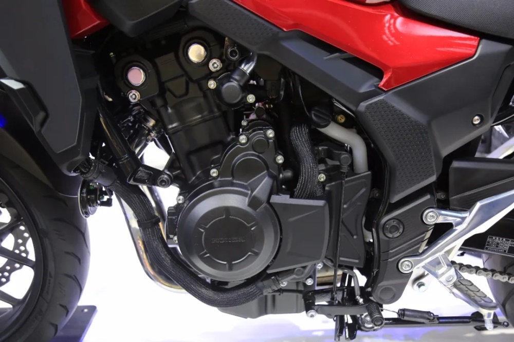 要說(shuō)區(qū)別,CB500X和CB400X還是有一些差異化的地方。動(dòng)力方面兩款車都搭載了雙缸水冷8氣門發(fā)動(dòng)機(jī),兩臺(tái)發(fā)動(dòng)機(jī)在外觀上沒(méi)有太大區(qū)別,缸徑都為67mm,行程方面CB500X為66.8mm,排量471mL;CB400X為56.6mm,排量399mL。CB500X最大功率37kW(8500r/min),最大扭矩45N·m(6500r/min);CB400X最大功率33kW(9000r/min),最大扭矩37N·m(7500r/min)??梢钥闯鯟B500X動(dòng)力水平相比CB400X有一定優(yōu)勢(shì),且最大出力轉(zhuǎn)速要更低一些。兩臺(tái)發(fā)動(dòng)機(jī)都配有滑動(dòng)離合器,整體動(dòng)力輸出風(fēng)格較為相似,都比較注重中低轉(zhuǎn)速區(qū)間的扭矩輸出,實(shí)現(xiàn)較出色的低速行駛和提速性能。