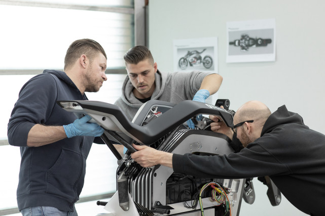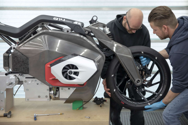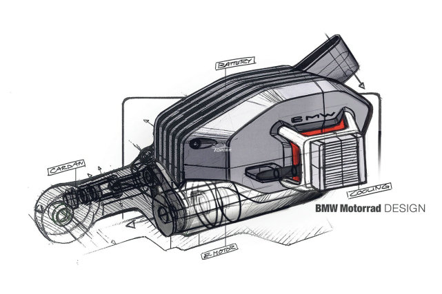 大多數(shù)電動摩托車在搖臂樞軸附近橫向安裝電機(jī),寶馬的電機(jī)旋轉(zhuǎn)90度設(shè)計(jì),可以在不增加摩托車寬度的情況下使用更長的電機(jī)。帶有等速萬向節(jié)的軸將電機(jī)連接到,集成在搖臂中的最終傳動軸的前部,使設(shè)計(jì)人員可以自由移動電機(jī),從而為改變電池和電池的重量分布,或提供額外的電子配置提供充足的位置。