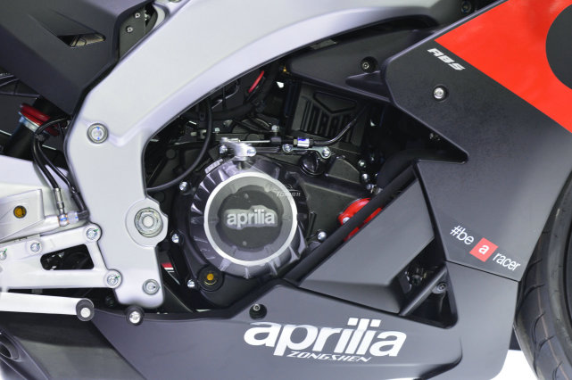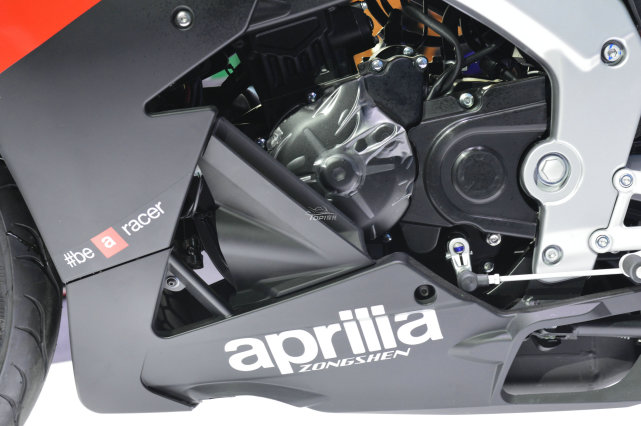 動(dòng)力方面源自 aprilia“ARC”動(dòng)力家族,249.2cc排量的單缸水冷發(fā)動(dòng)機(jī),最大功率20.5Kw/9000rpm,最大扭矩21.5N.m/7500rpm。這款發(fā)動(dòng)機(jī)內(nèi)置平衡軸技術(shù)、石墨抗磨涂層輕量化活塞,不僅適合賽道的高轉(zhuǎn)輸出,而且穩(wěn)定性非常不錯(cuò)。