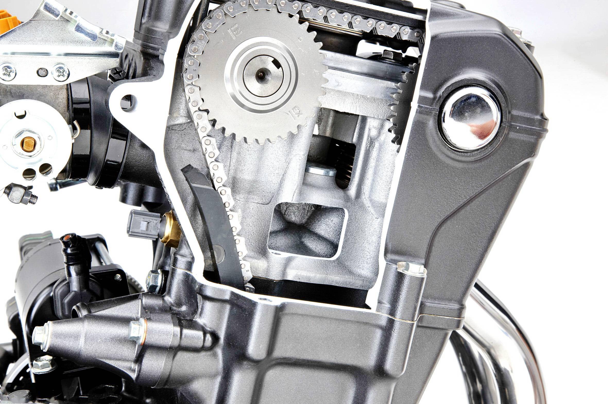 發(fā)動機(jī)設(shè)計上的一些特點,包括了位于氣缸組的后面、更靠近車輛重心的平衡軸;可降低急轉(zhuǎn)彎和重剎車時潤滑油流動性的、較深油底殼的設(shè)計;無聲式設(shè)計的時規(guī)鏈(凸輪軸傳動鏈),每條銷經(jīng)過了表面的釩處理以降低摩擦;CFD(計算流體動力學(xué))被用于最大限度地提高氣流效率,從空氣箱(空氣濾清器)到排氣管,氣流的路線都處于一個盡可能筆直的狀態(tài);由于采用了與 CBR600RR 相同的缸徑和氣缸間隔,該設(shè)計使得發(fā)動機(jī)實現(xiàn)了盡可能的緊湊和輕量化。