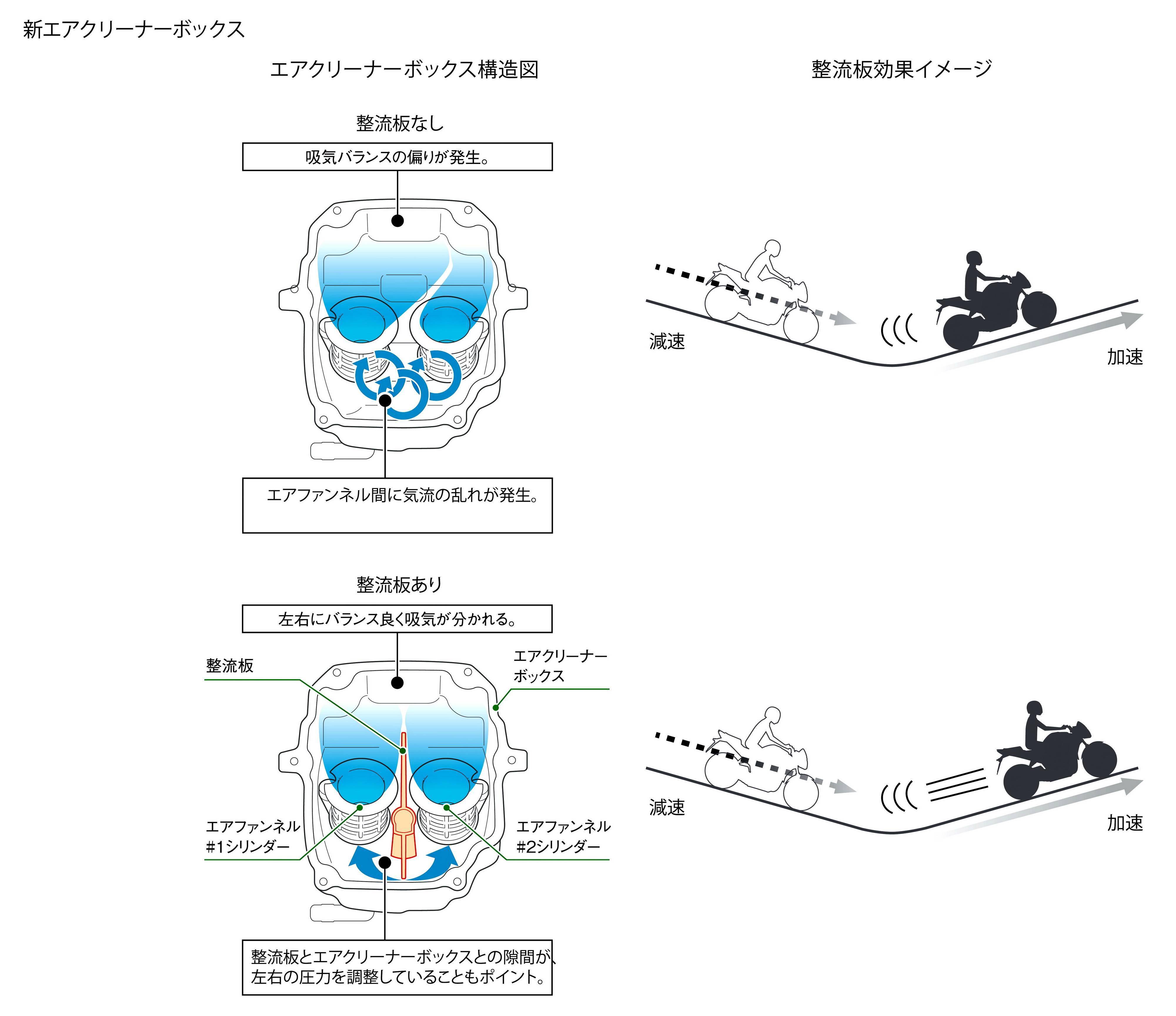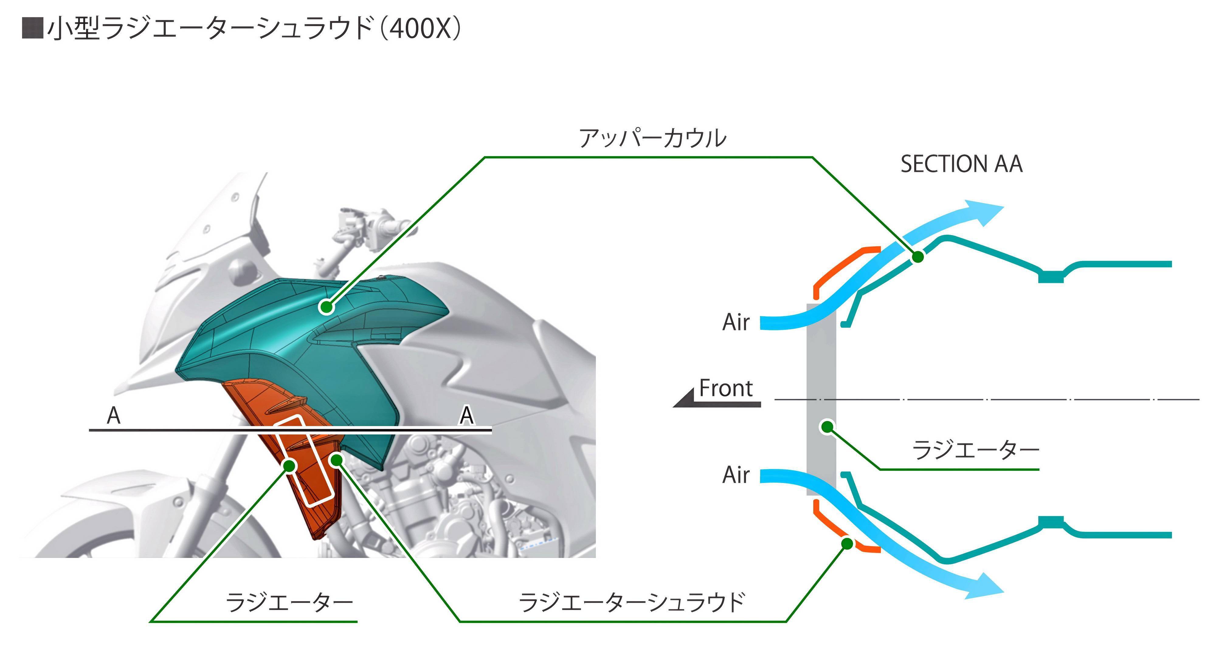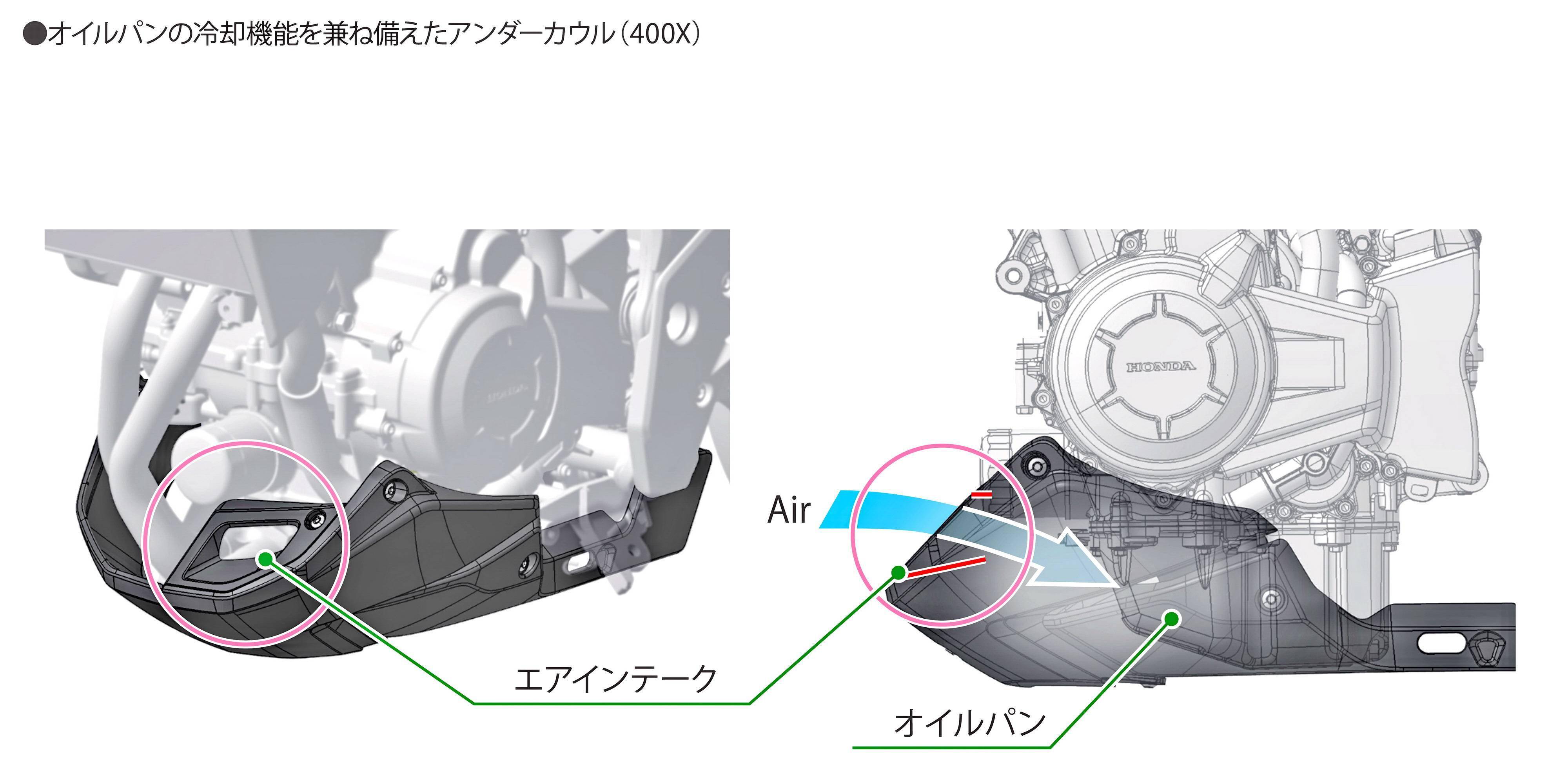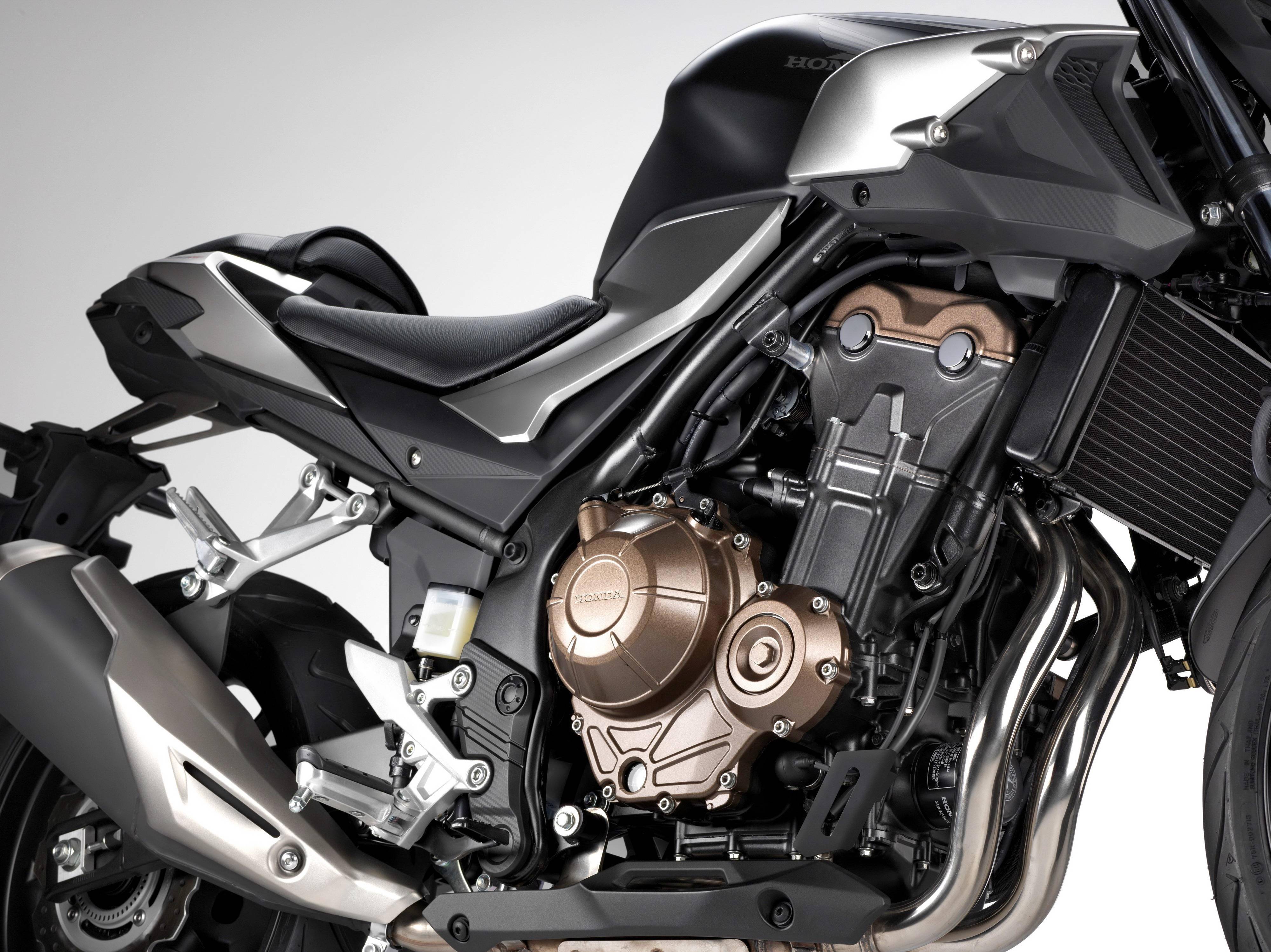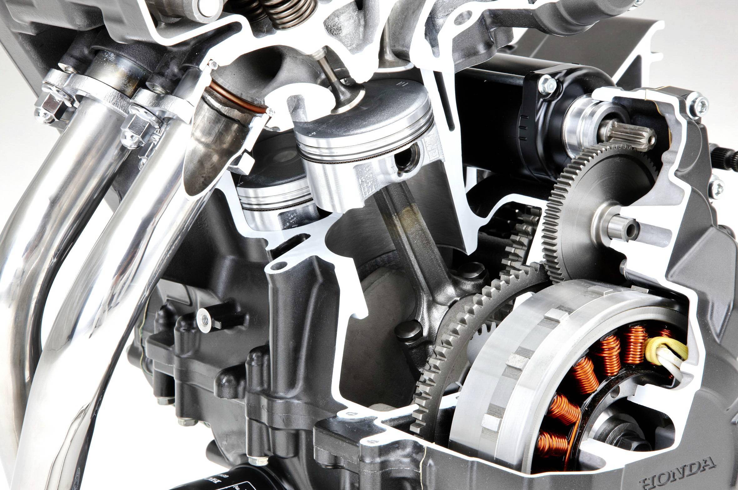 該 400/500 動力平臺,在當(dāng)時被 Honda 稱之為 “ 下一代的動力單元 ”,“ 從性能和環(huán)境兩方面去展望未來 ”。發(fā)動機(jī)型式為水冷四沖程直列兩氣缸、DOHC 每氣缸四氣閥,不論是 400 cc 版還是 500 cc 版本,其發(fā)動機(jī)都有一個重要的特點:采用了與中型跑車 CBR600RR 發(fā)動機(jī)相同的缸徑 67 mm,而且活塞的輪廓,是基于當(dāng)時的超級跑車 CBR1000RR 所使用中的活塞。