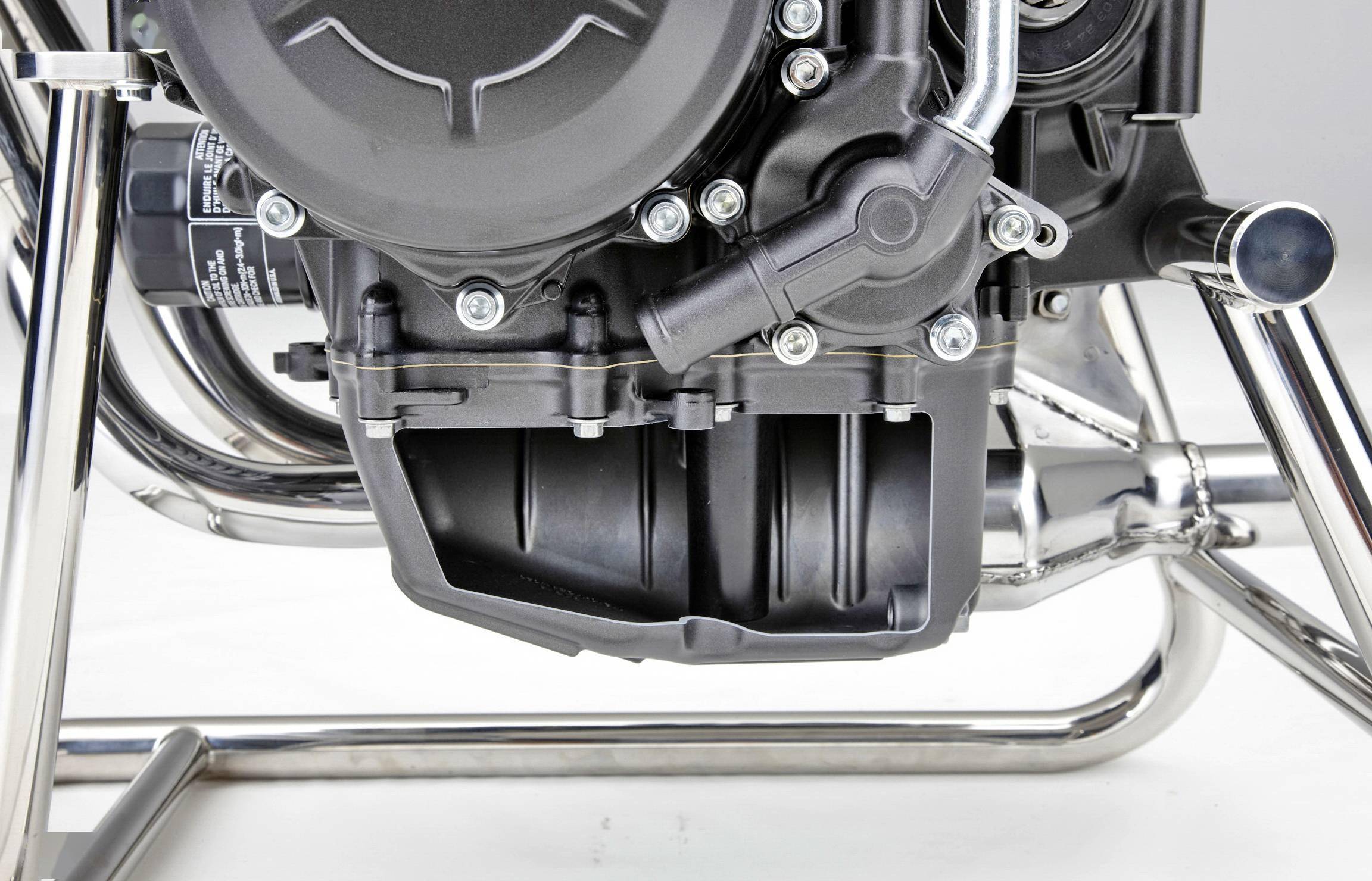 400 cc 版本動力單元的缸徑、行程為 67 mm x 56.6 mm,排氣量 399 cc,最大動力輸出 34 kw(約 46 匹)/9,500 rpm;500 cc 版本動力單元的缸徑、行程為 67 mm x 66.8 mm,排氣量 471 cc,最大動力輸出 35 kw/8,500 rpm。而上一代的 CBF500 發(fā)動機(jī),缸徑、行程為 73 mm x 59.6 mm,最大動力輸出 41.2 kw(約 56 匹)。從基礎(chǔ)數(shù)據(jù)上可以看到,新的消費(fèi)環(huán)境之下,Honda 對新一代動力單元采用了一個 “ 去運(yùn)動化 ” 的選擇,用一個相對易懂的方式去理解就是:新平臺比上一代的 CBF500 更接近于一個大排量的 CG,降低運(yùn)動性自有其不利的一面,但帶來的是更容易被任何年齡階層的騎士所掌握、易于控制,也相對的省油。
