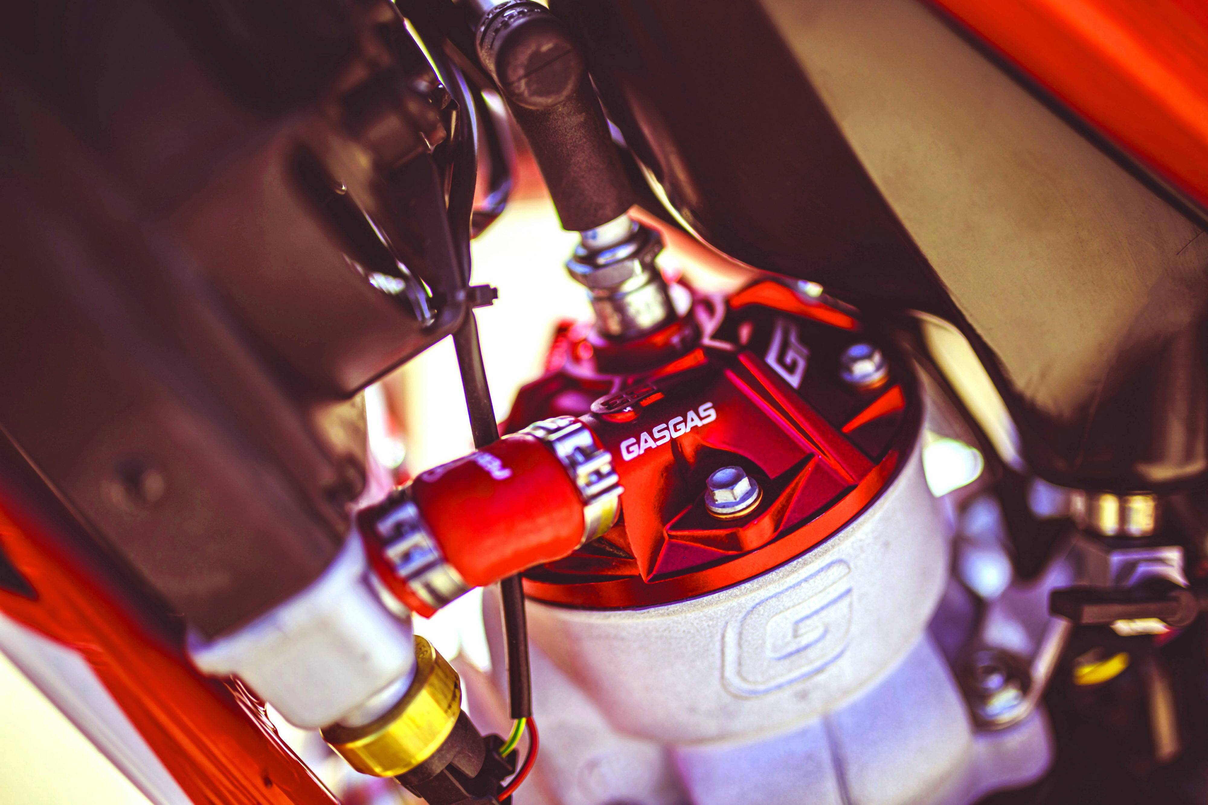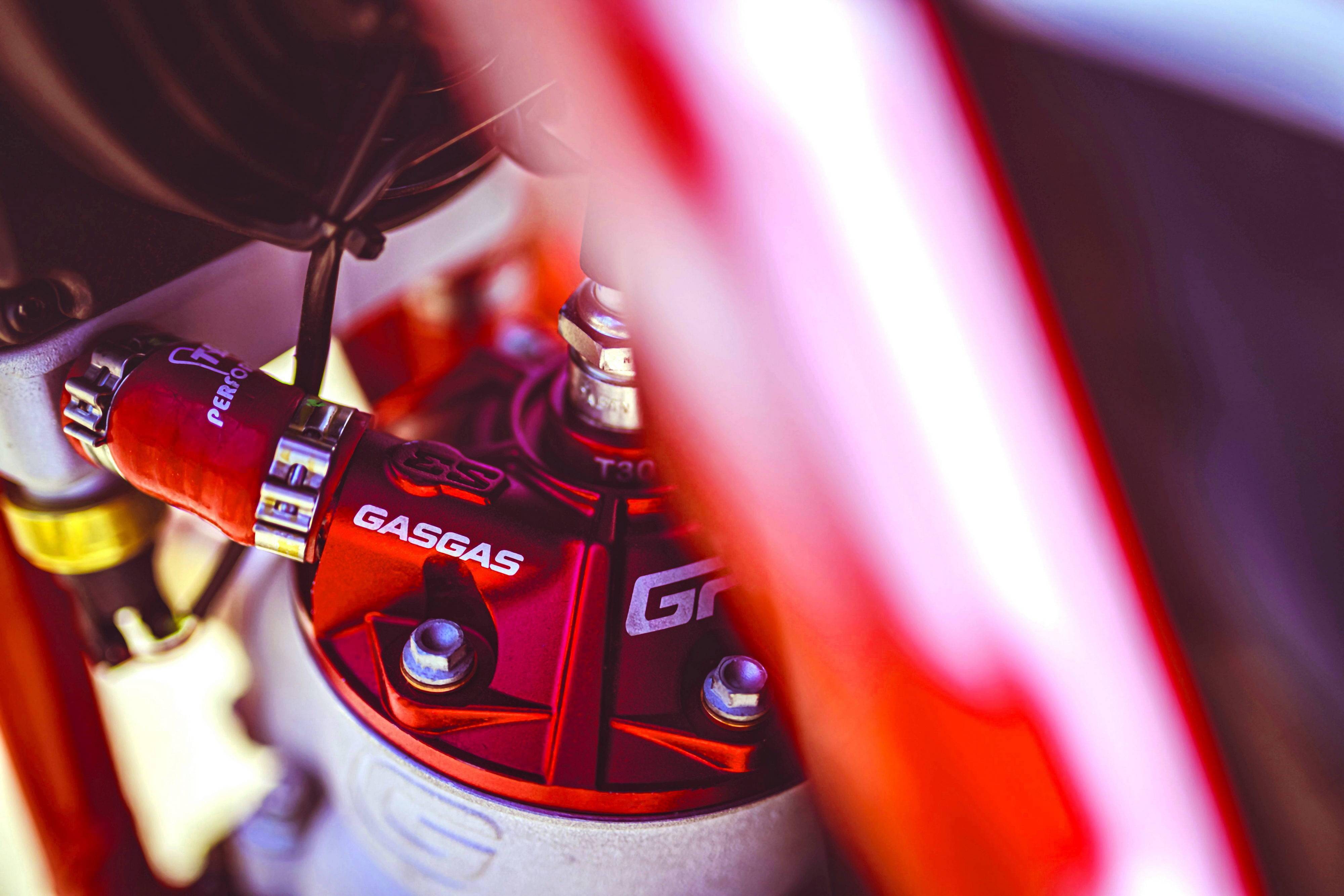 GasGas 的工廠賽車 TXT GP 300,搭載一副水冷兩沖程單氣缸的發(fā)動機,缸徑、行程為 79 mm x 60 mm,排氣量 294.1 cc(FIM 對技術(shù)障礙世界錦標賽的最大賽車排氣量限制為 300 cc 以下),液壓式的離合器、六檔的變速齒輪箱。
