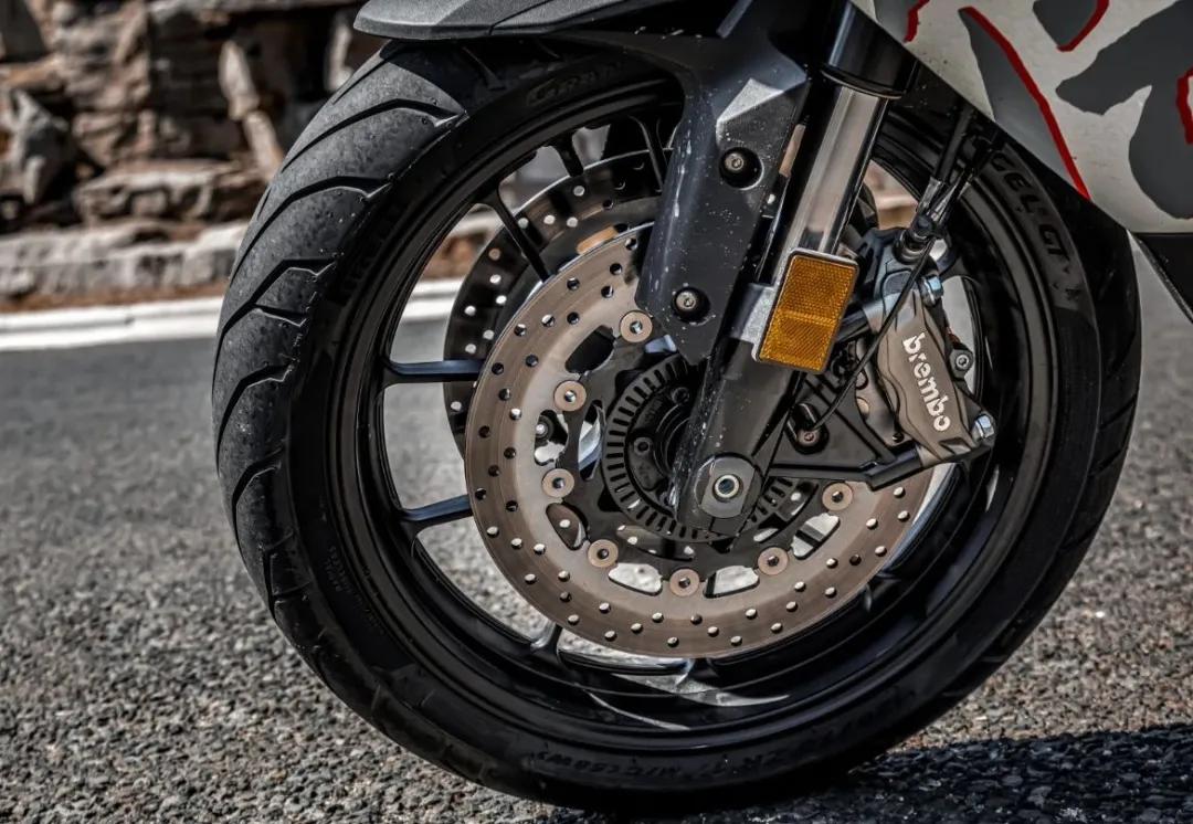 倍耐力天使胎,TFT全彩液晶儀表,Brembo前雙浮動碟,每碟對向四活塞卡鉗,標配直推上泵,剎車如撞墻,后輪雙活塞卡鉗,標配前后9.1雙通道博士ABS。一身頂級配置的加持,給這款車的騎行體驗帶來進一步提升,尤其是前后KYB可調減震為整車操控加分不少。
