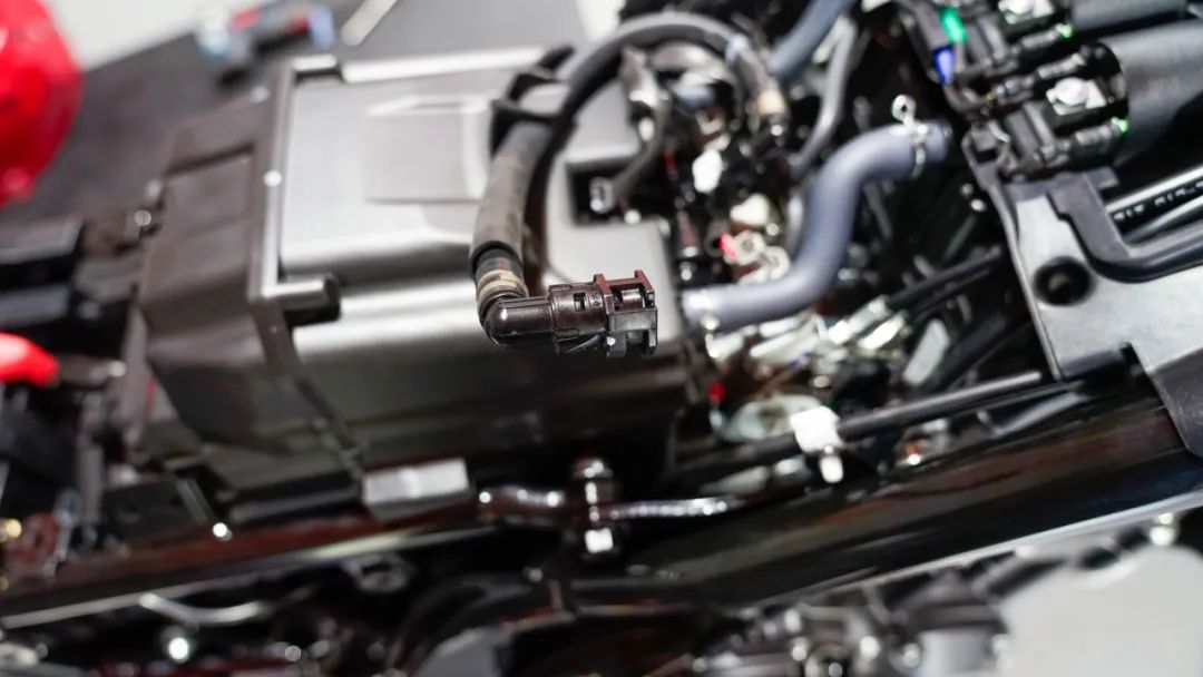 繼續(xù)拆解,端下油箱,整體做工沒(méi)有讓我失望,依舊非常規(guī)整,這里有一個(gè)小細(xì)節(jié),這輛車(chē)的高壓油管接口采用兩層鎖死結(jié)構(gòu),避免油管安裝不到位而導(dǎo)致釀成大禍。