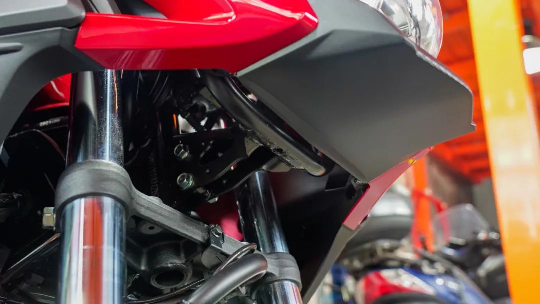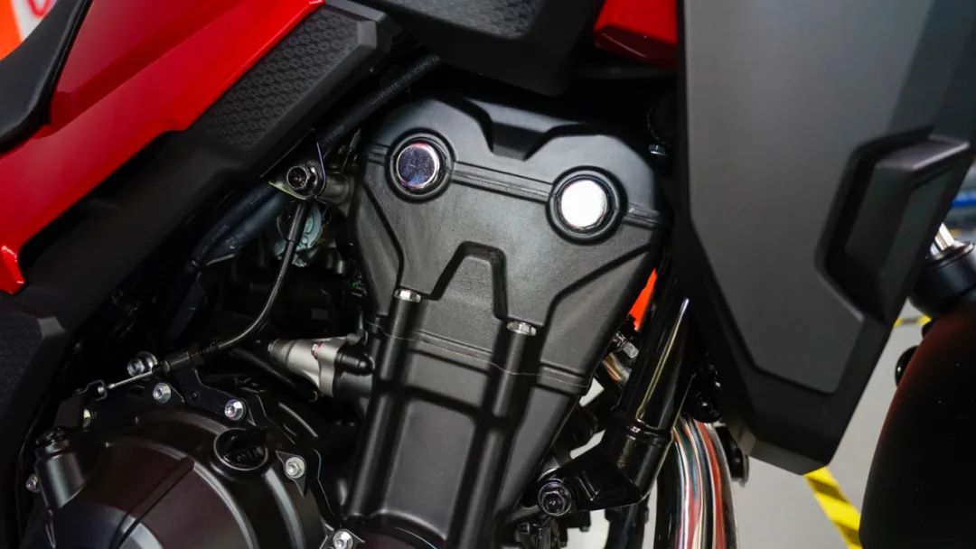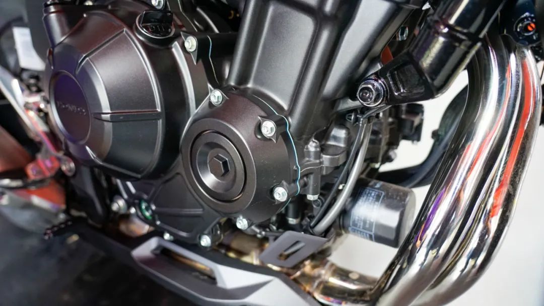 說(shuō)完車(chē)架,我們?cè)賮?lái)看看發(fā)動(dòng)機(jī)部分,缸頭部分外觀稍顯粗糙,反觀中缸部分漆水就明顯精致很多,感覺(jué)像是兩家供應(yīng)商做的,不太符合本田一慣的風(fēng)范啊,而且邊蓋與發(fā)動(dòng)機(jī)中間的藍(lán)色紙墊子也明目張膽的露出一部分,雖然說(shuō)不影響使用吧,但是觀感就不太好。