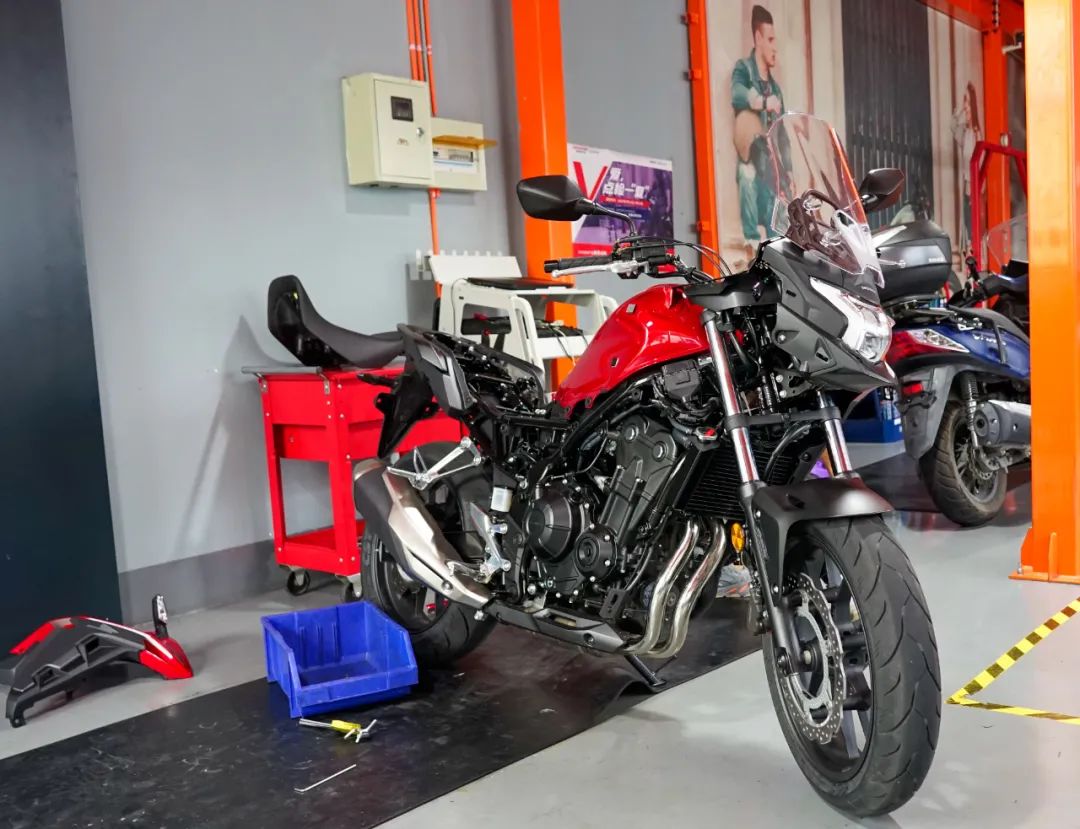 非常榮幸啊,這個(gè)欄目開(kāi)啟的第一期便迎來(lái)了一位重磅選手,時(shí)下大熱門(mén)的車(chē)款—本田CB400X! 對(duì)的,沒(méi)錯(cuò),我們拿到這臺(tái)車(chē)的第一件事不是出去溜一圈好好感受一下這輛車(chē)的表現(xiàn),反而是推入維修車(chē)間,拆解!首先我們簡(jiǎn)述一下我們拆解的這輛車(chē)的車(chē)況,這輛車(chē)是我們從車(chē)友借過(guò)來(lái)的,我們拿到手時(shí)車(chē)輛里程數(shù)為40km,整車(chē)生產(chǎn)于2021年6月,非常新鮮的啊,而且我們拿到的是量產(chǎn)版本的車(chē)型,也就是說(shuō),我們拆解的這臺(tái)車(chē)和你買(mǎi)到的車(chē)是一樣的!