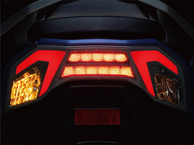 全LED大燈的質(zhì)感很不錯,這個大燈設計的比較大氣、耐看,放在125陣營當中也屬于比較漂亮的那幾個。