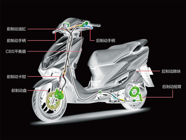 UCR125的剎車配備的是前碟后鼓+CBS,這個價格很顯然不會給配備ABS防抱死系統(tǒng),一般情況下CBS也足以應付日常使用了。