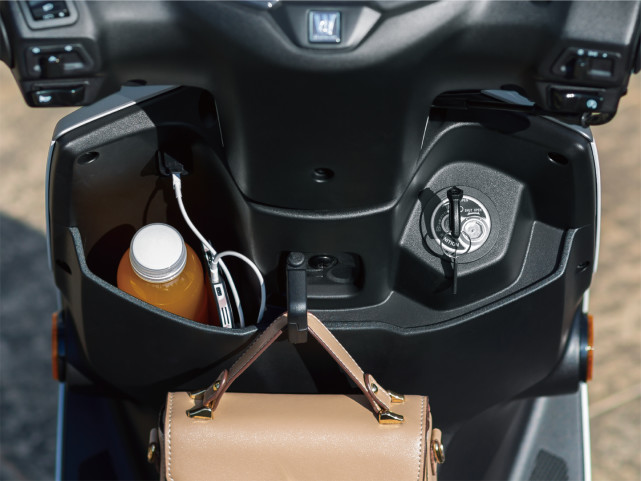 作為一個日常通勤的買菜車,前排儲物格和掛鉤都有配備,儲物格的開口比較大使用方便,還配備了USB充電接口,掛鉤是可折疊的防脫設計。