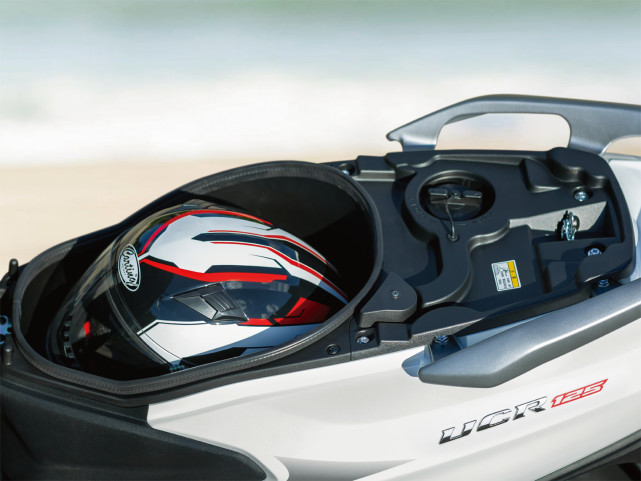 座桶的容量有16.5L根據(jù)官圖所示應該可以放進去一頂全盔的樣子,如果需要更大的儲物空間可以選配30.4L的尾箱。