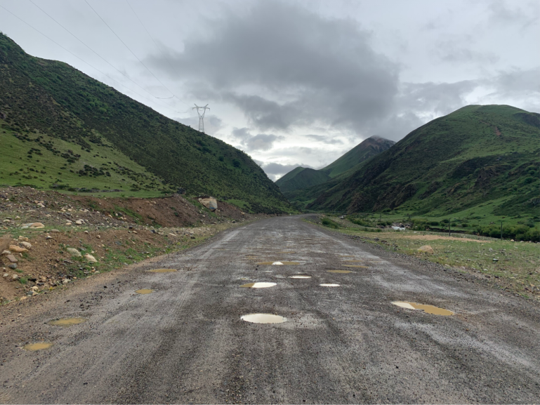 219國(guó)道進(jìn)入西藏境內(nèi)就變成非鋪裝路面,面對(duì)炮彈坑群,有人第一次沒有避開直接撞入,減震壓縮到極限之后,回彈阻尼感受較好,能夠輕松穩(wěn)住車身。熟悉路況之后,時(shí)不時(shí)站立騎行,腿部能夠很好的夾住油箱,車身得到較好控制。另外,RX6靈活的轉(zhuǎn)向也在這時(shí)體現(xiàn),躲避炮彈坑非常的輕松。